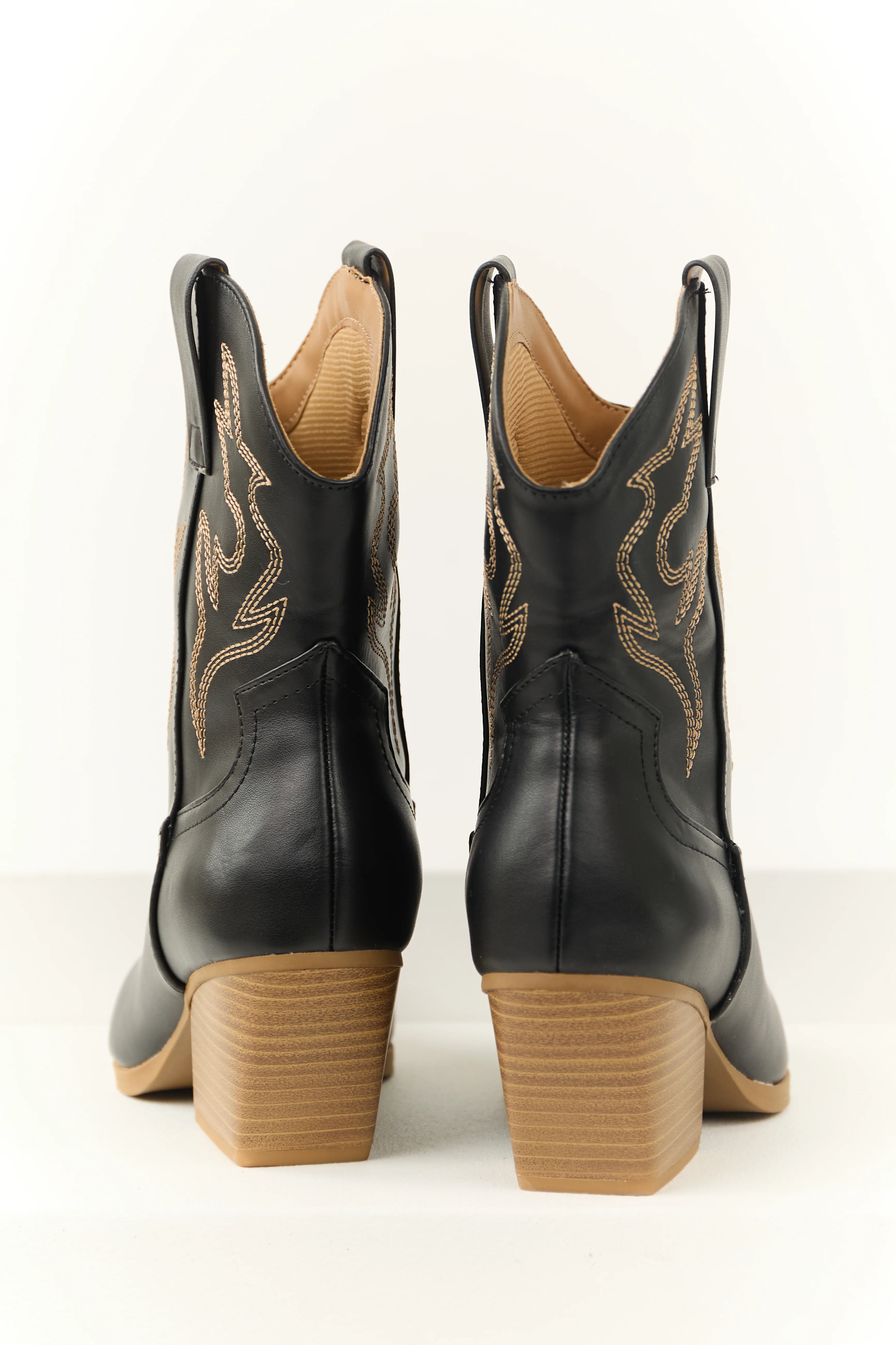 Black Western Stitching Detail Ankle Booties