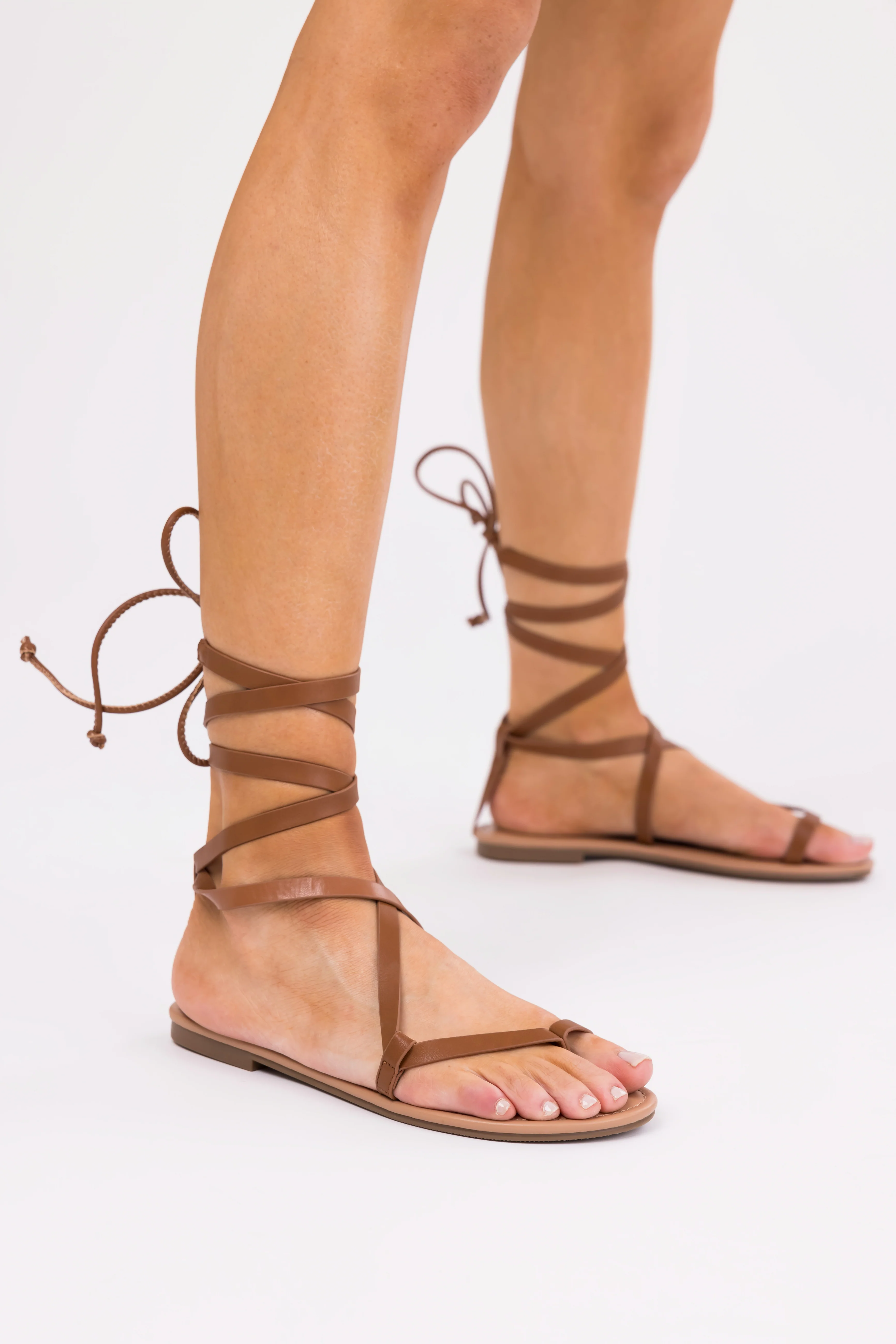 Sepia Strappy Open Toe Flat Sandal