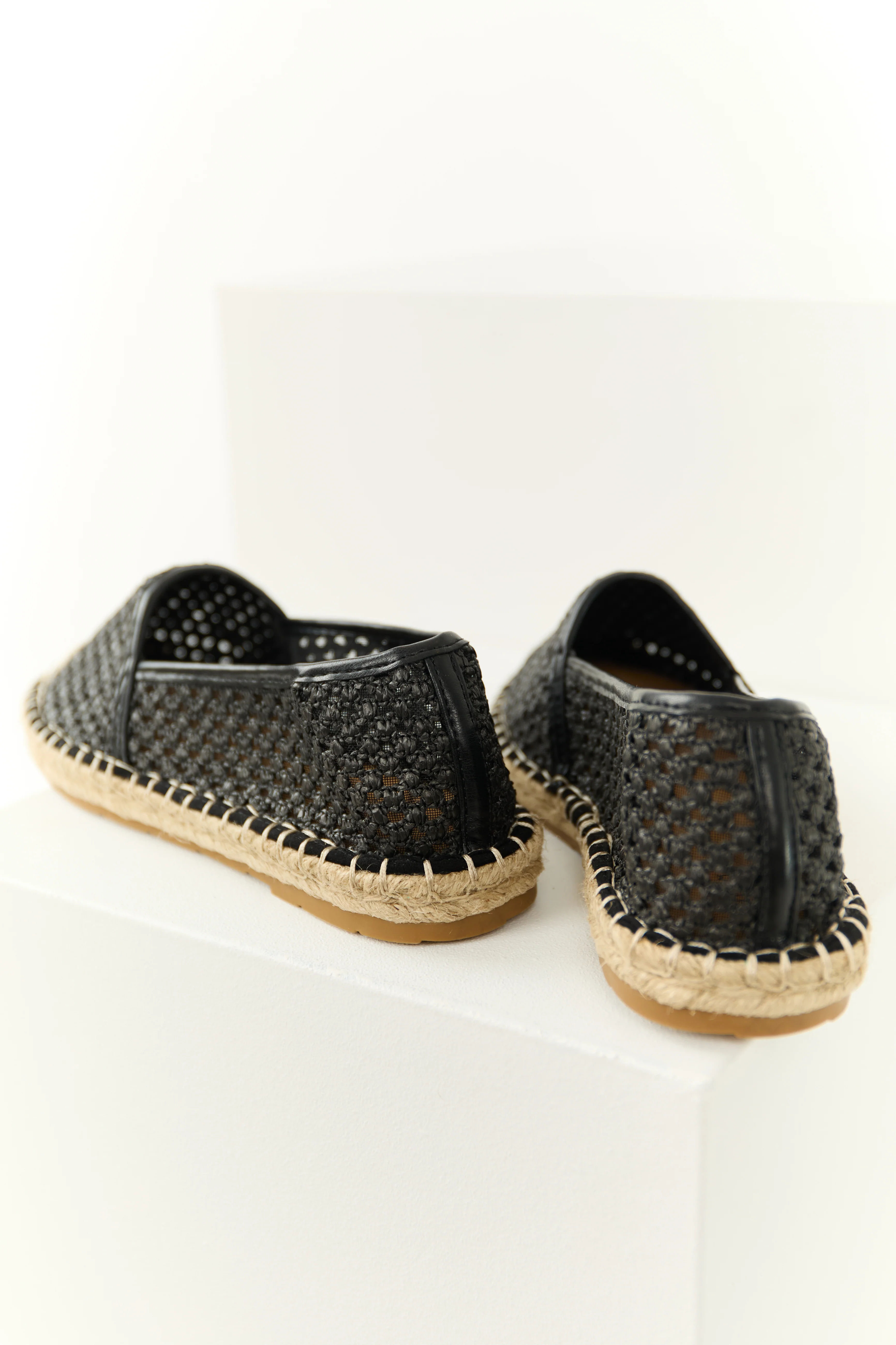 Black Woven Rounded Toe Slip On Espadrilles
