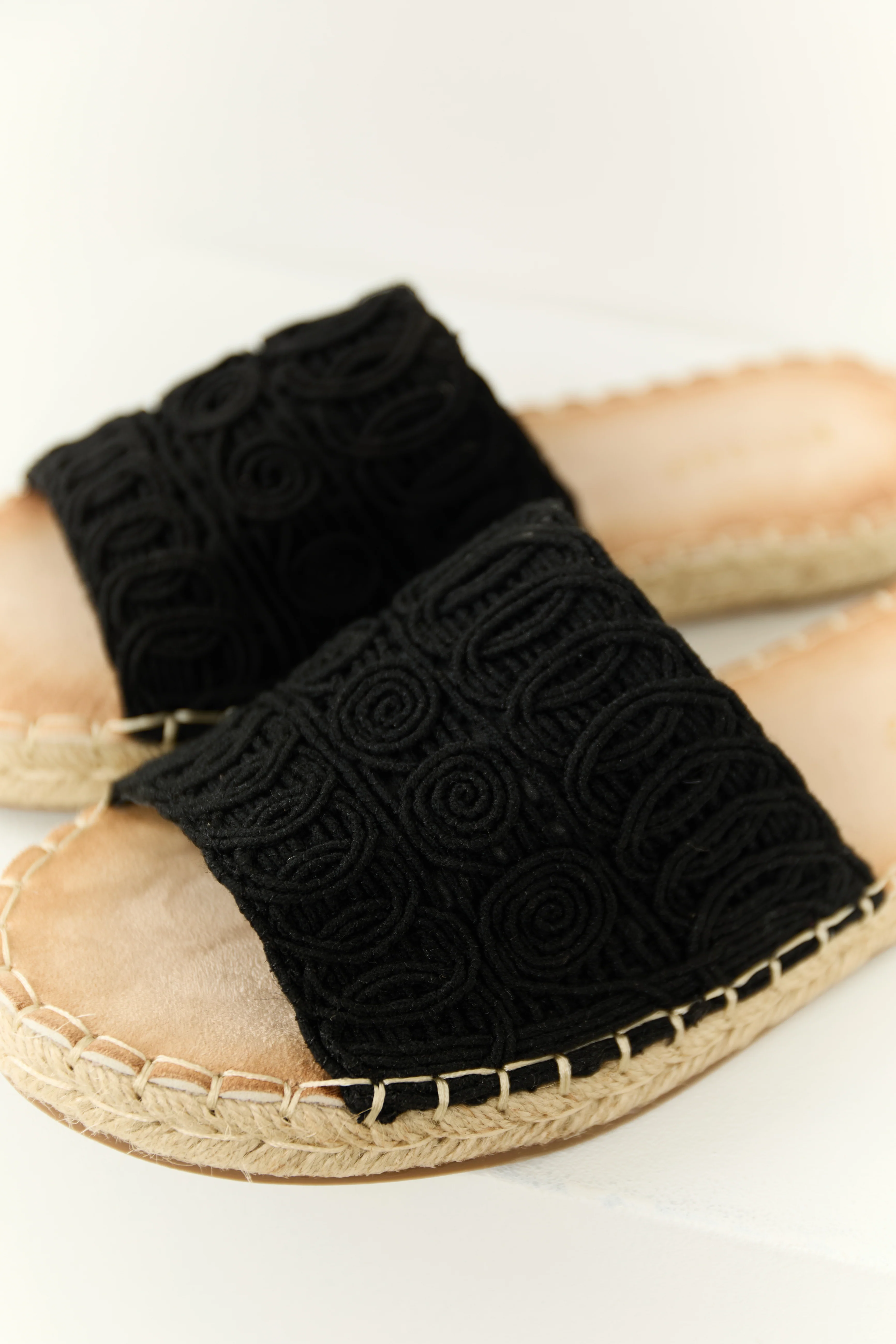 Black Woven Lace Espadrille Slide On Sandals
