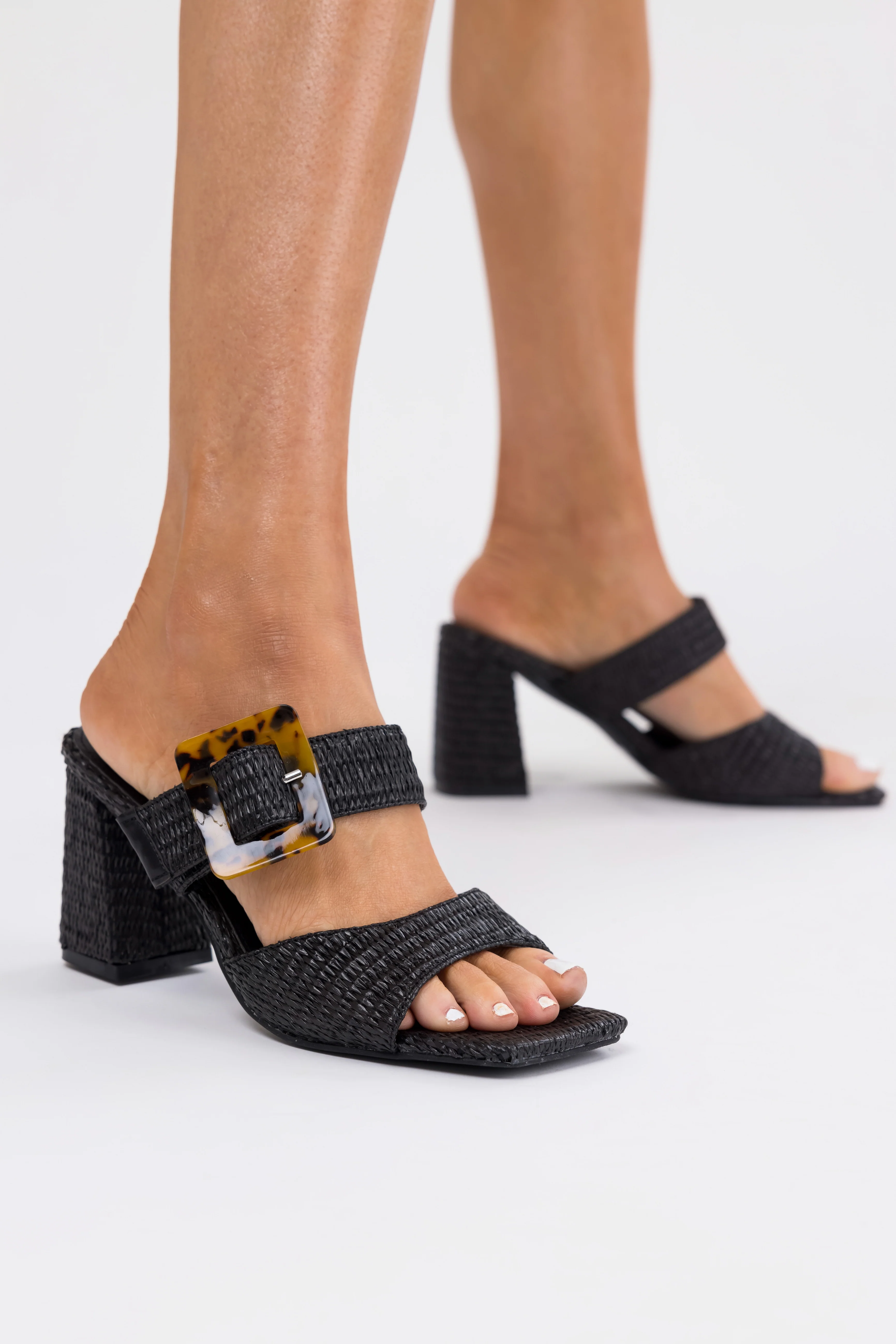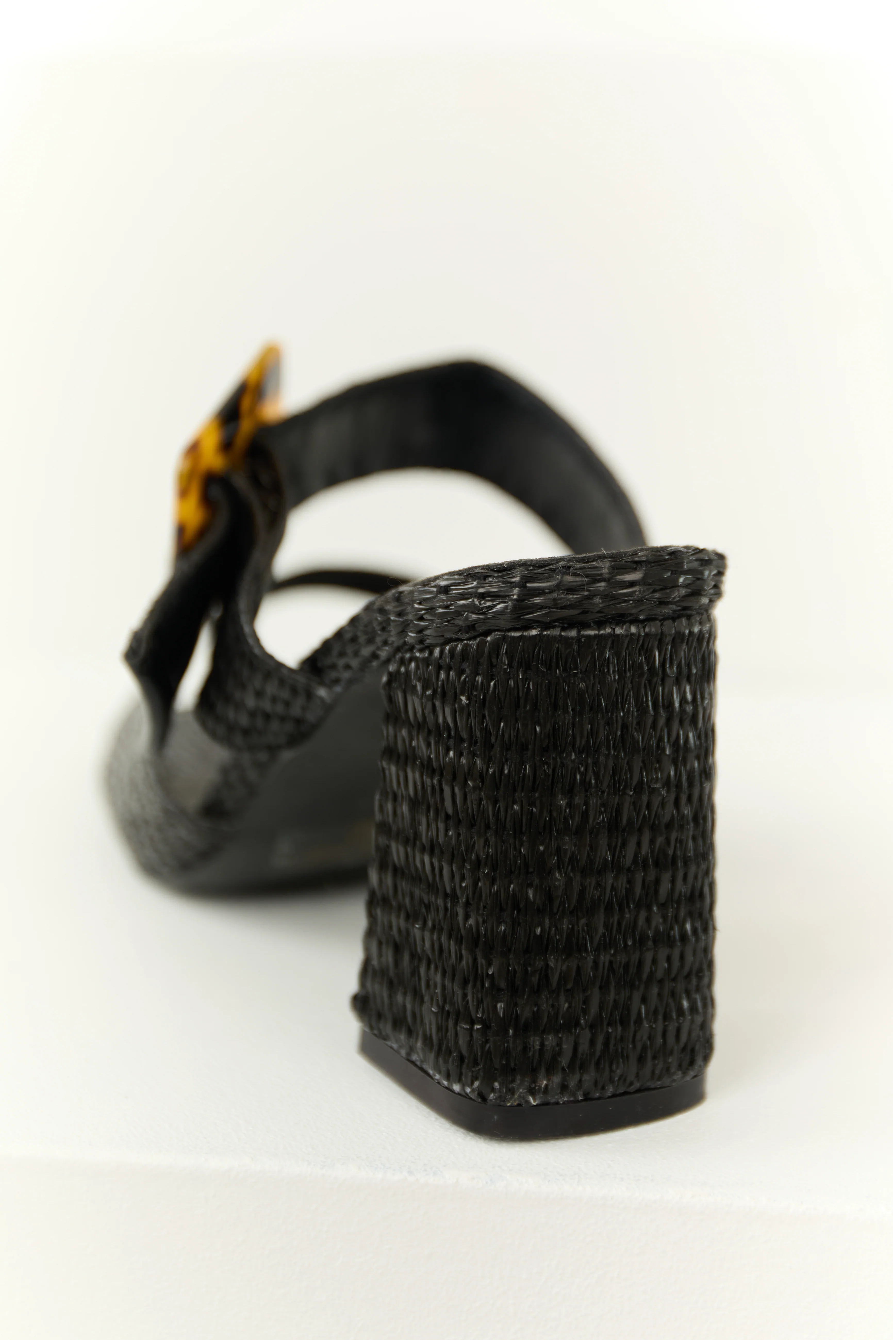 Black Woven Accent Buckle Strap Heels