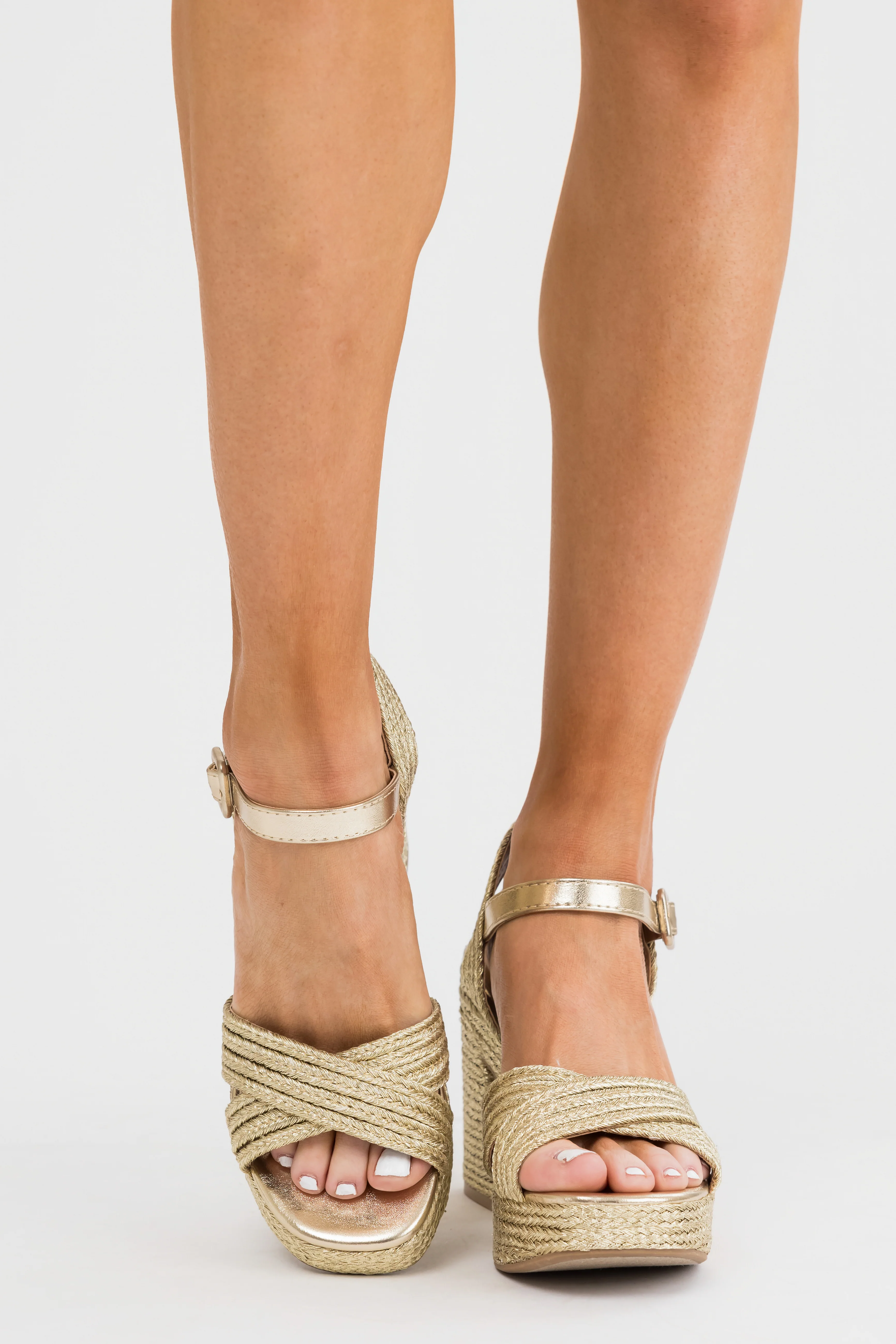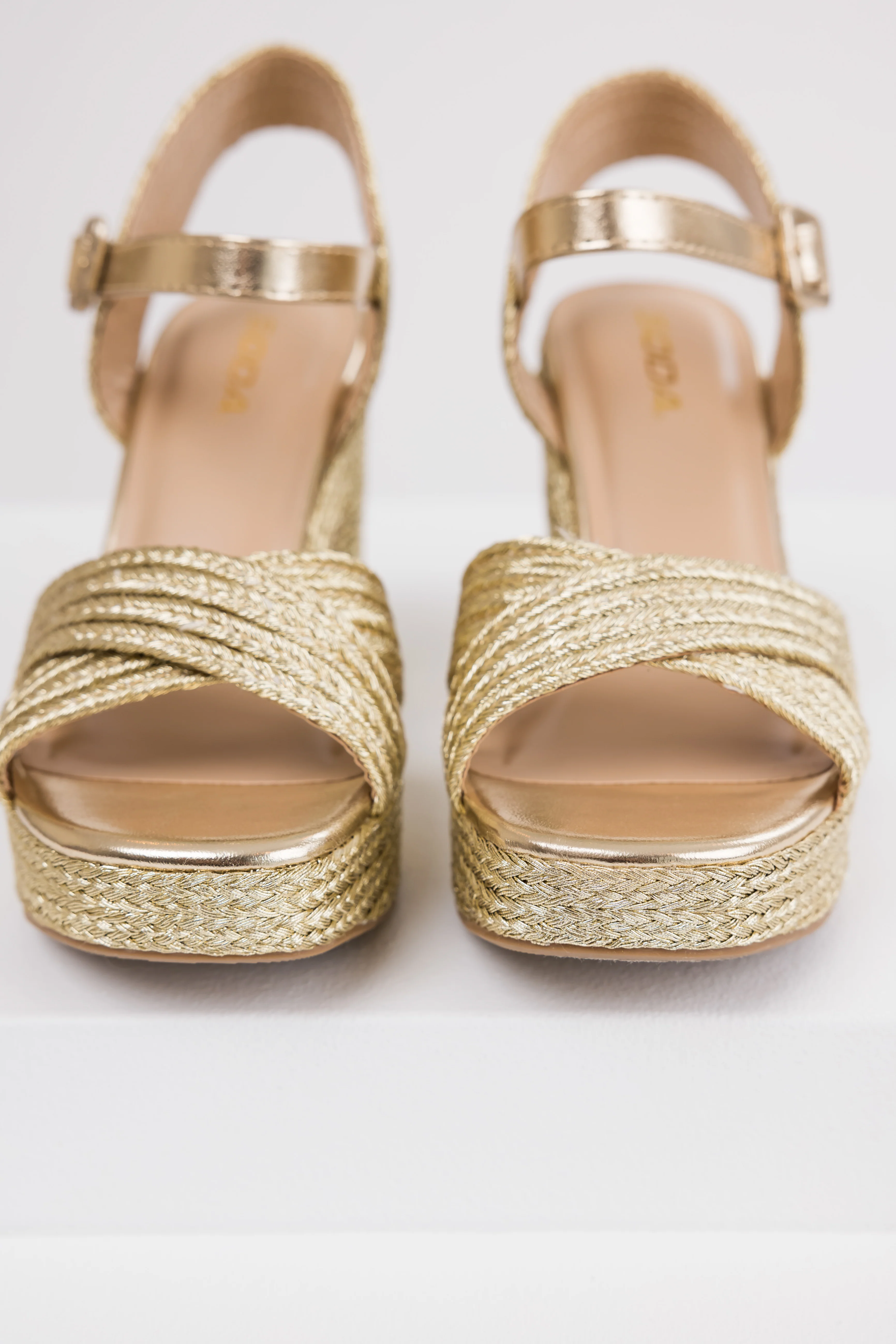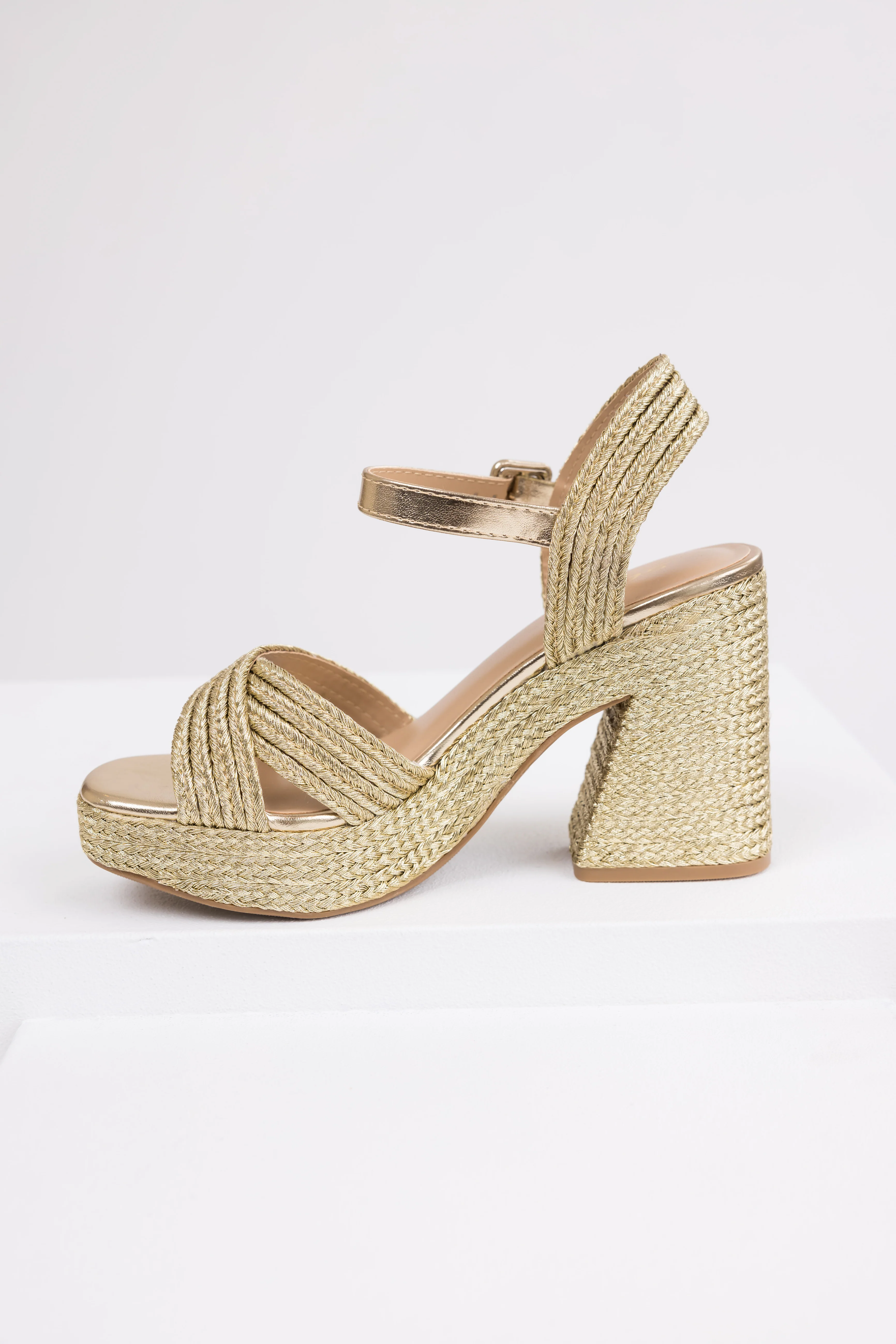 Gold Raffia Woven Open Toed Platform Heels