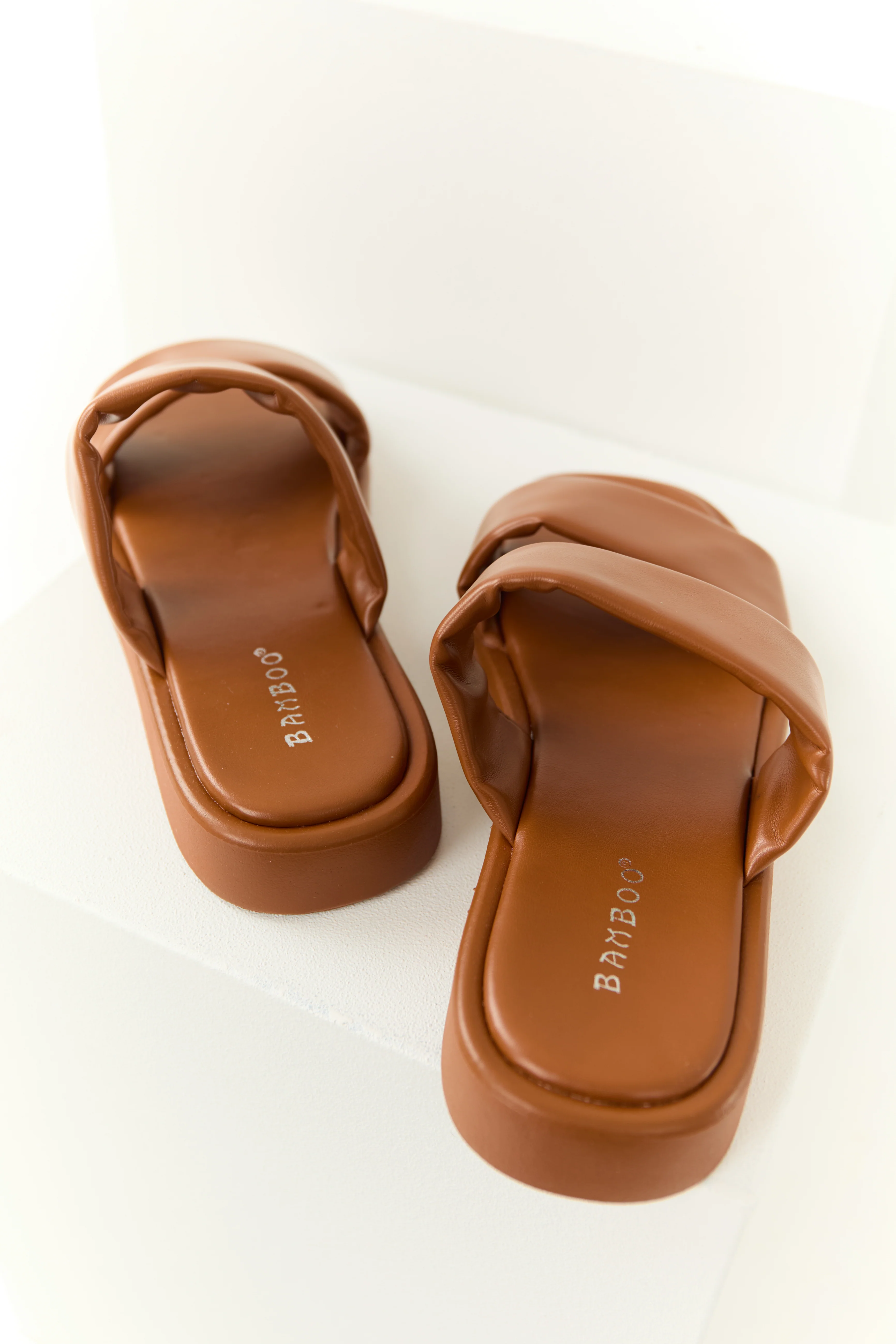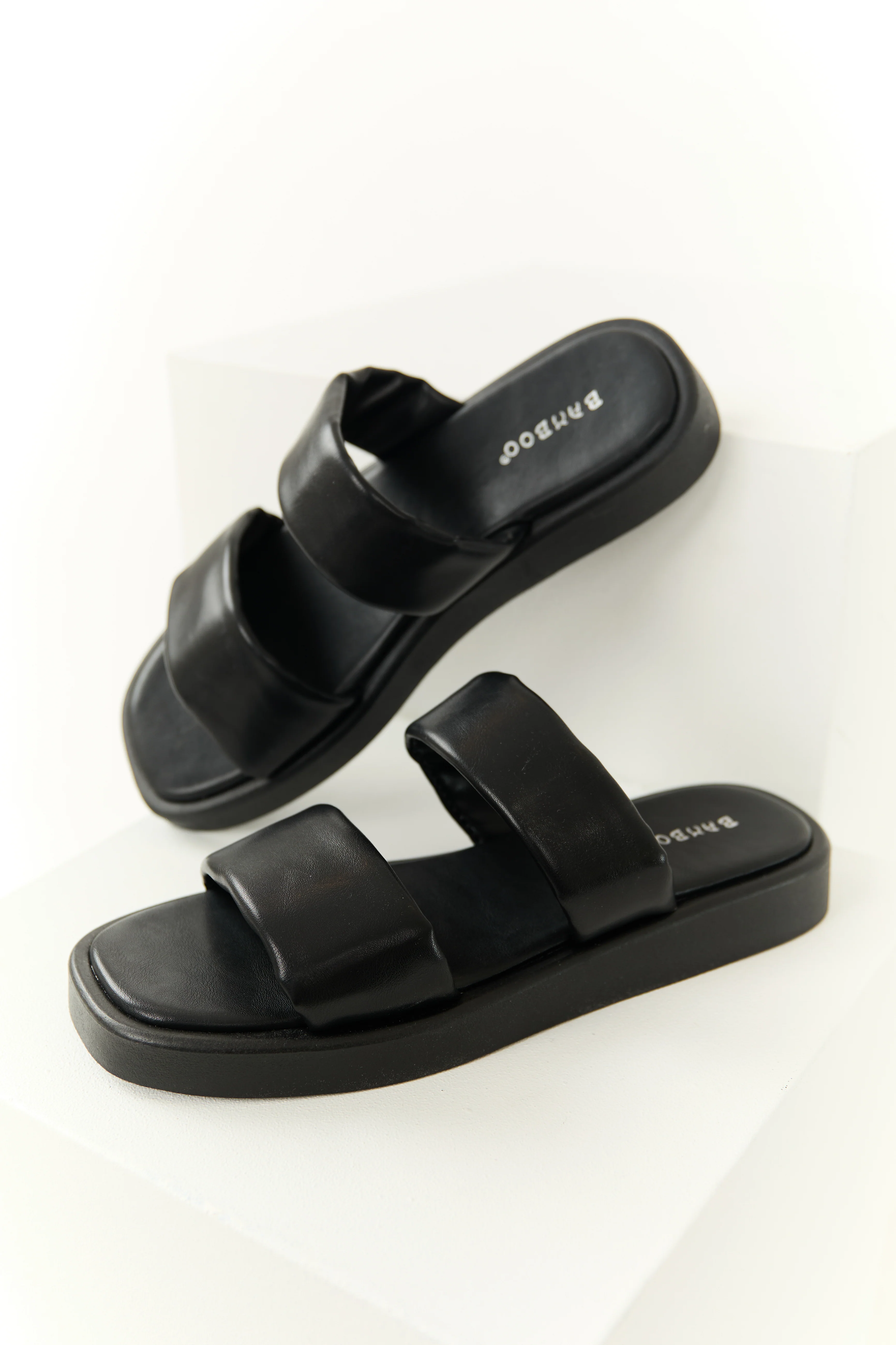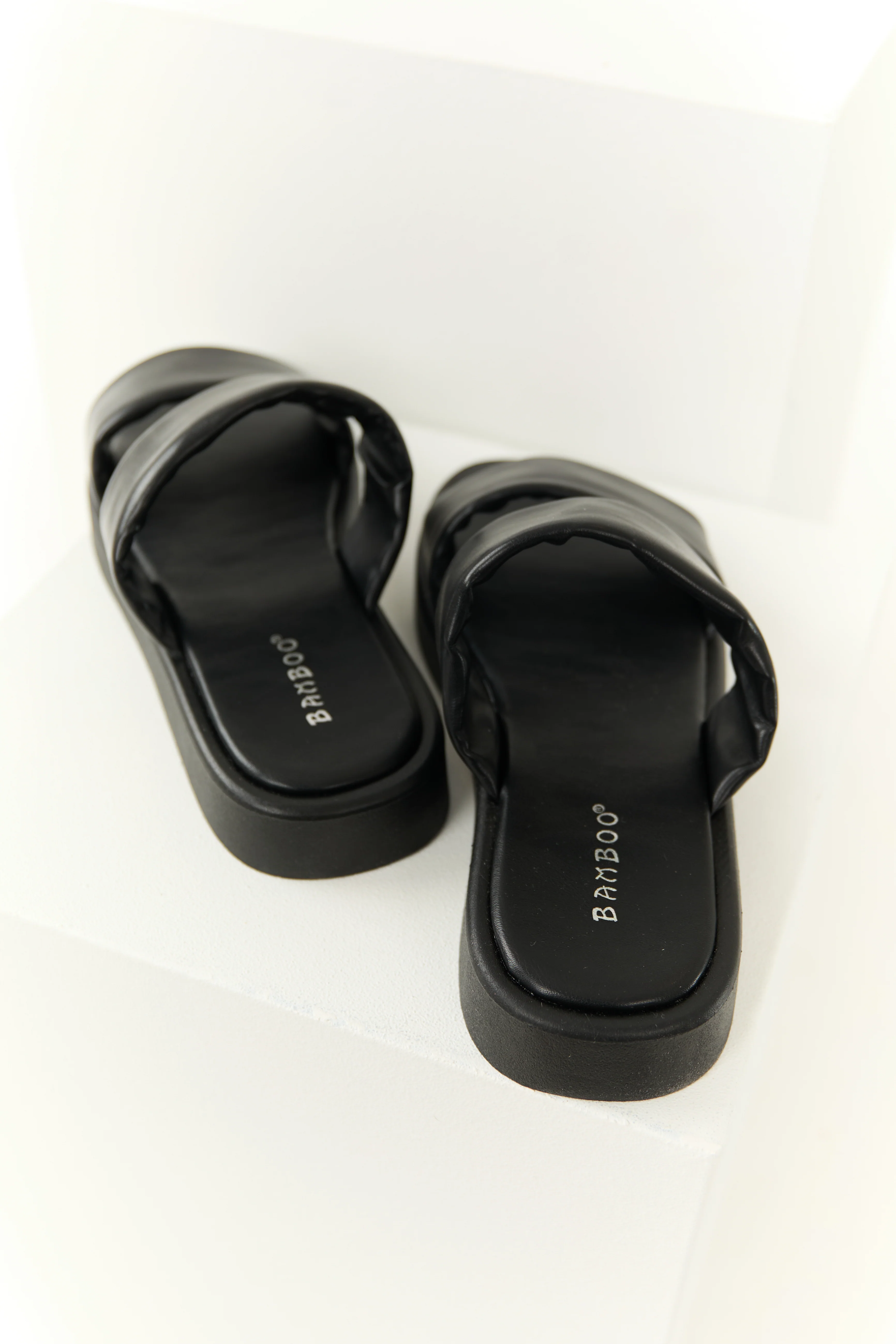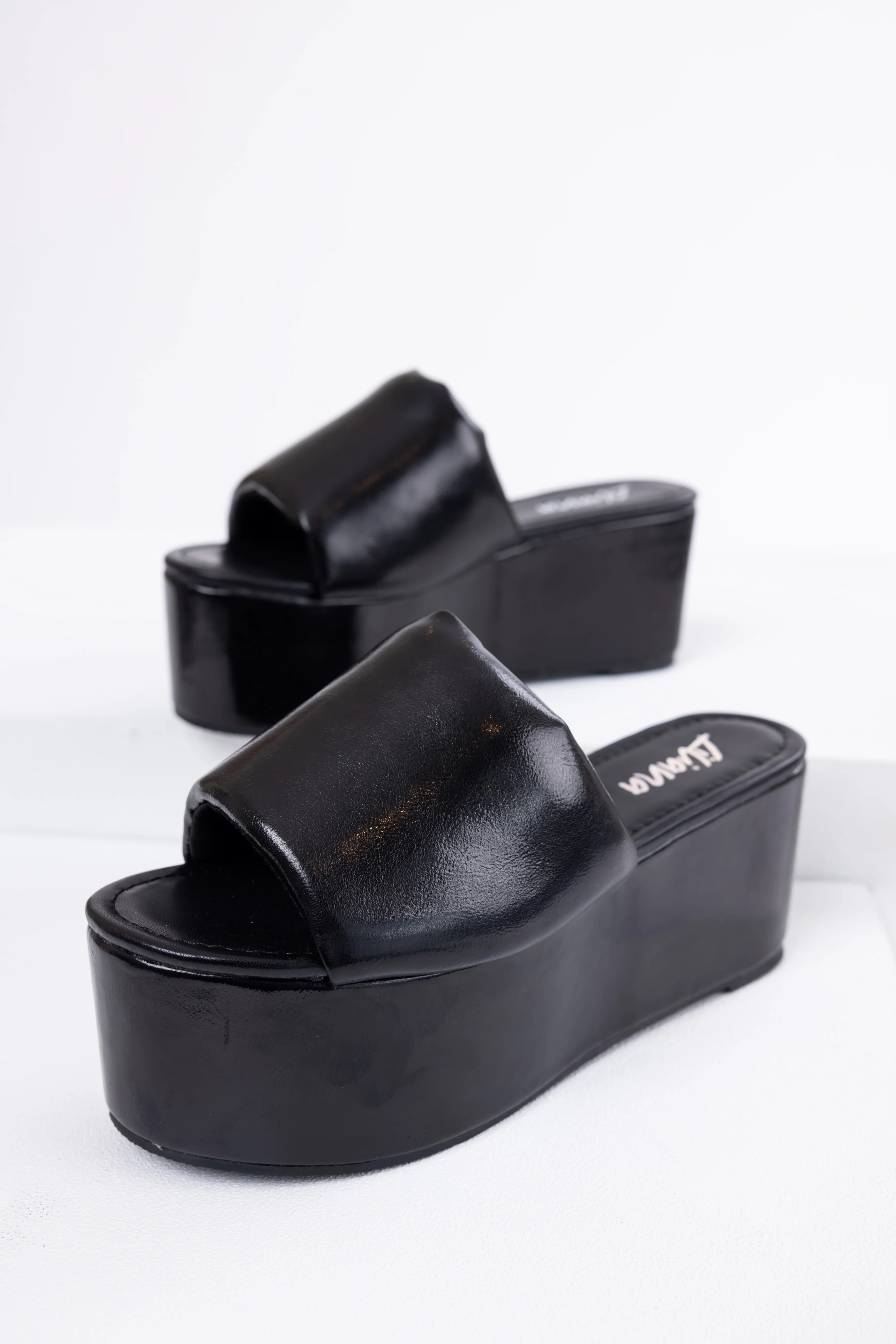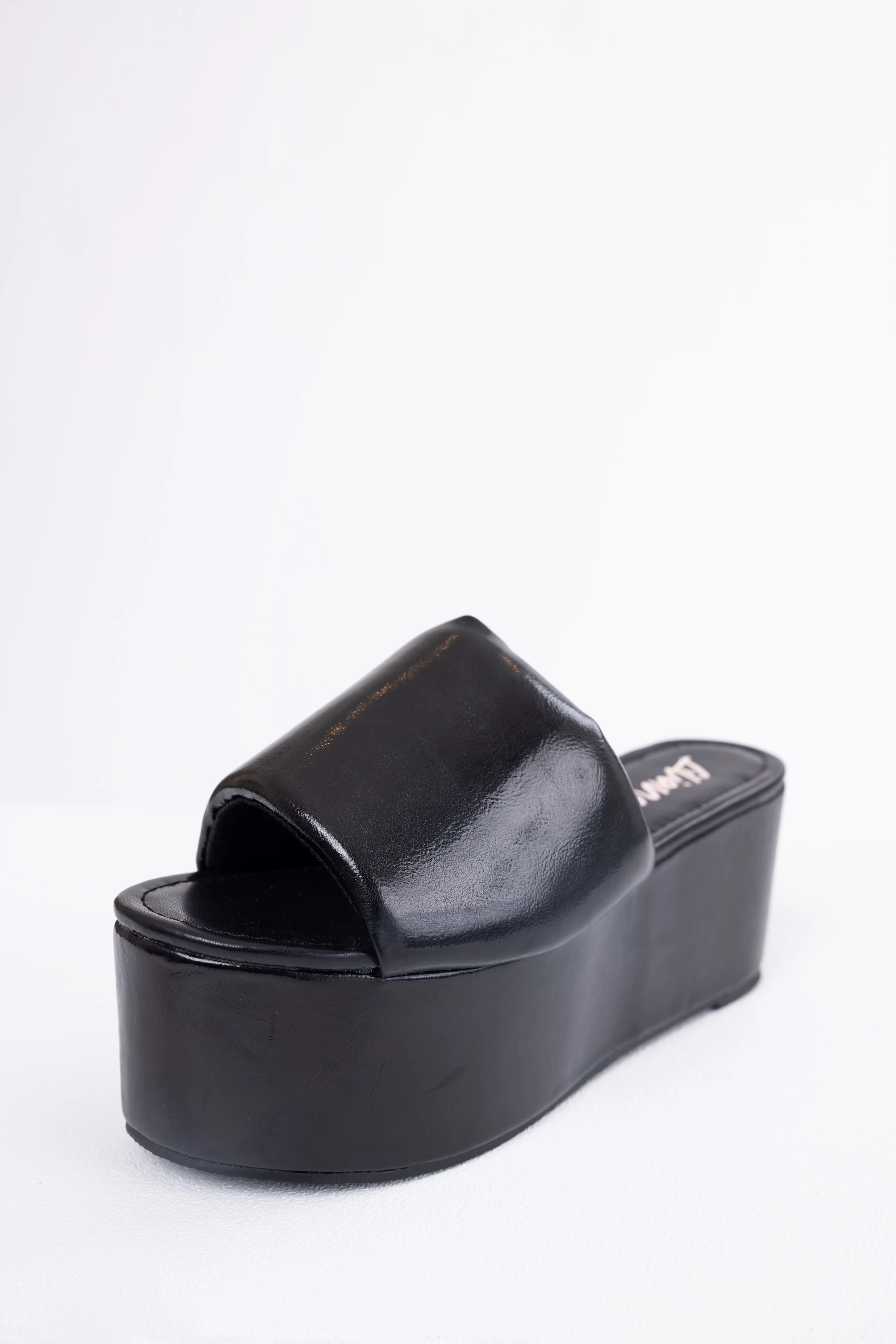 Black Faux Leather Puffy Band Platform Sandal