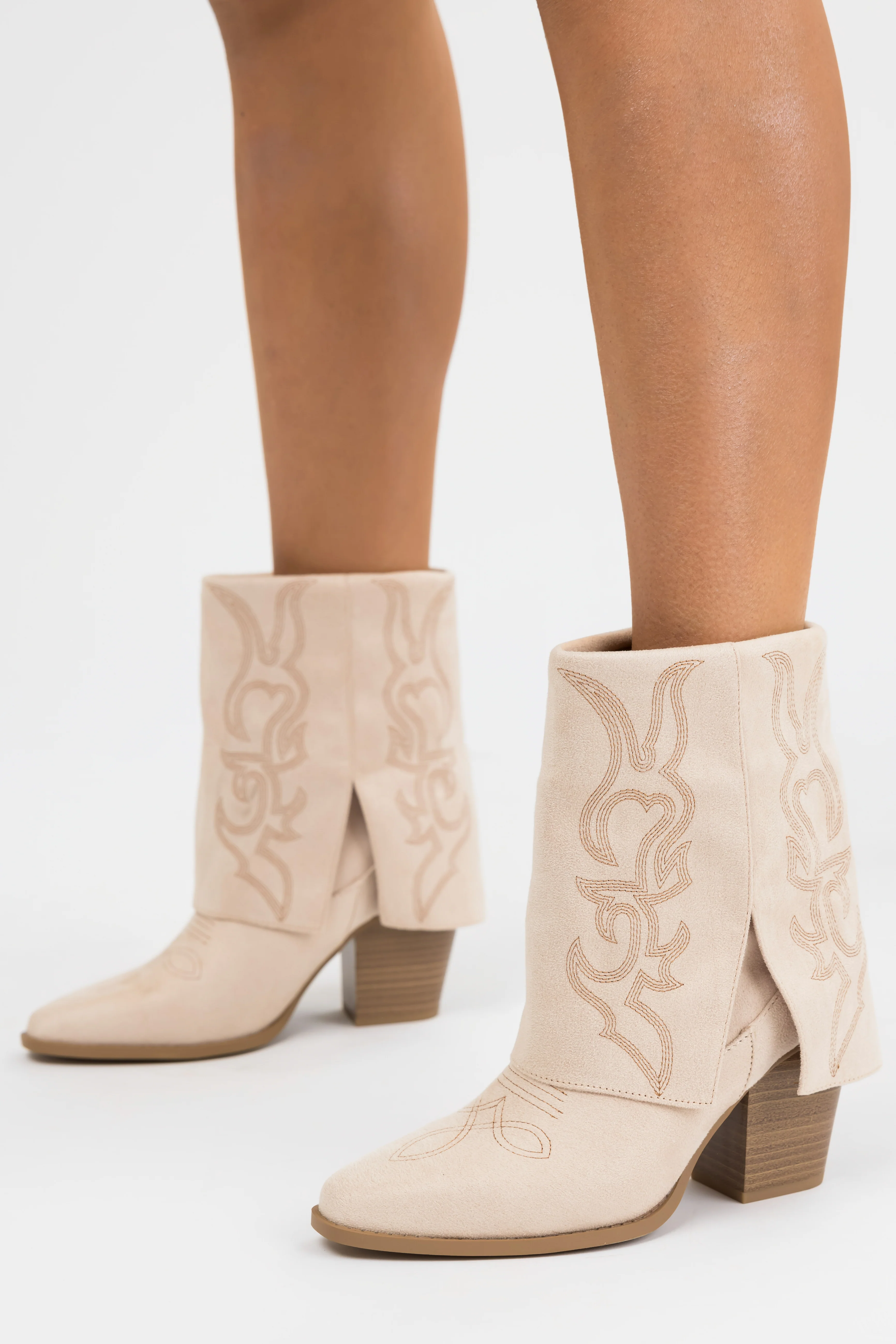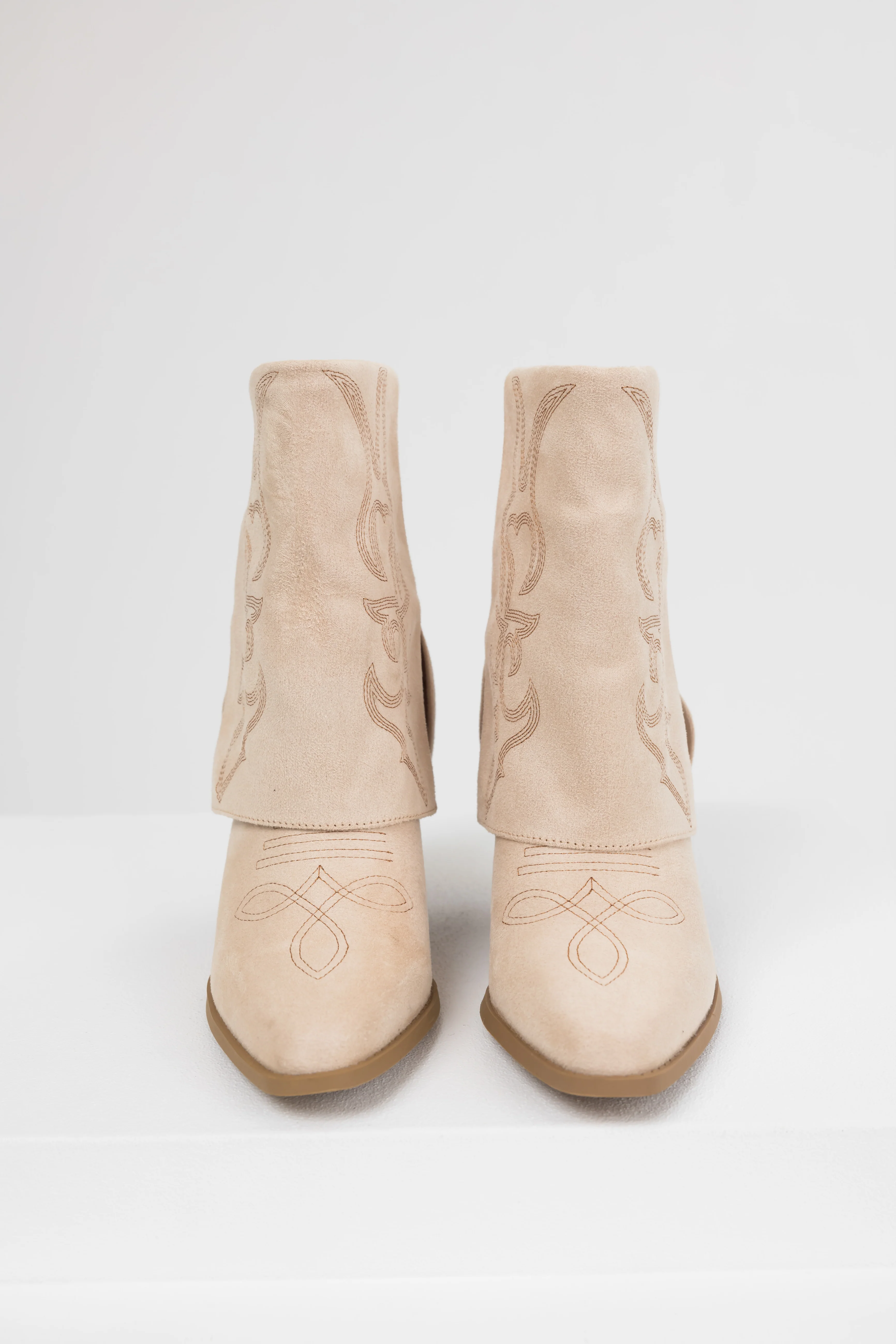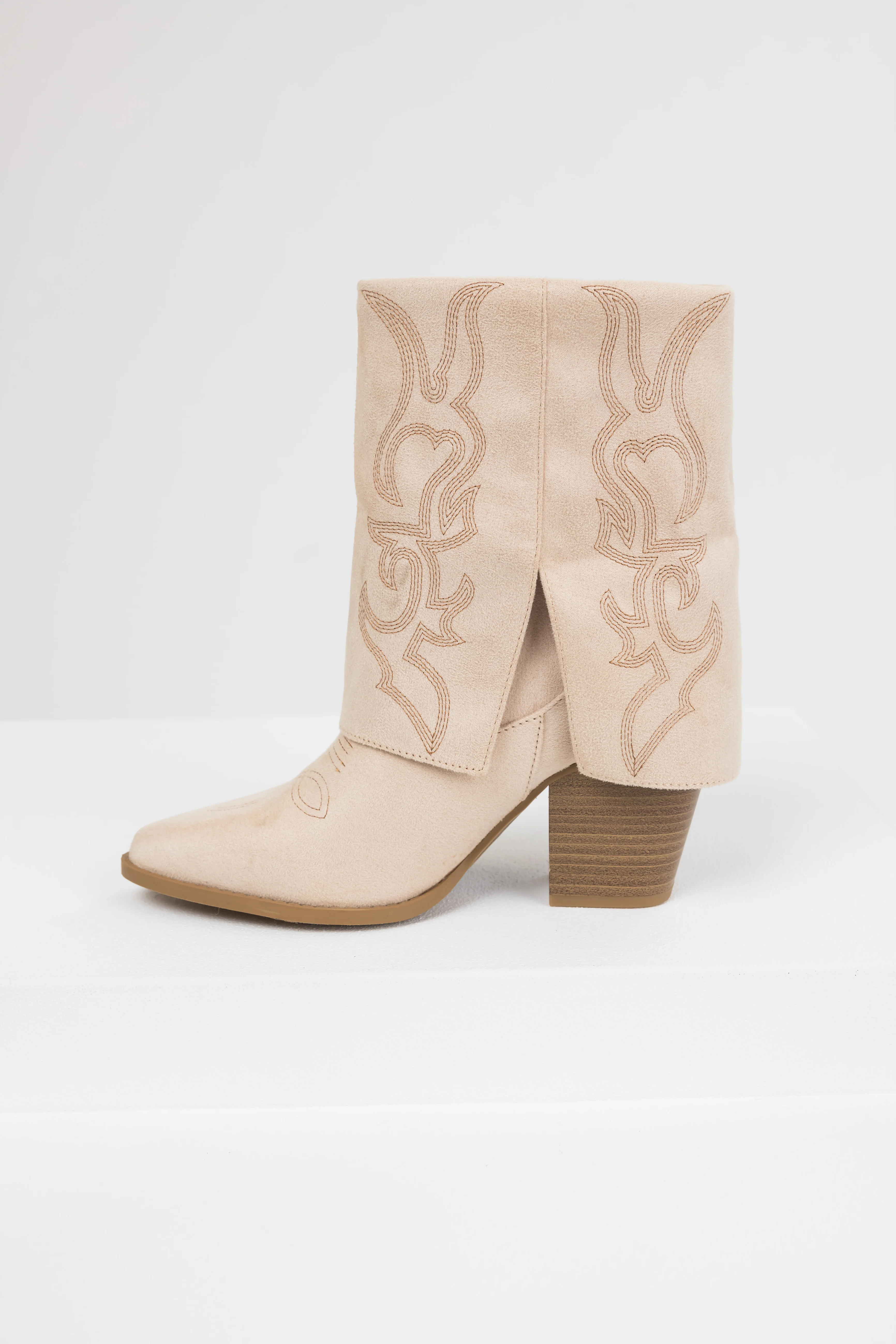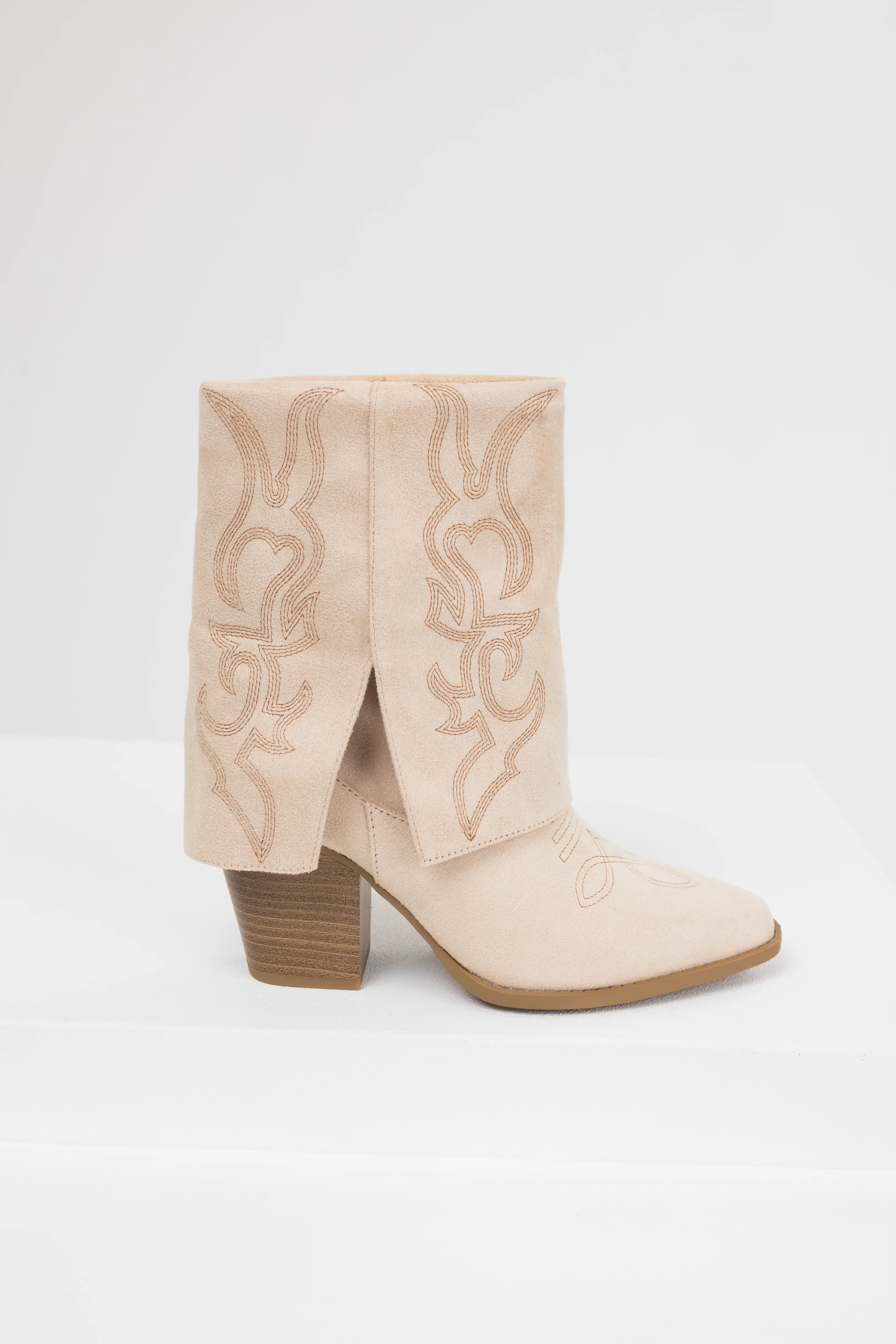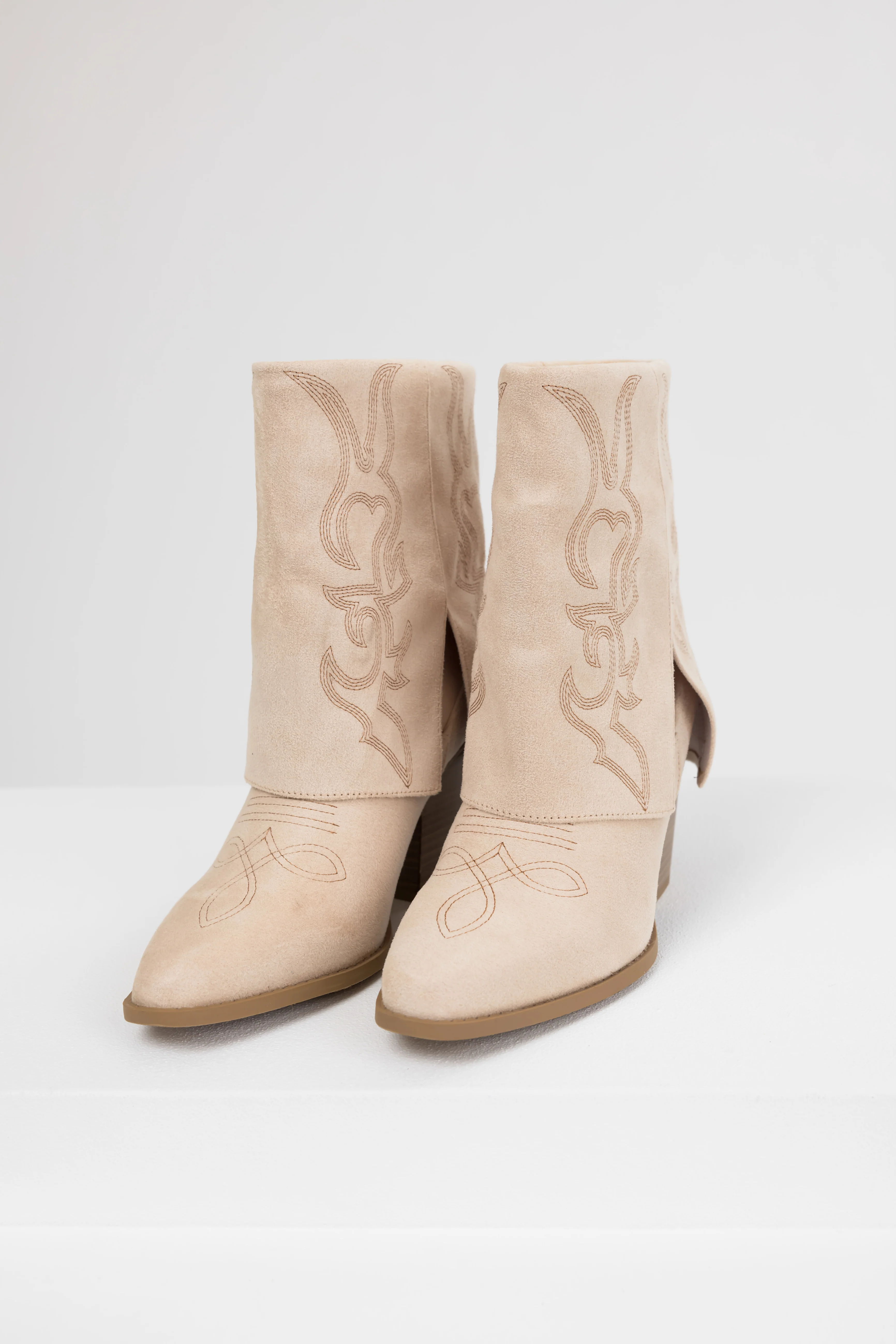 Sand Faux Suede Fold Over Western Boots