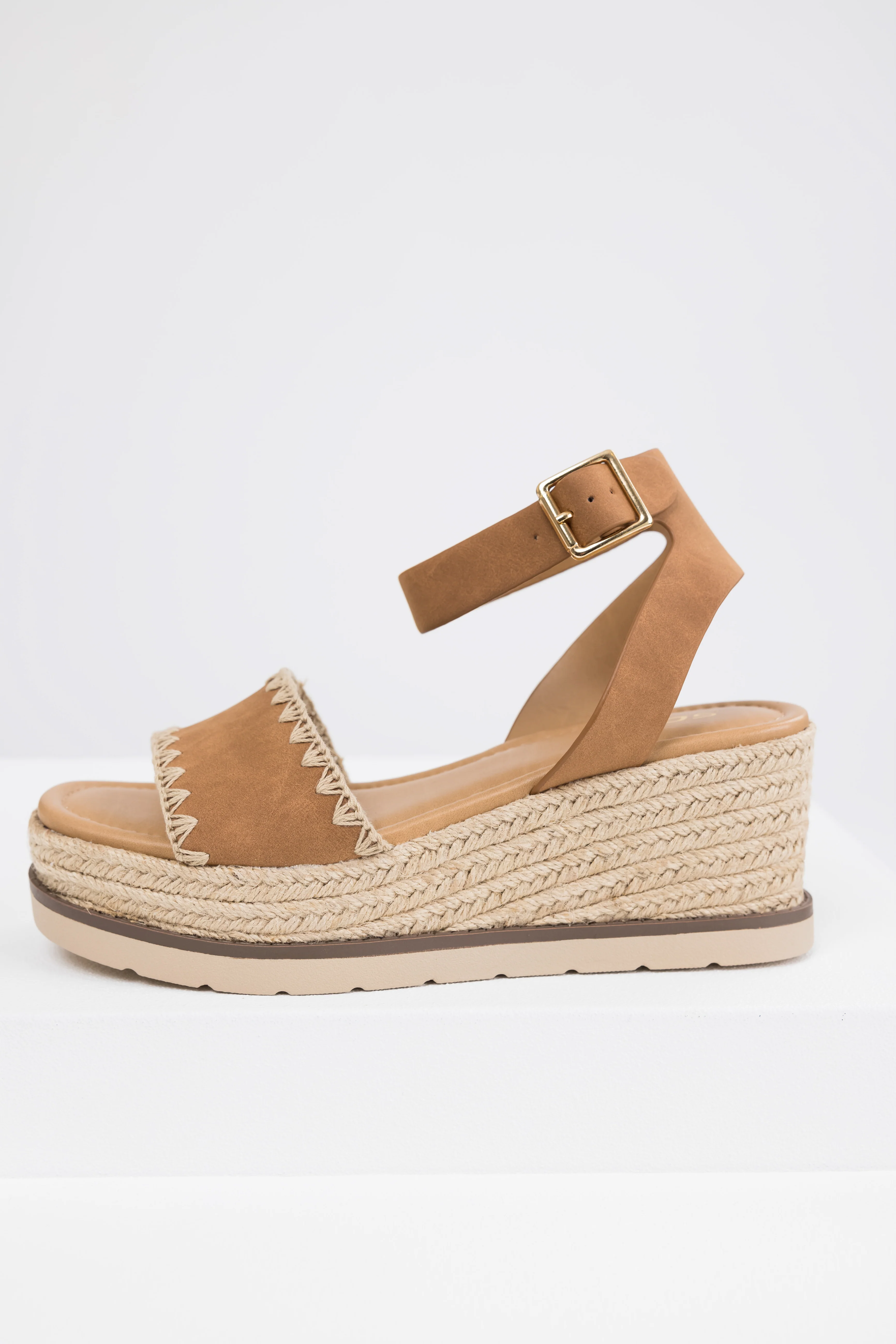 Sepia Stitched Trim Espadrille Platform Sandals