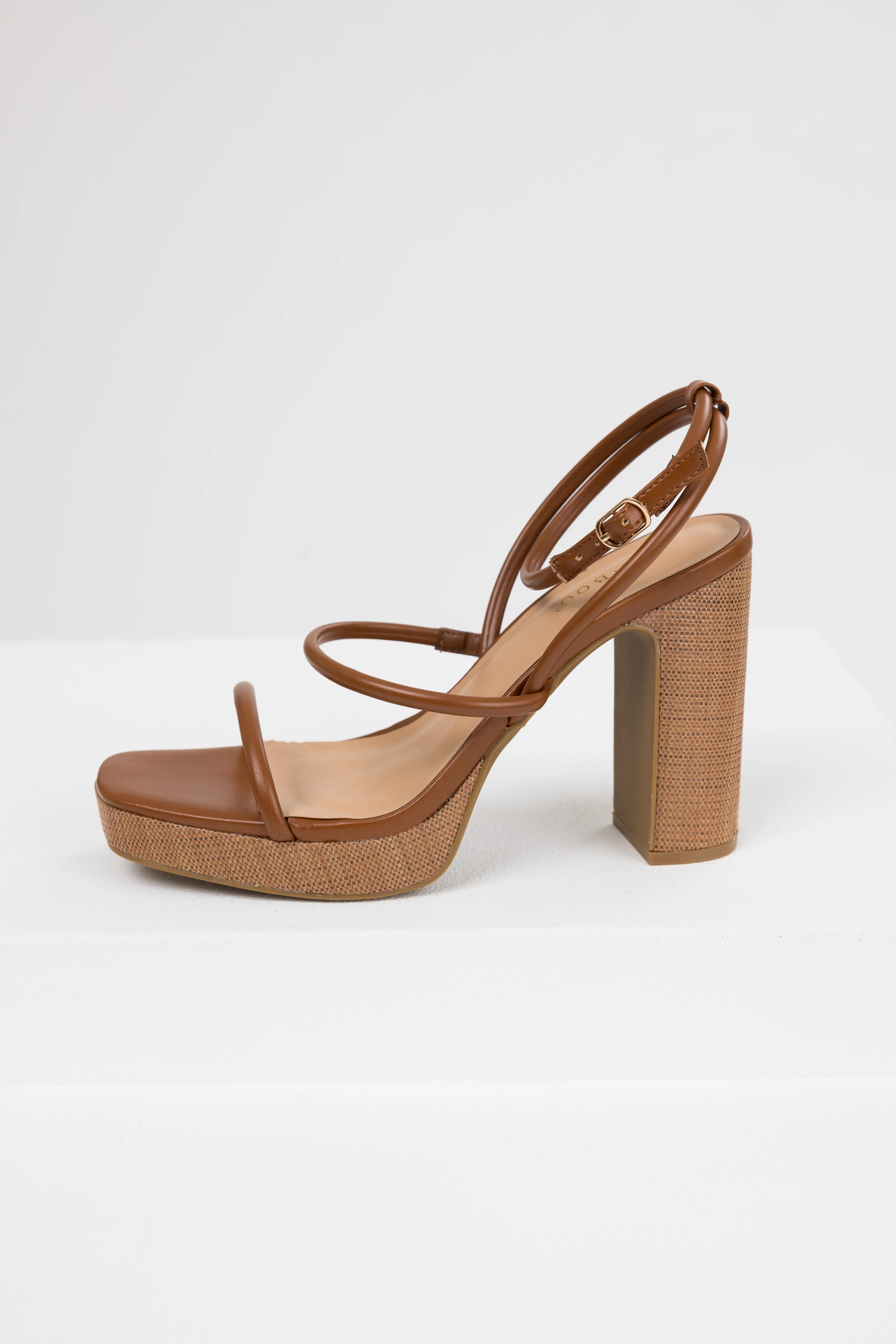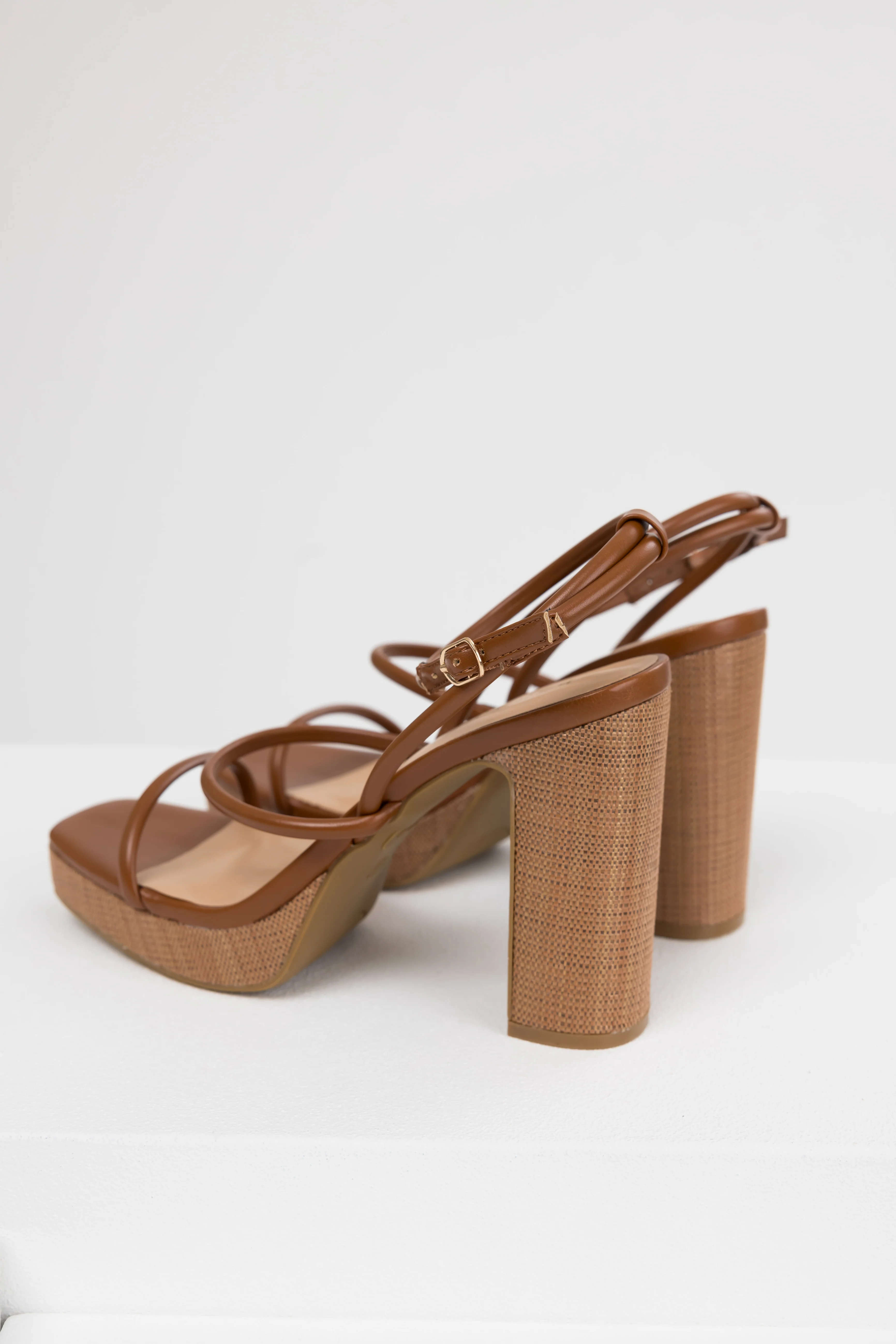 Cognac Jute Platform Thin Strap High Heels