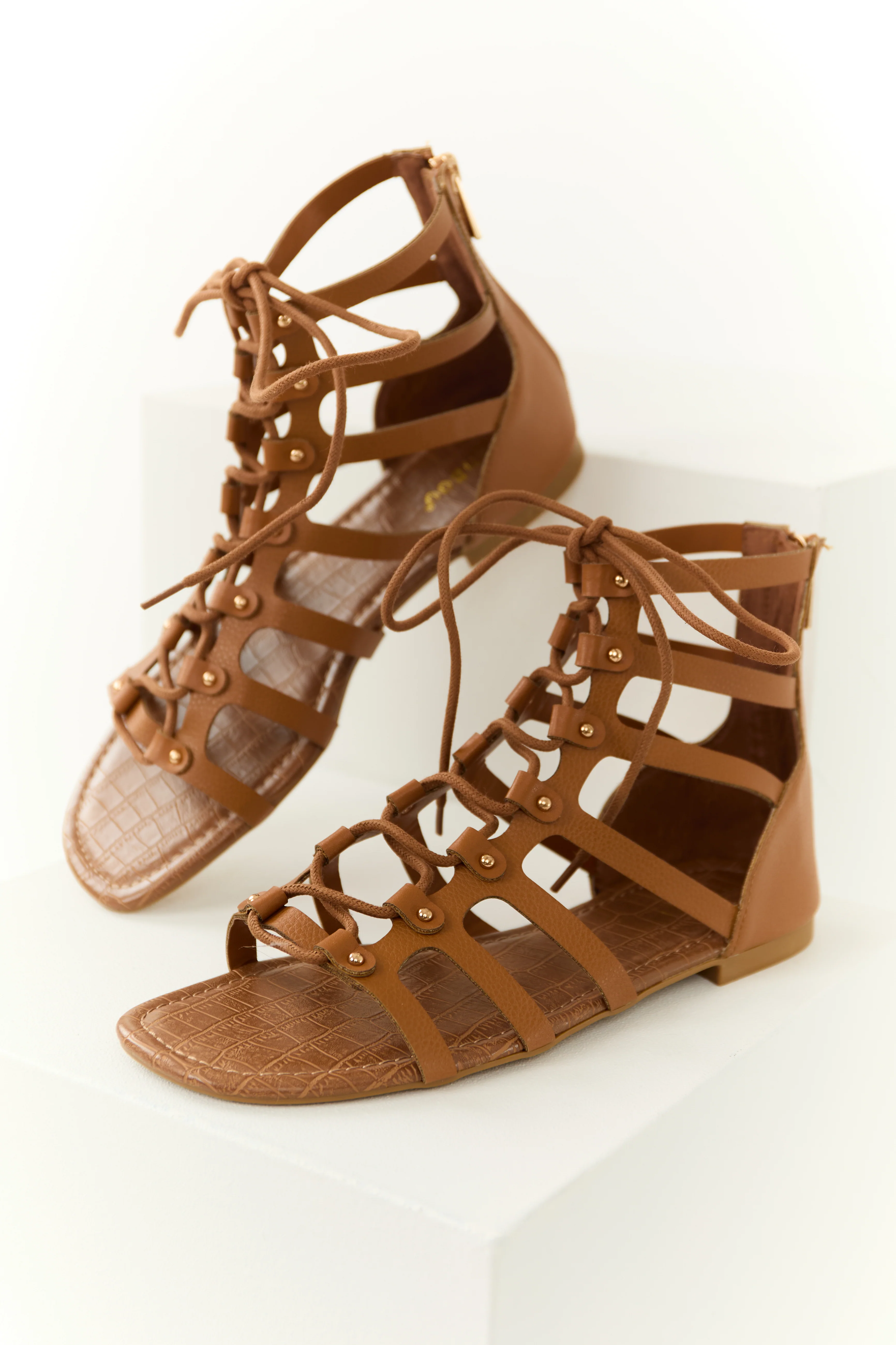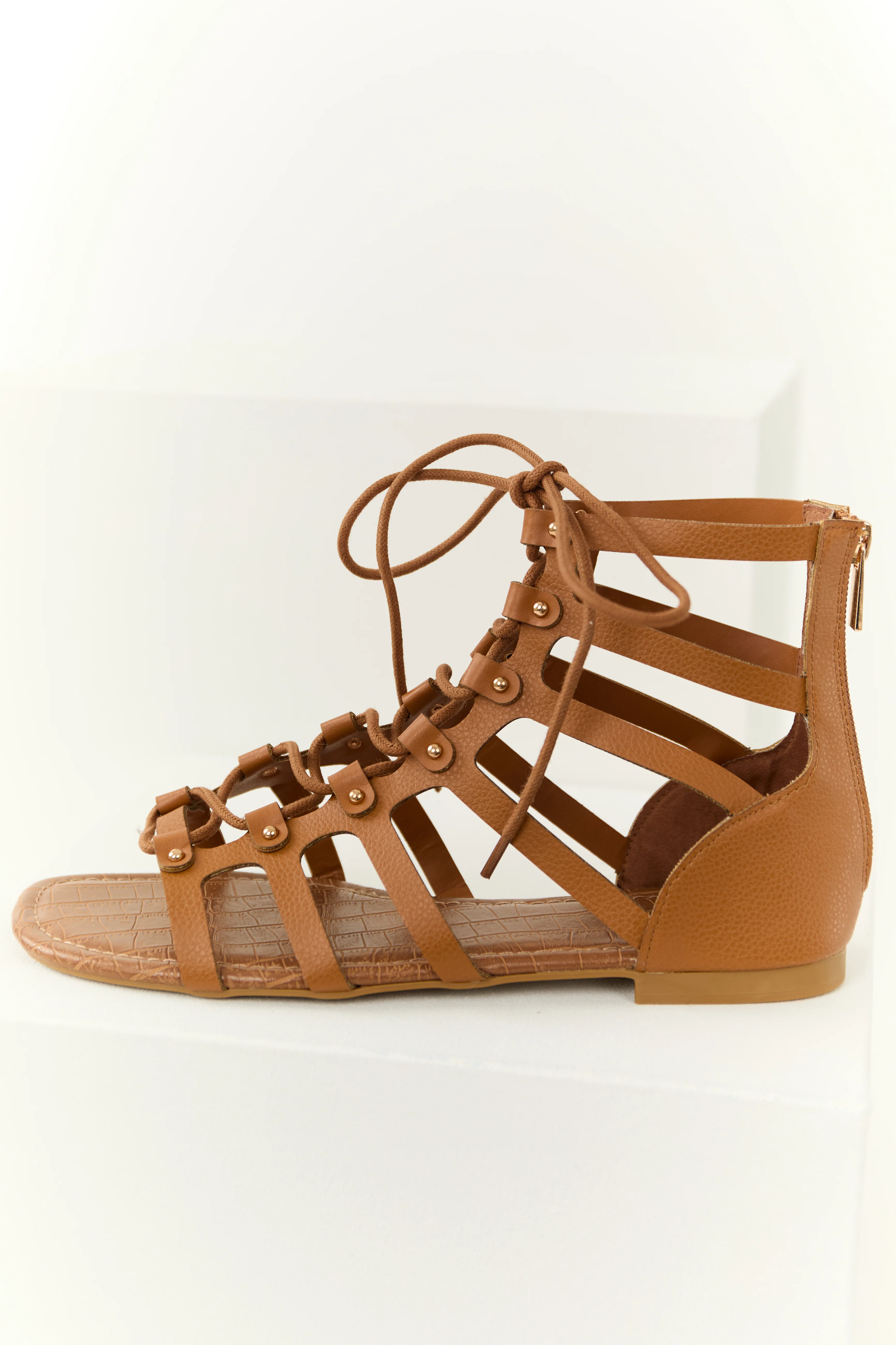 Copper Lace Up Open Toed Gladiator Sandals