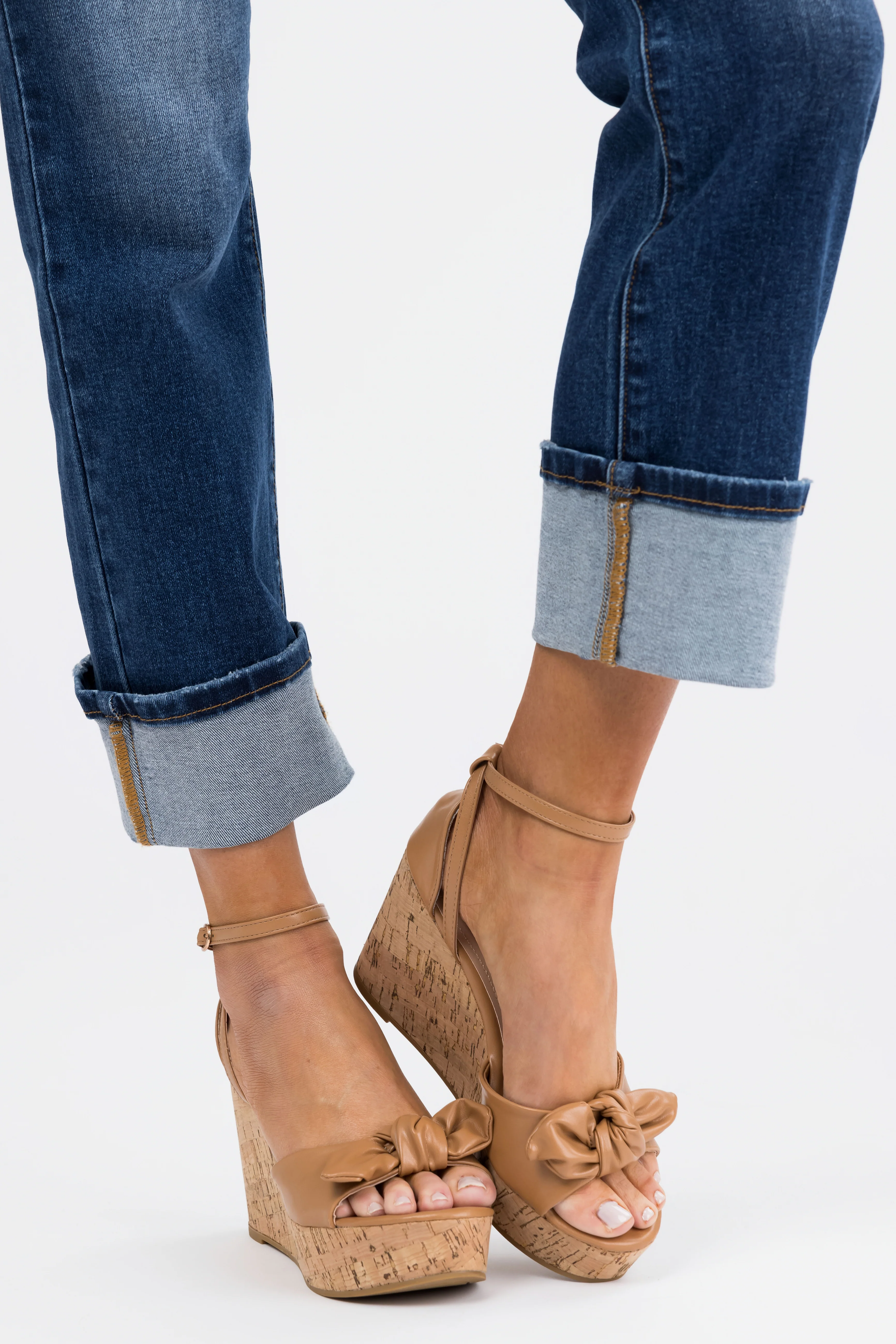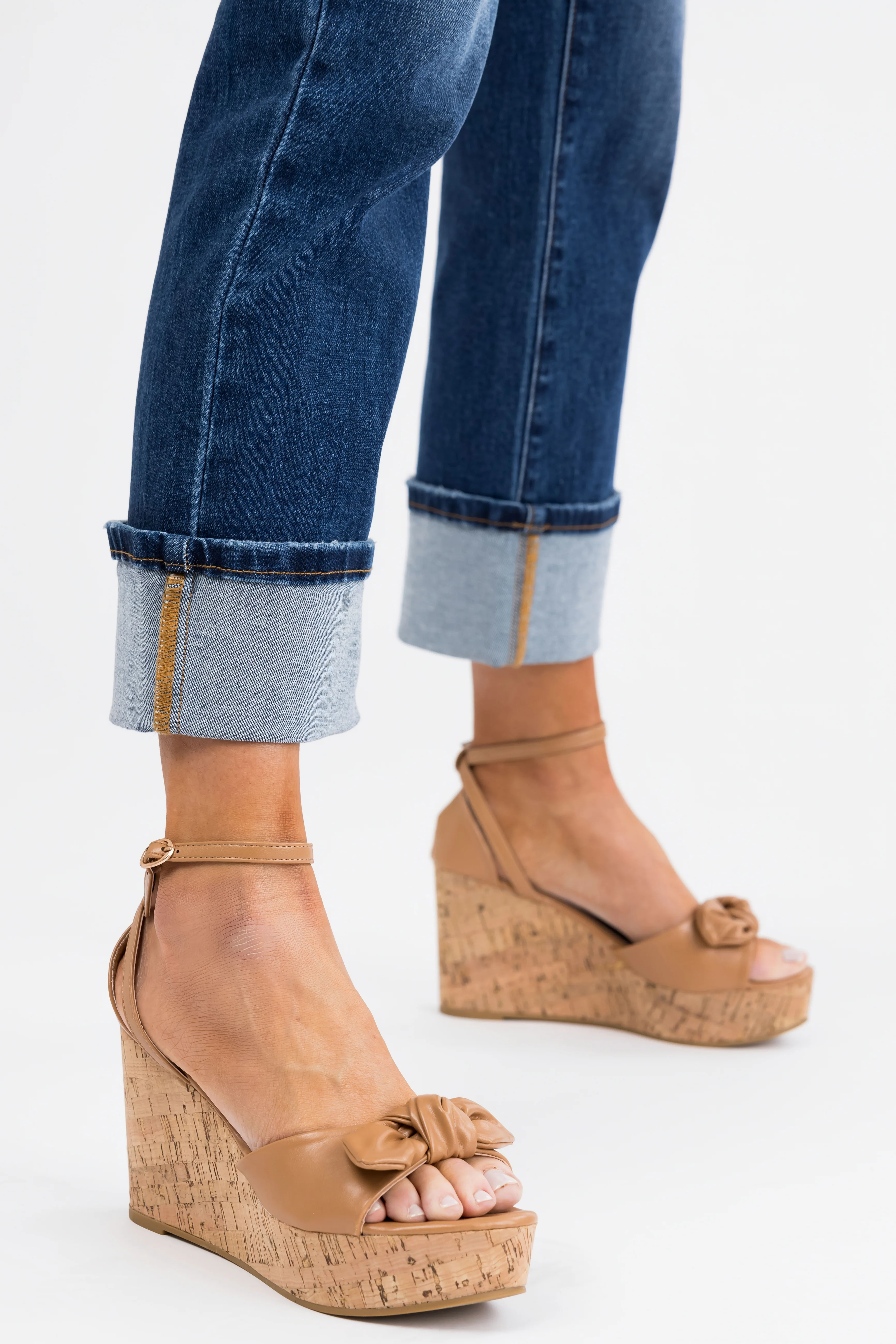 Brown Sugar Bow Open Toe Wedges