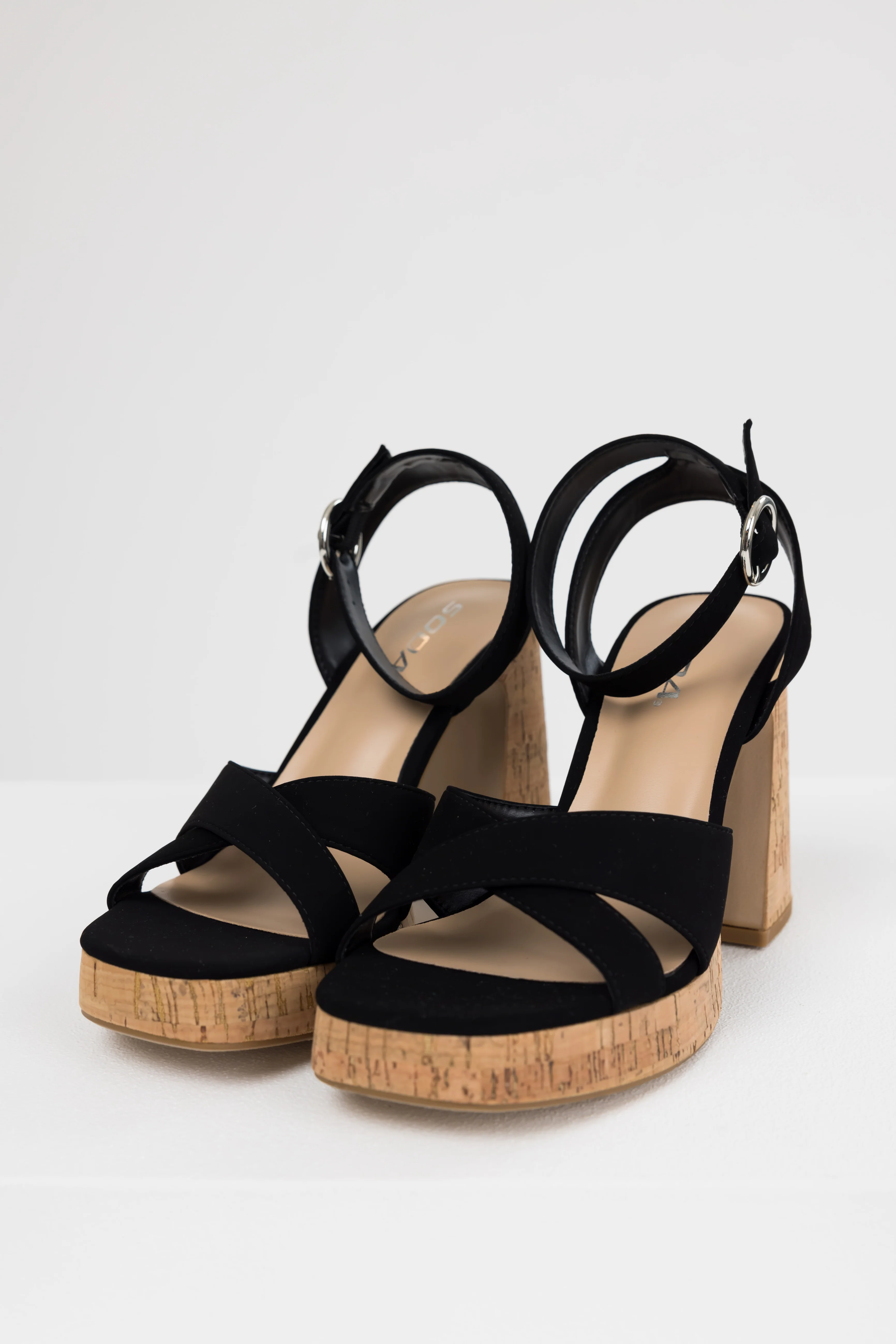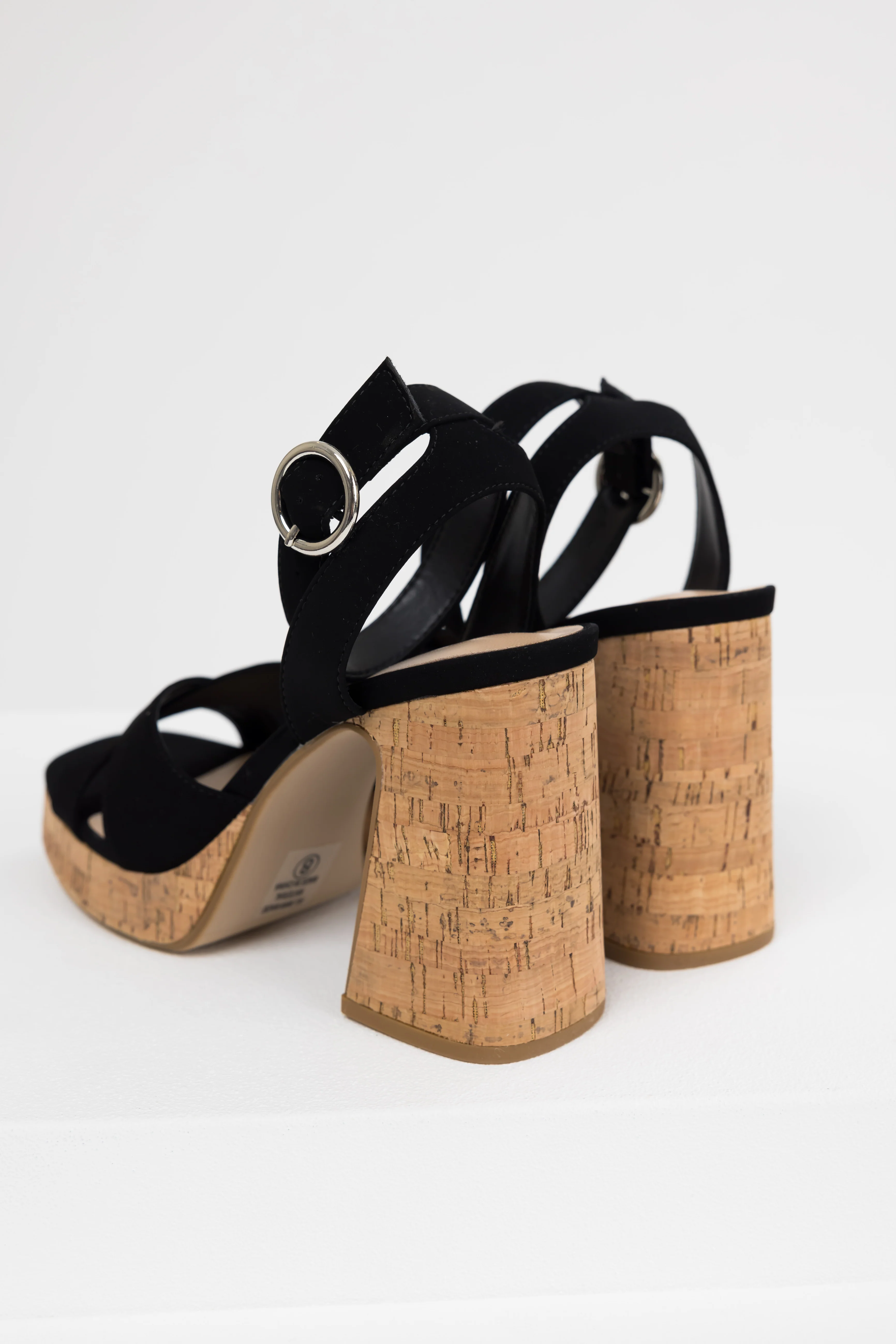 Black Ankle Strap Cork Platform Heels