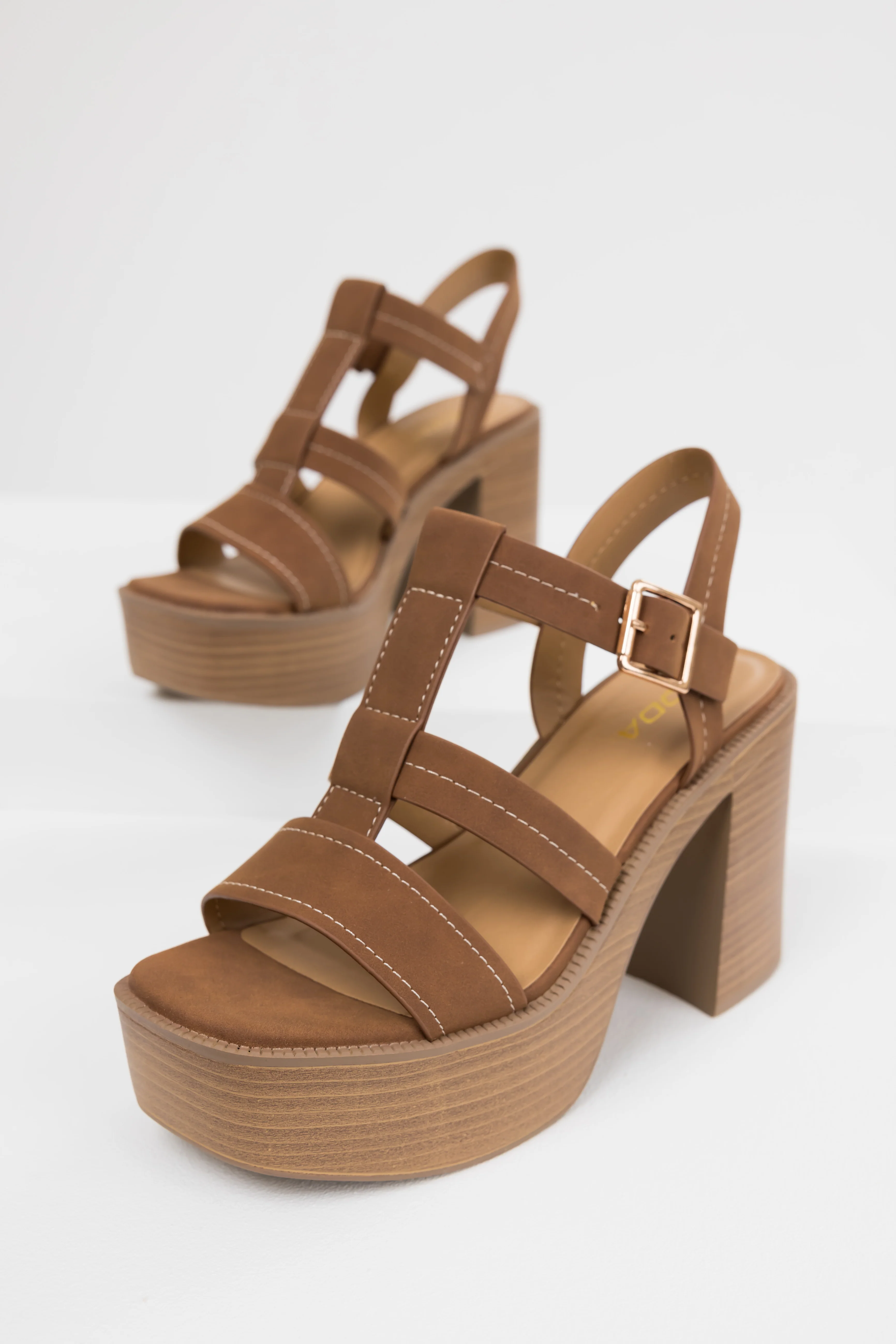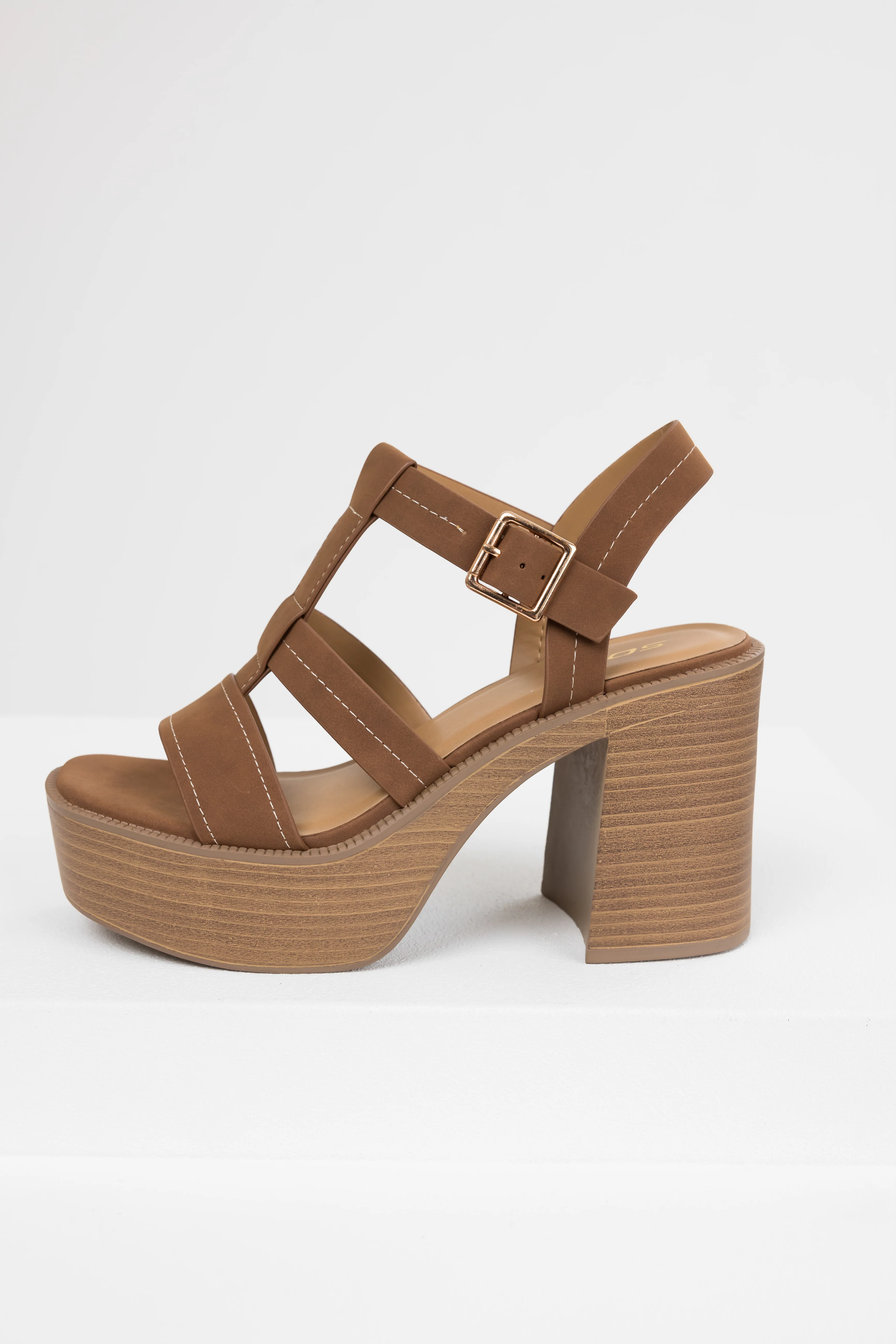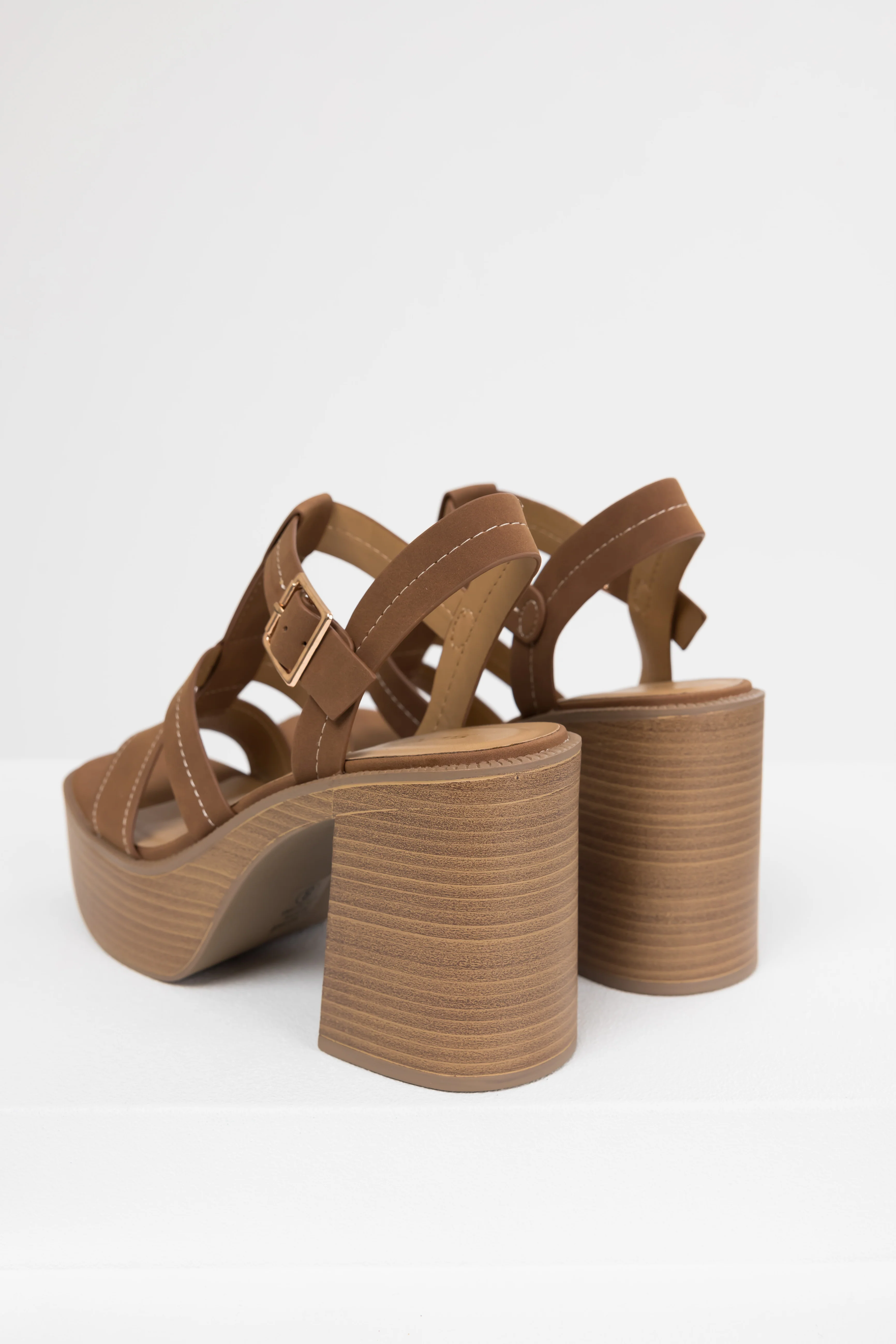Sepia Faux Suede Strappy Platfom Sandals