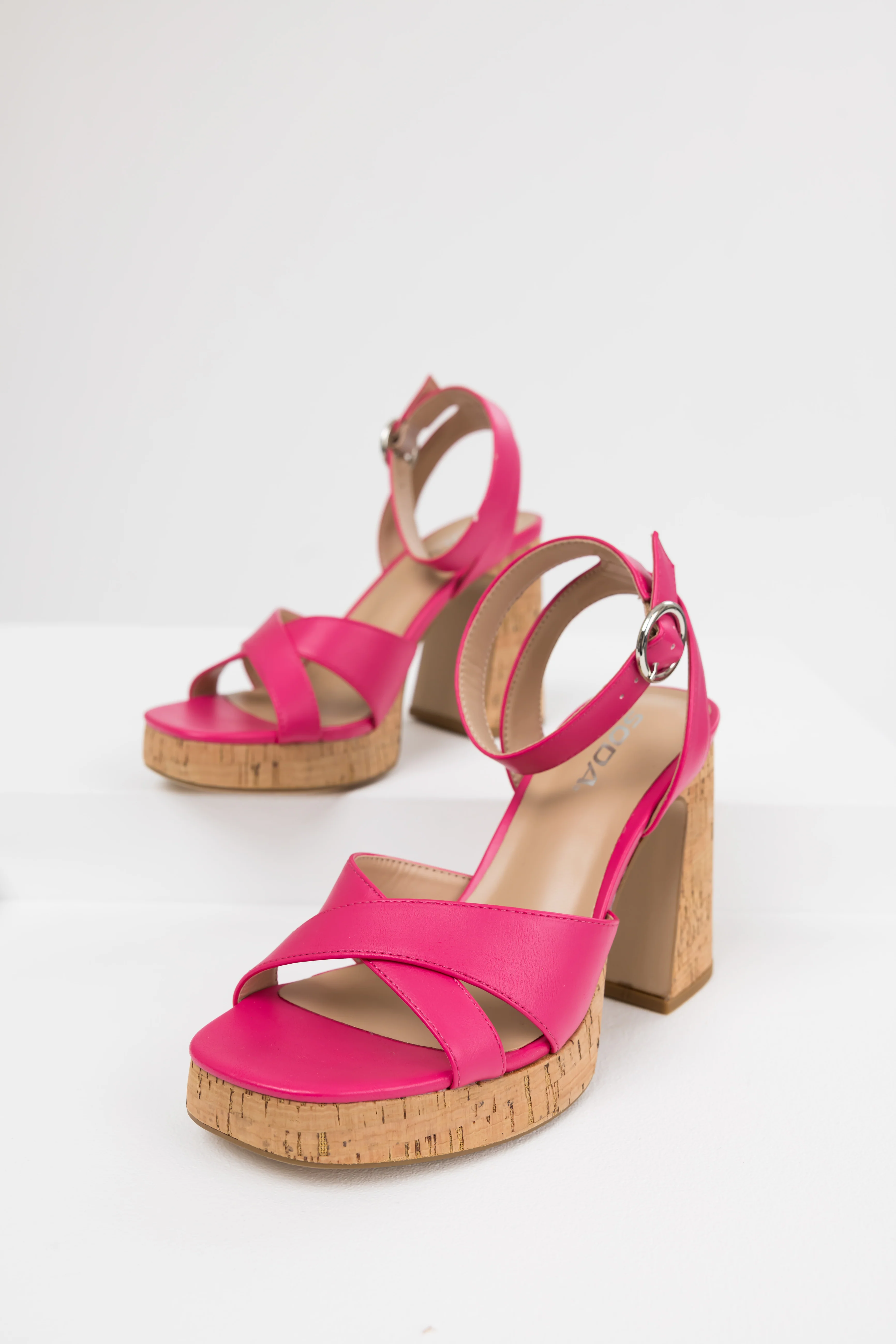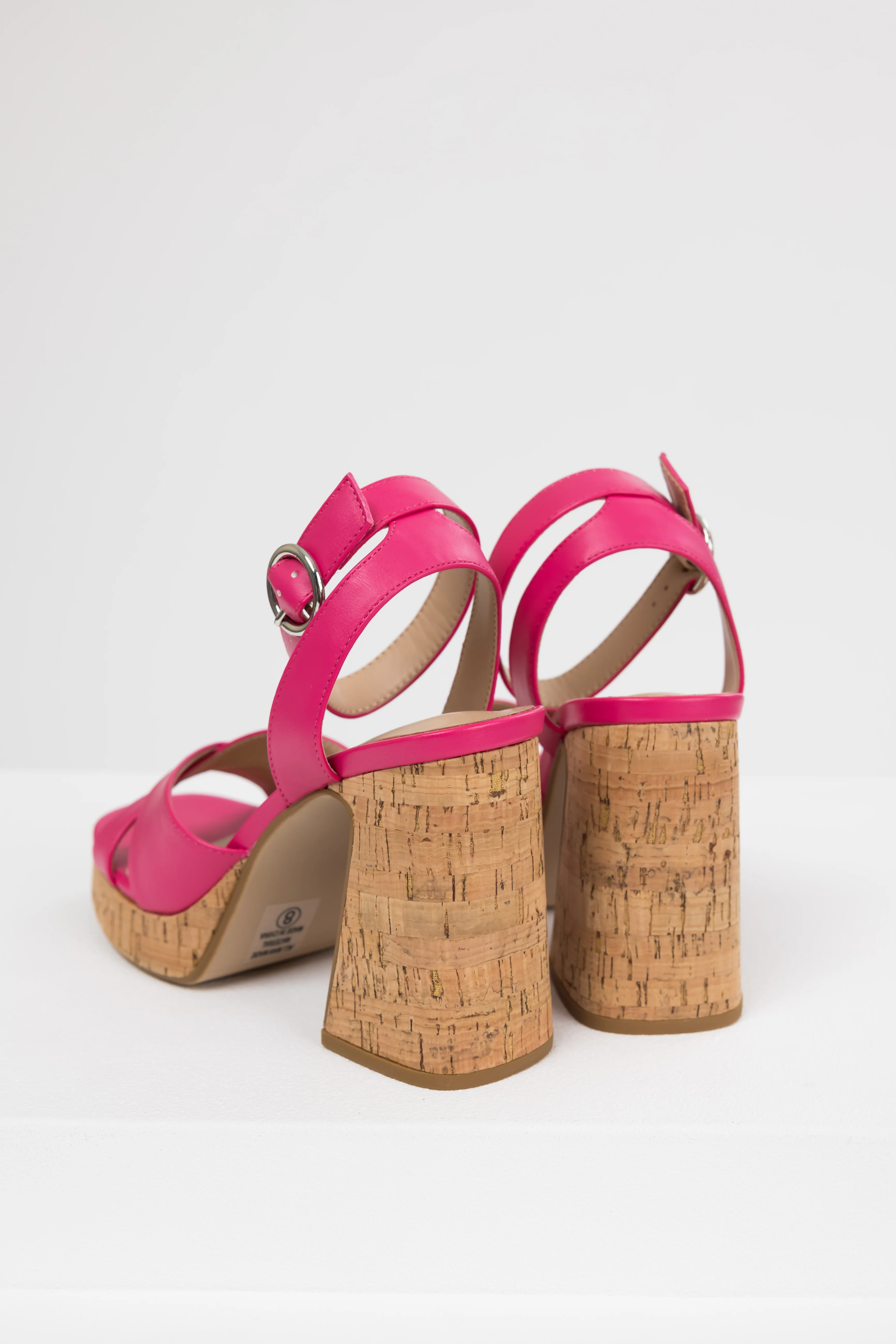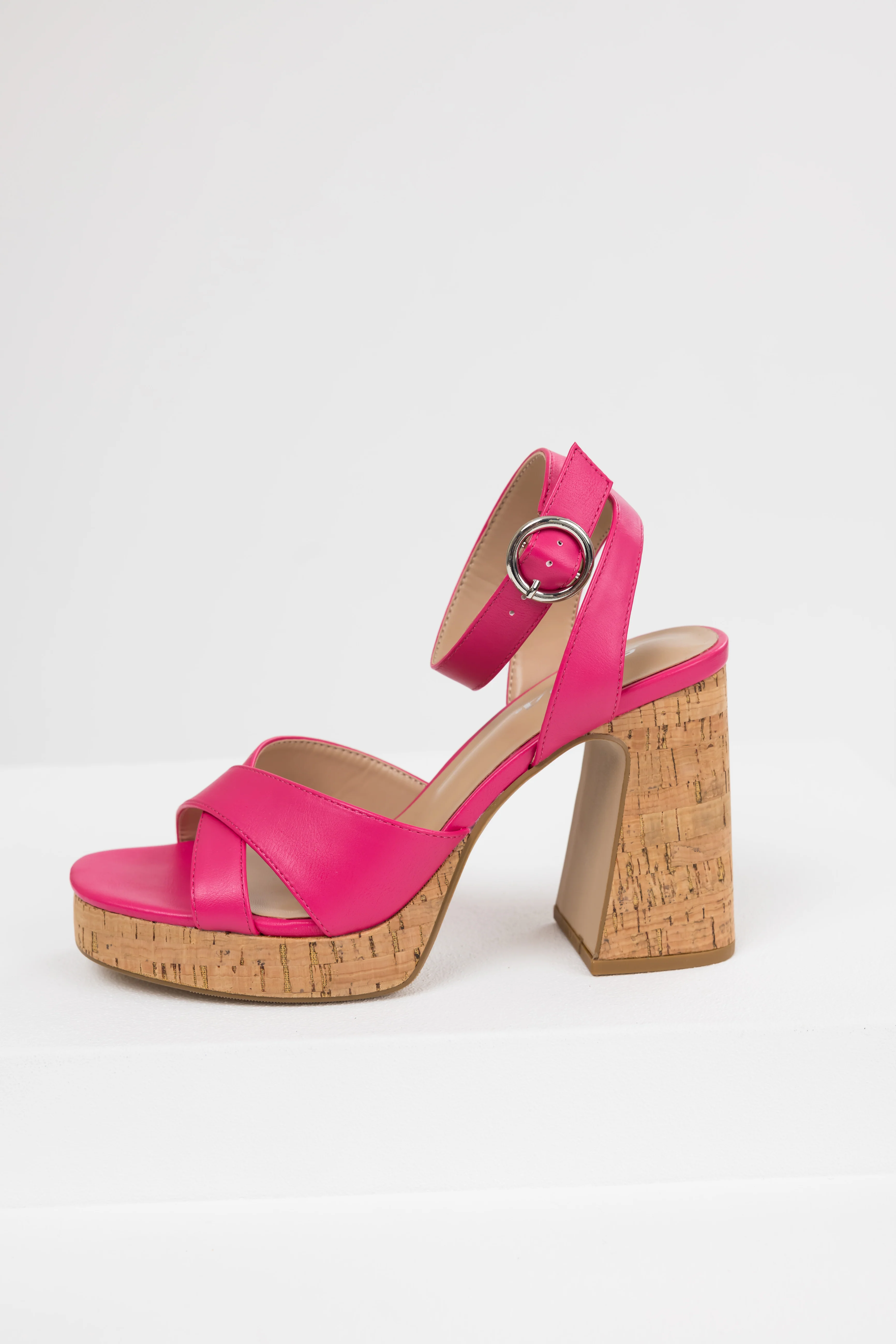 Hot Pink Ankle Strap Cork Platform Heels