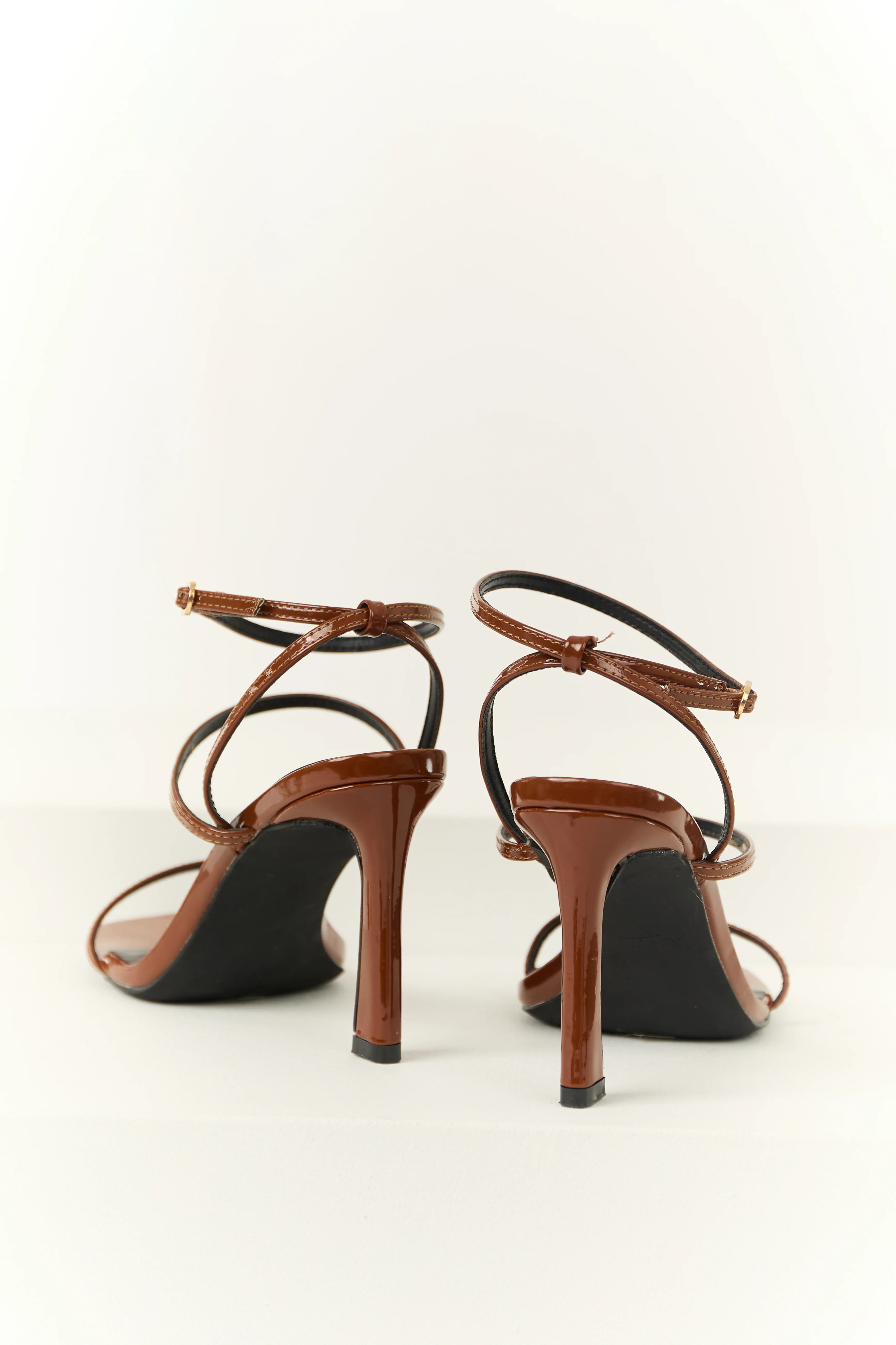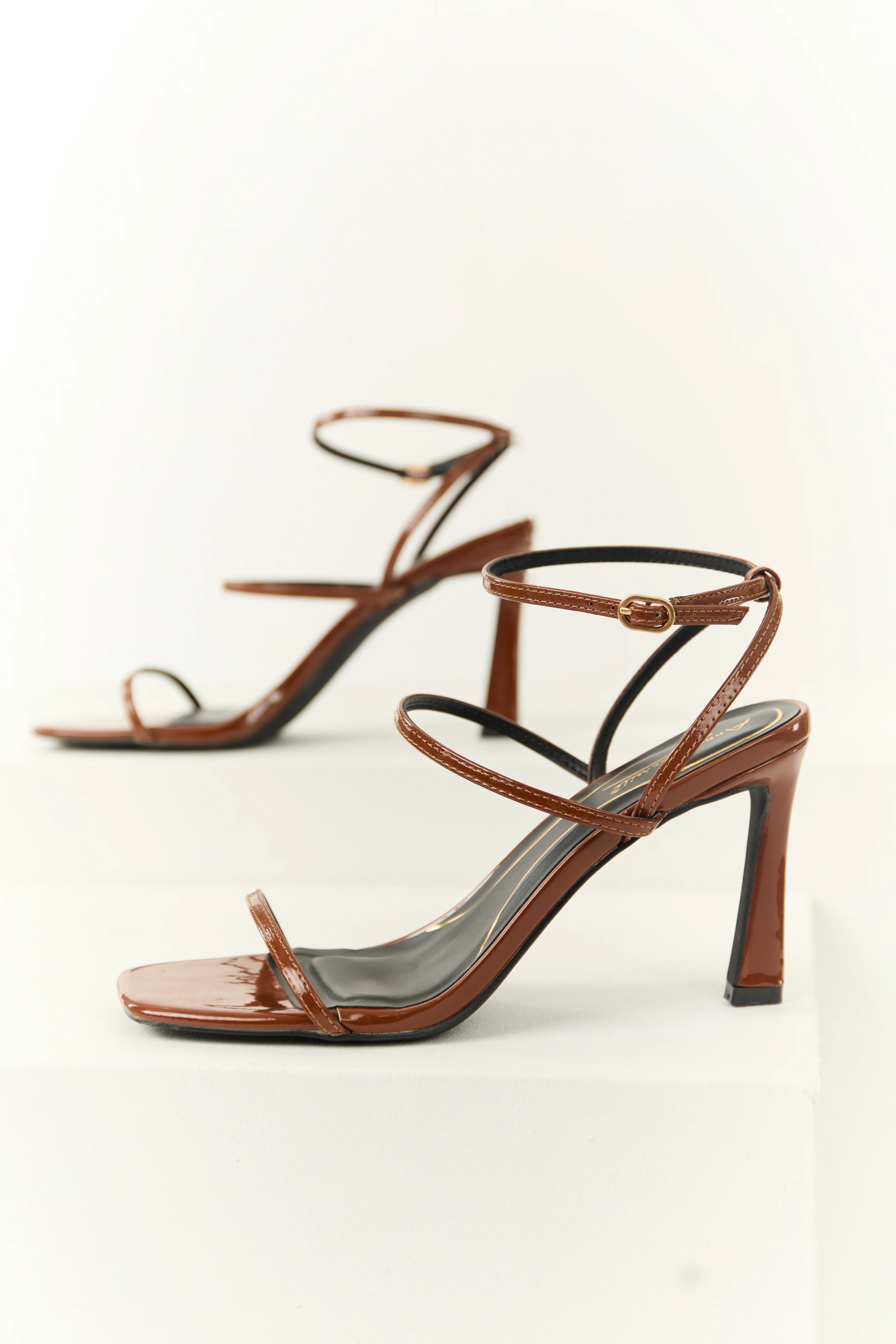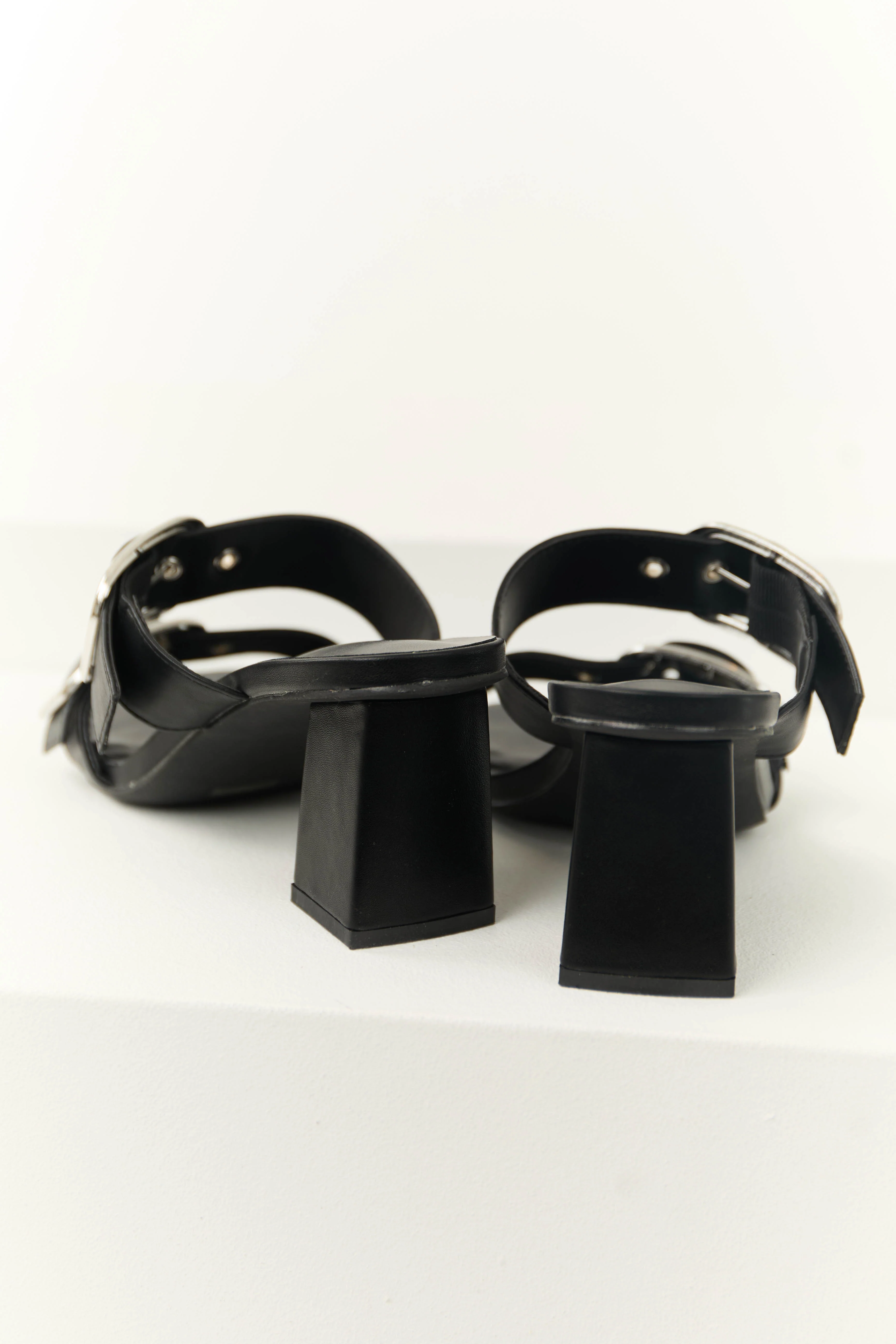 Dark Cherry Open Toed Double Buckle Strap Heels