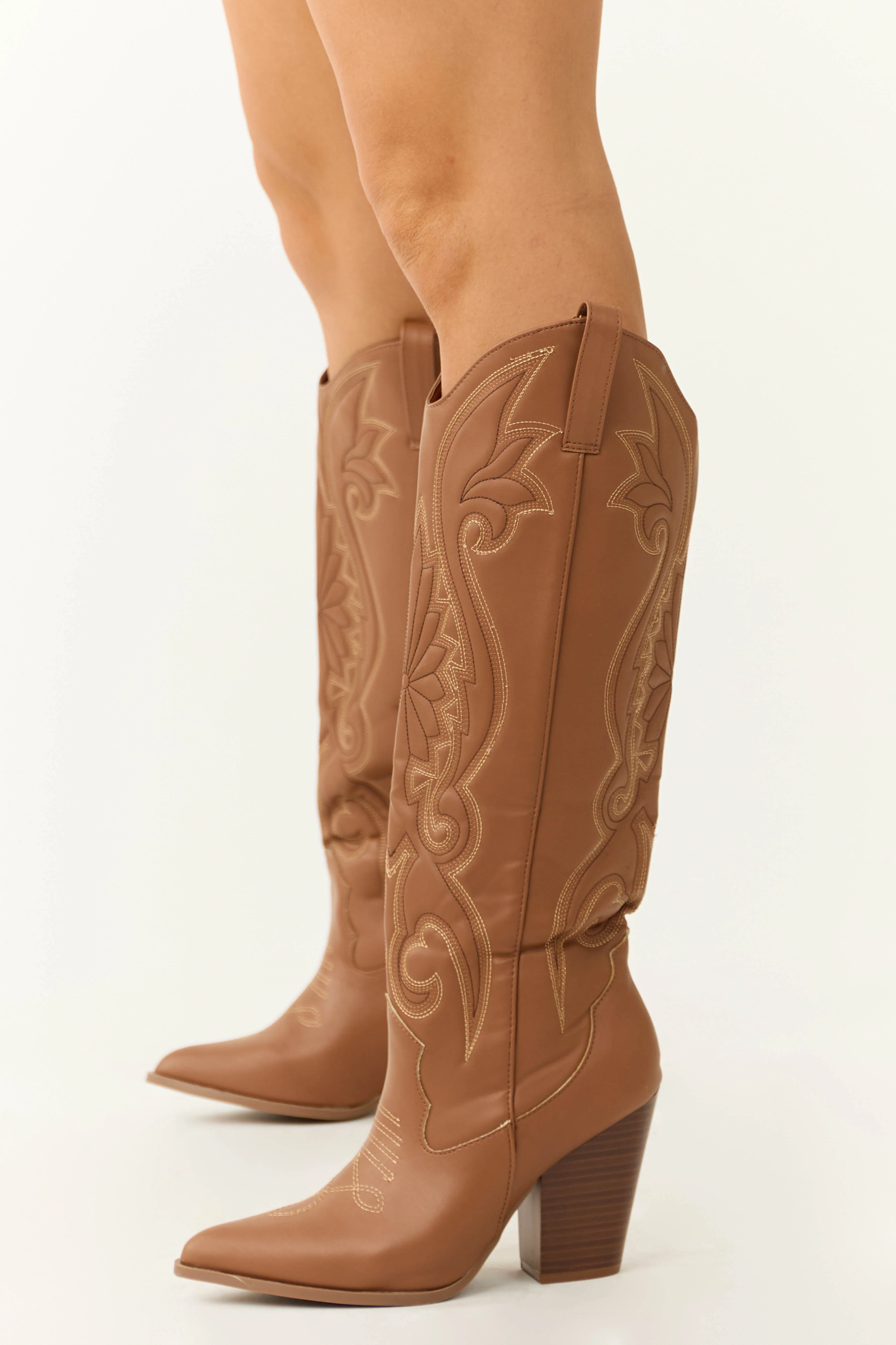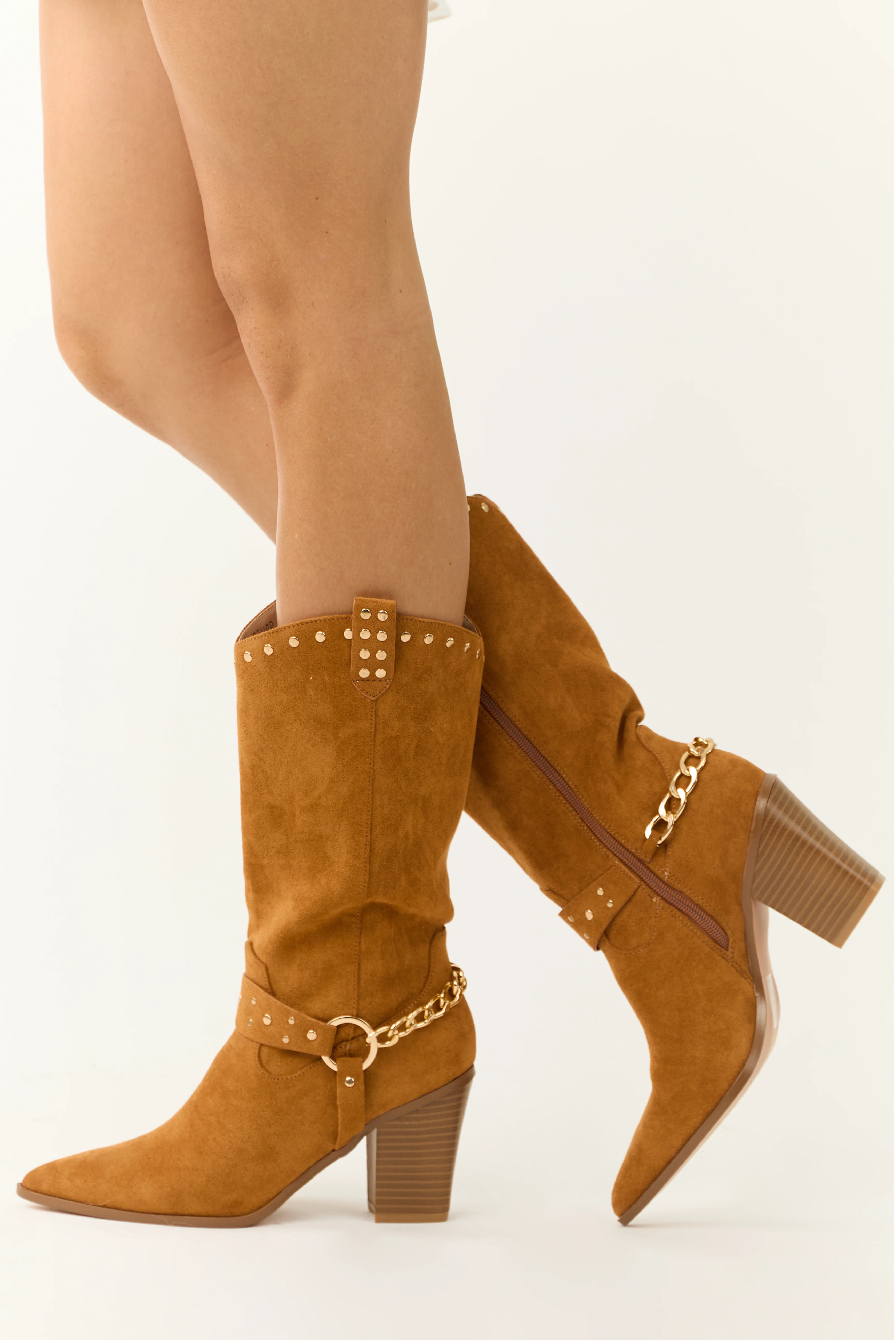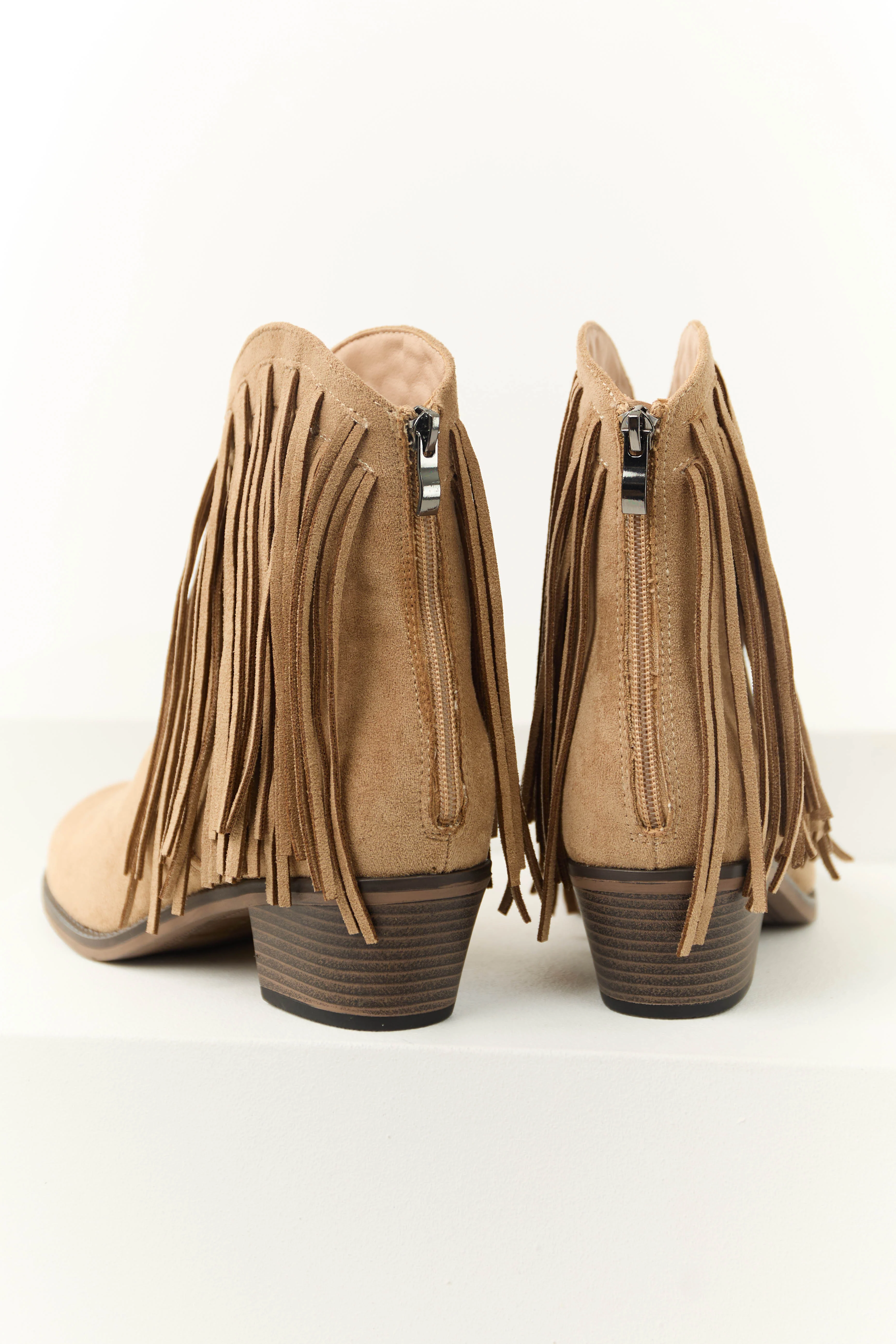 Latte Faux Leather Pointed Toe Block Heel Booties