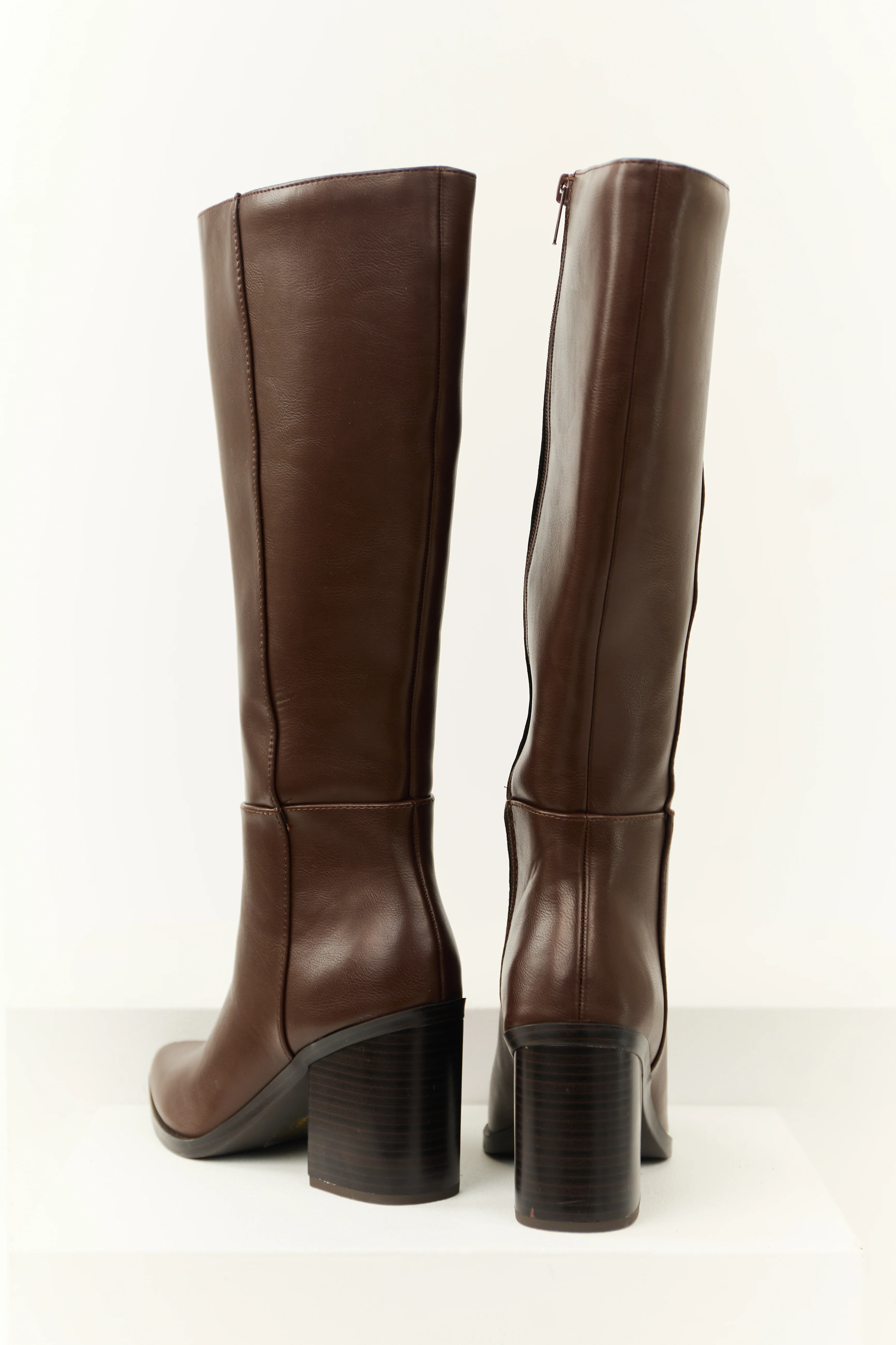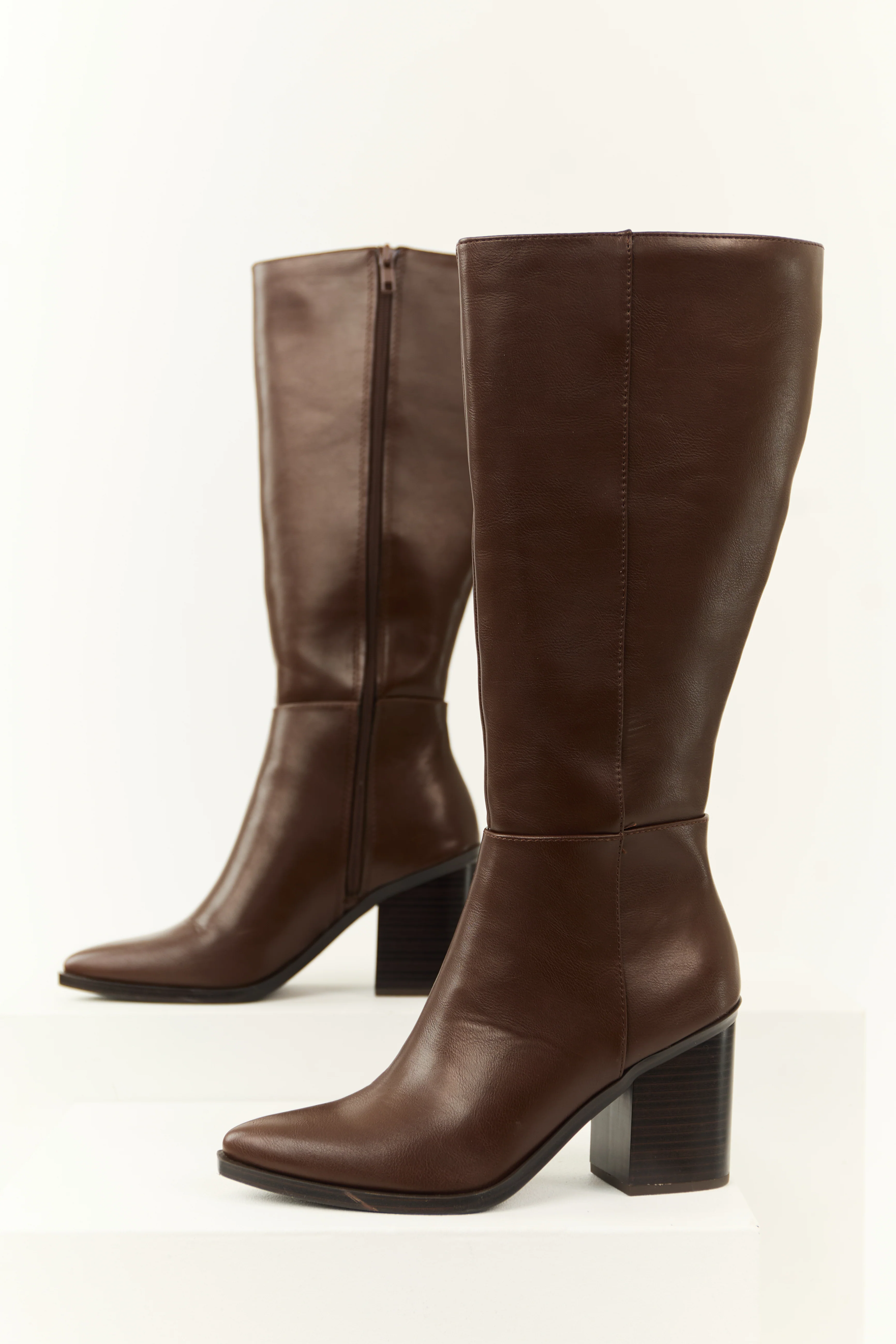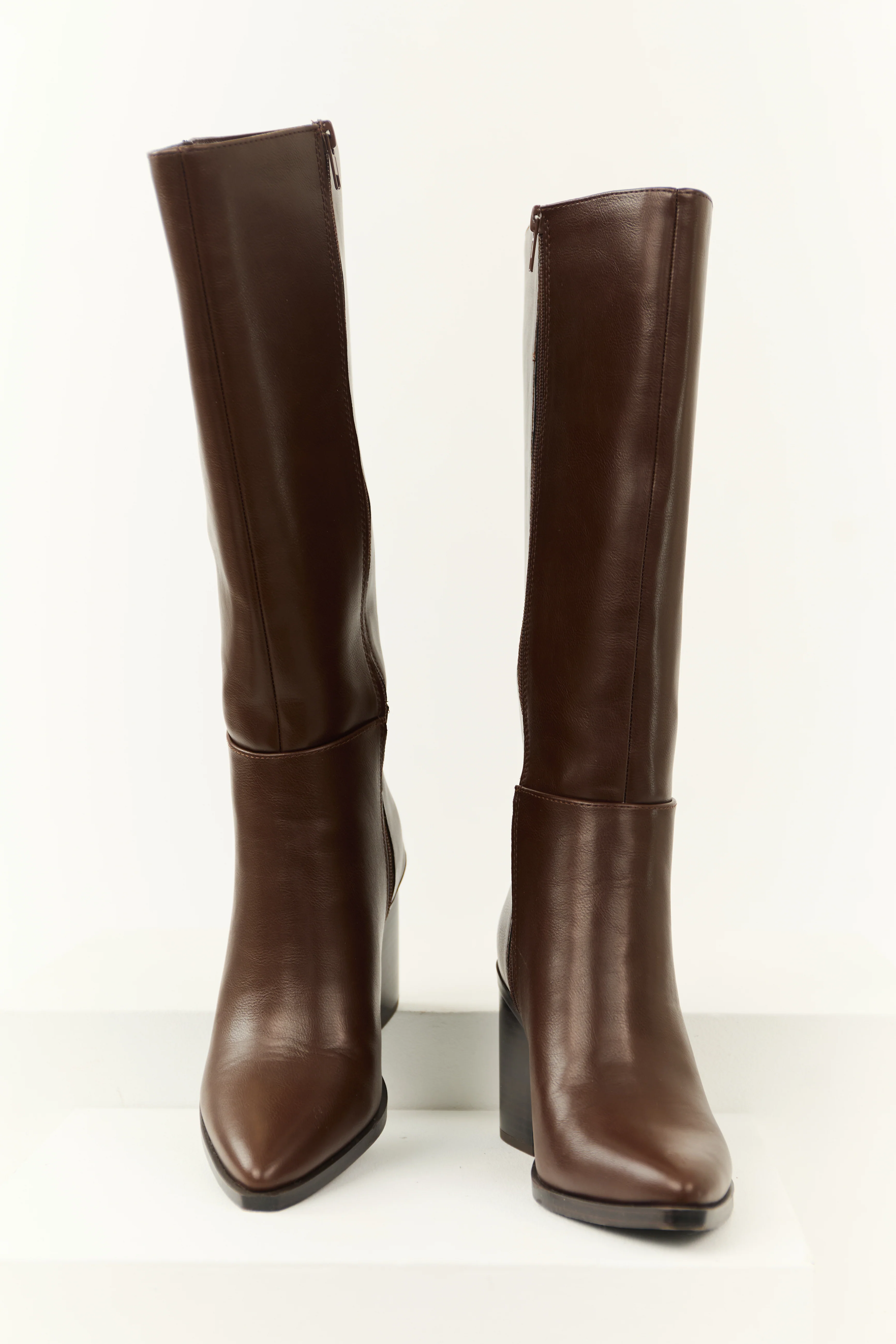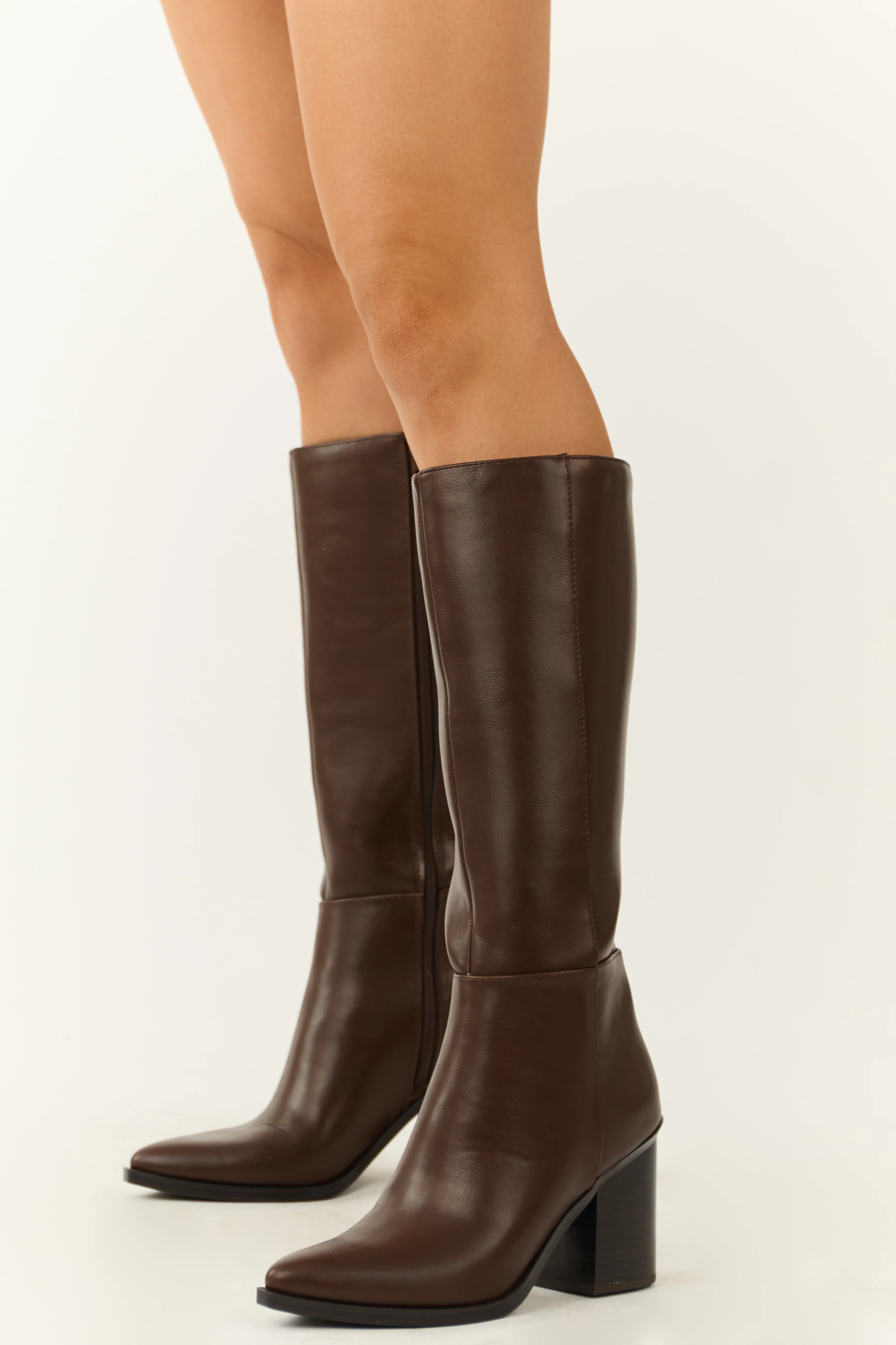 Chocolate Faux Leather Pointed Toe Boots