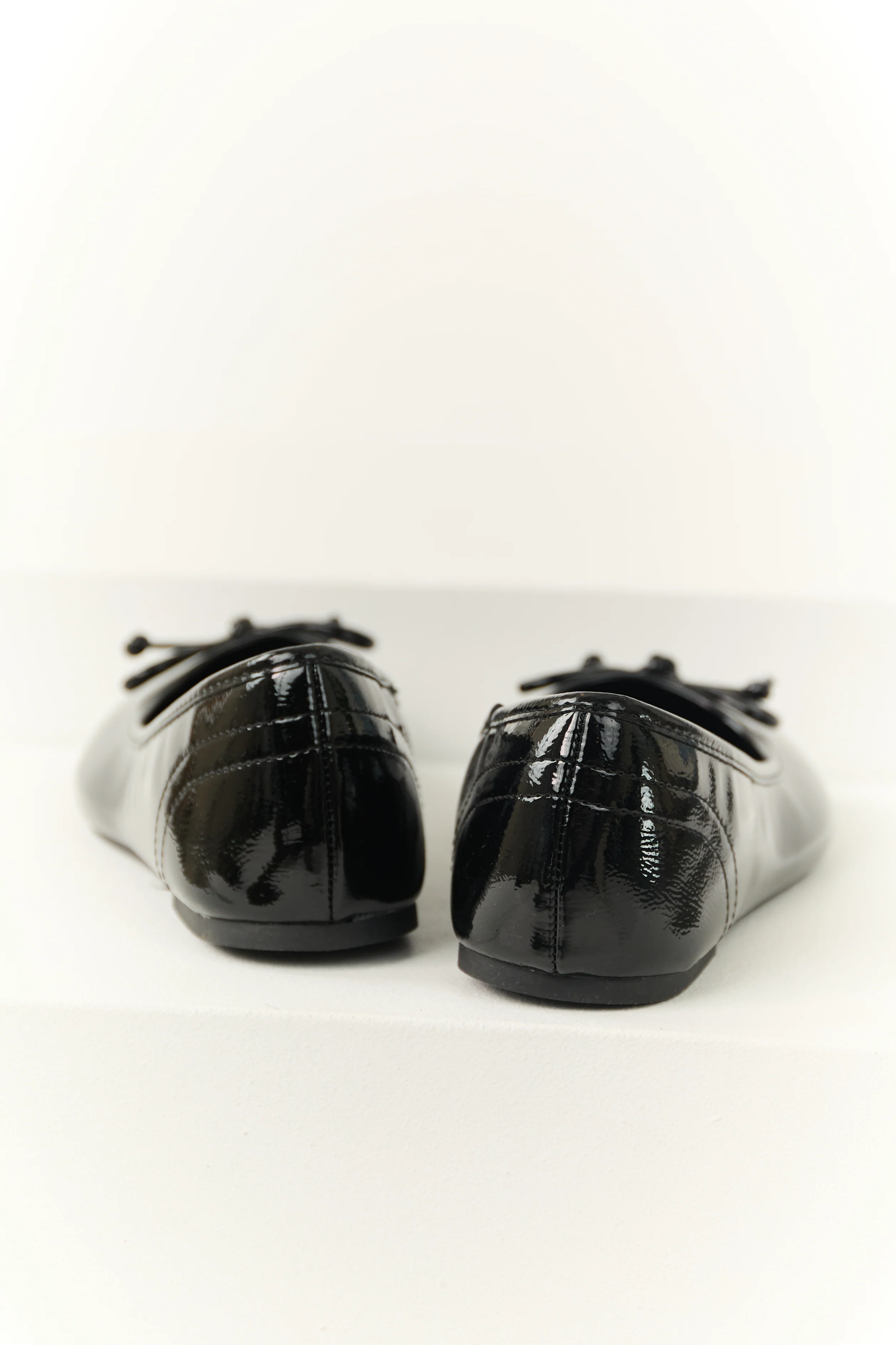Black Faux Leather Bow Detail Slip On Flats