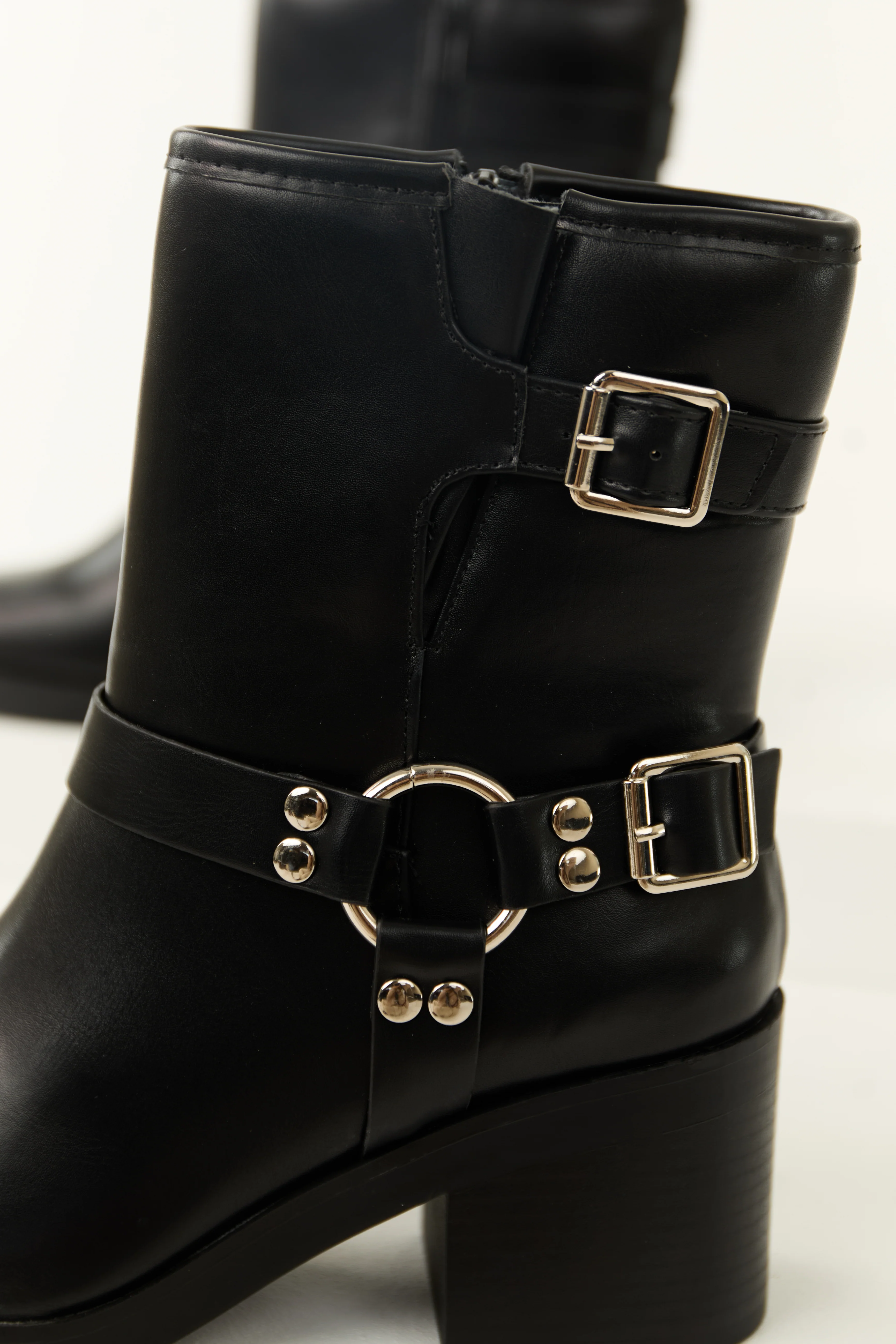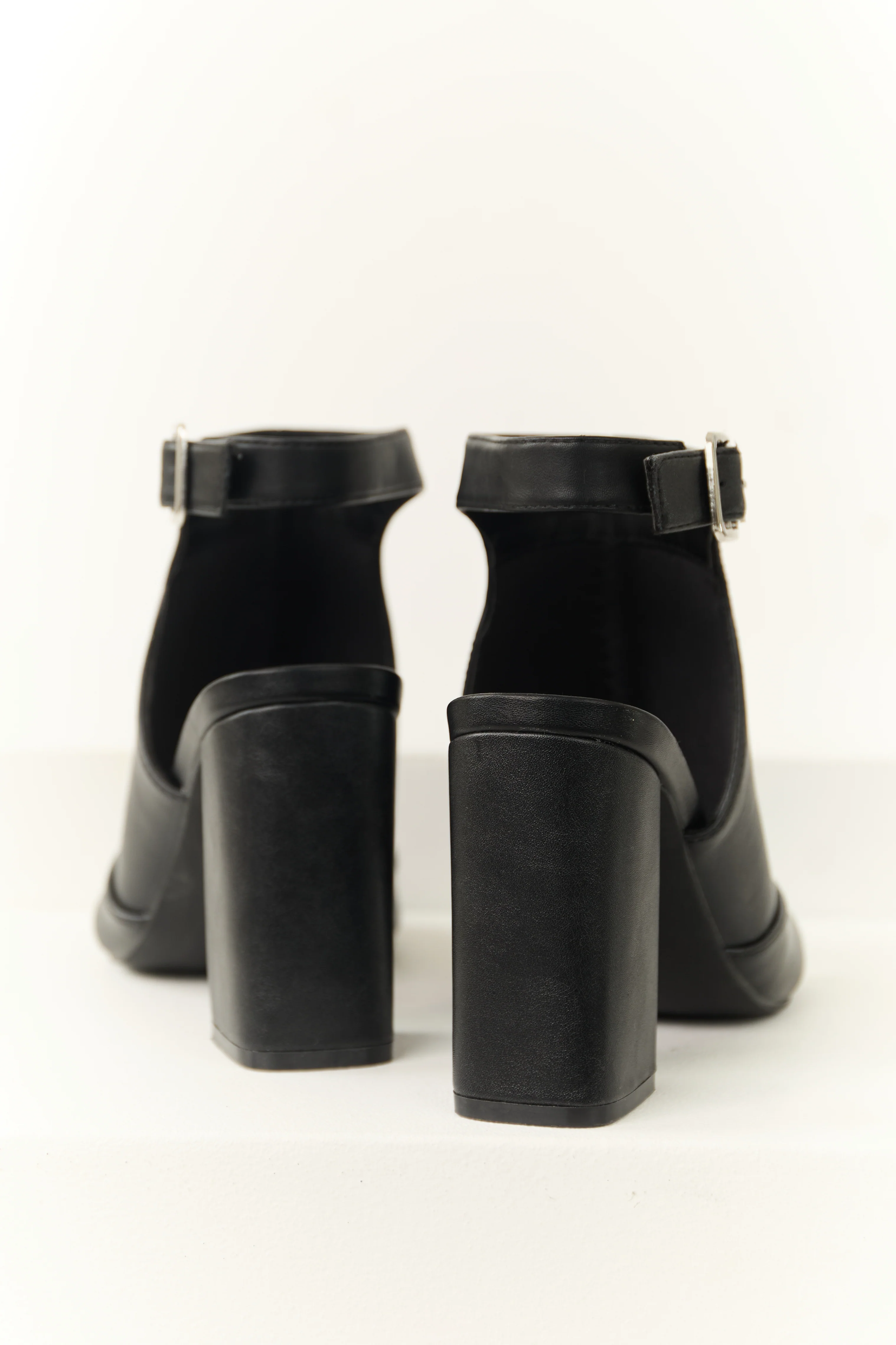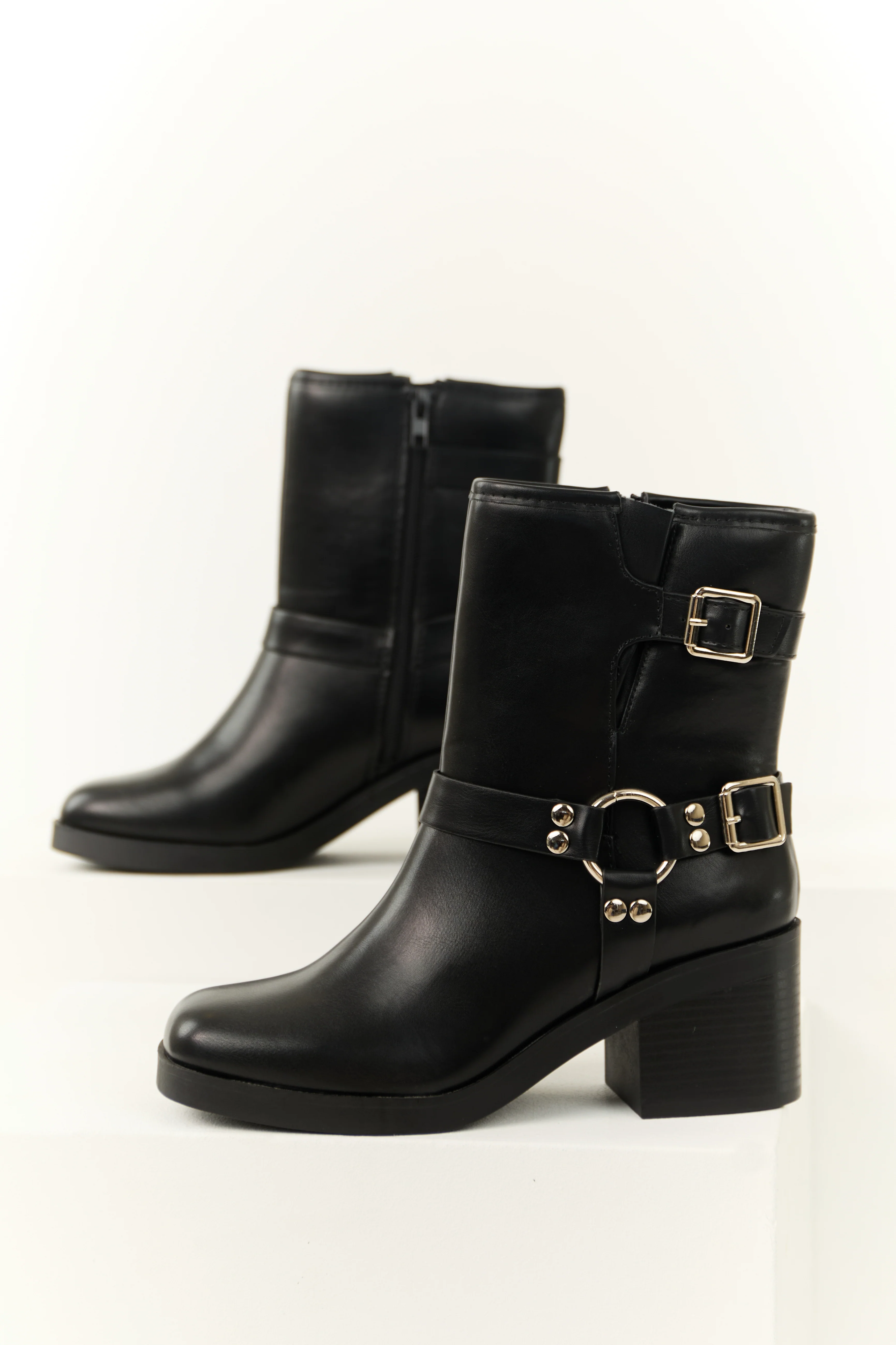 Black Buckle Strap Chunky Heel Booties