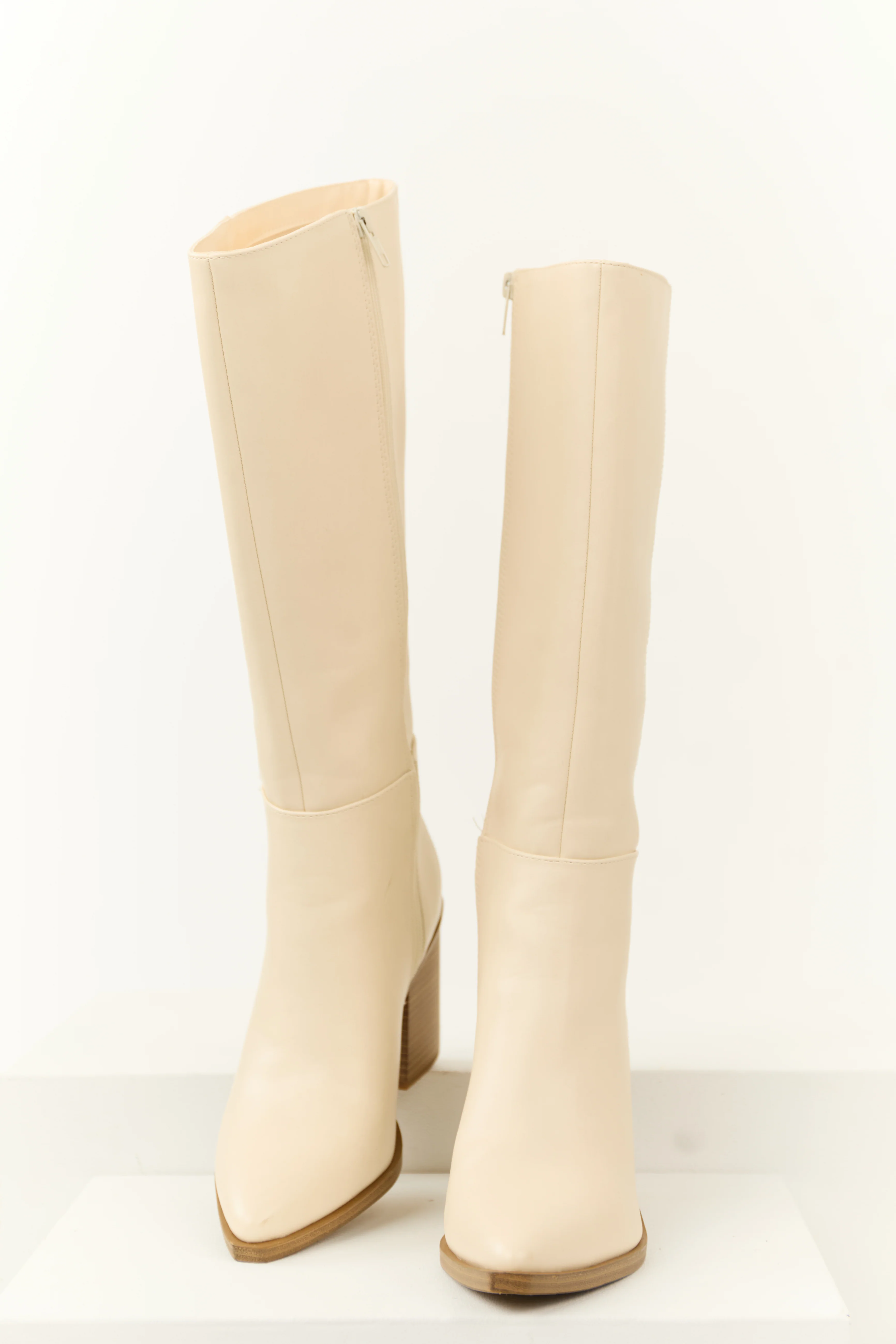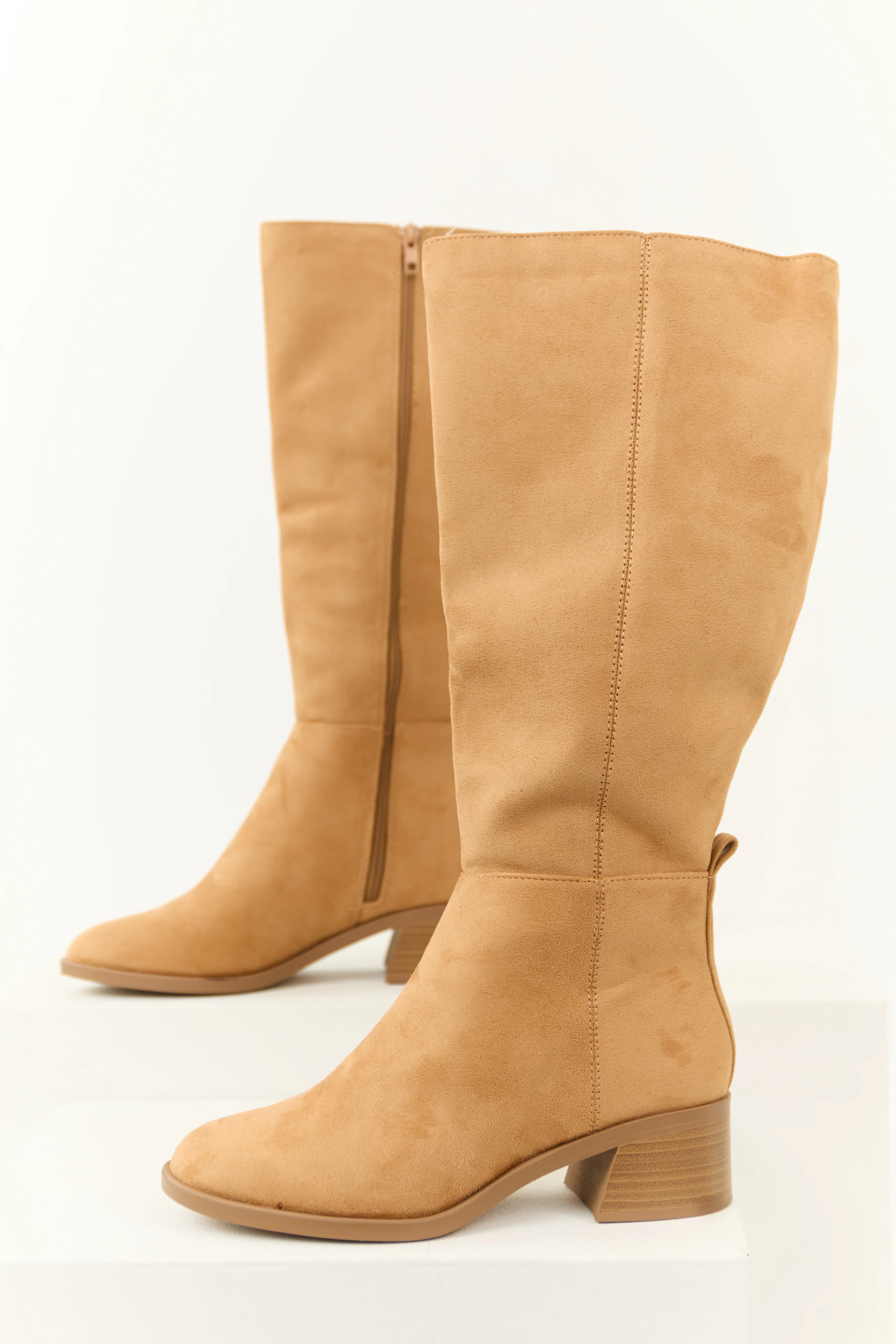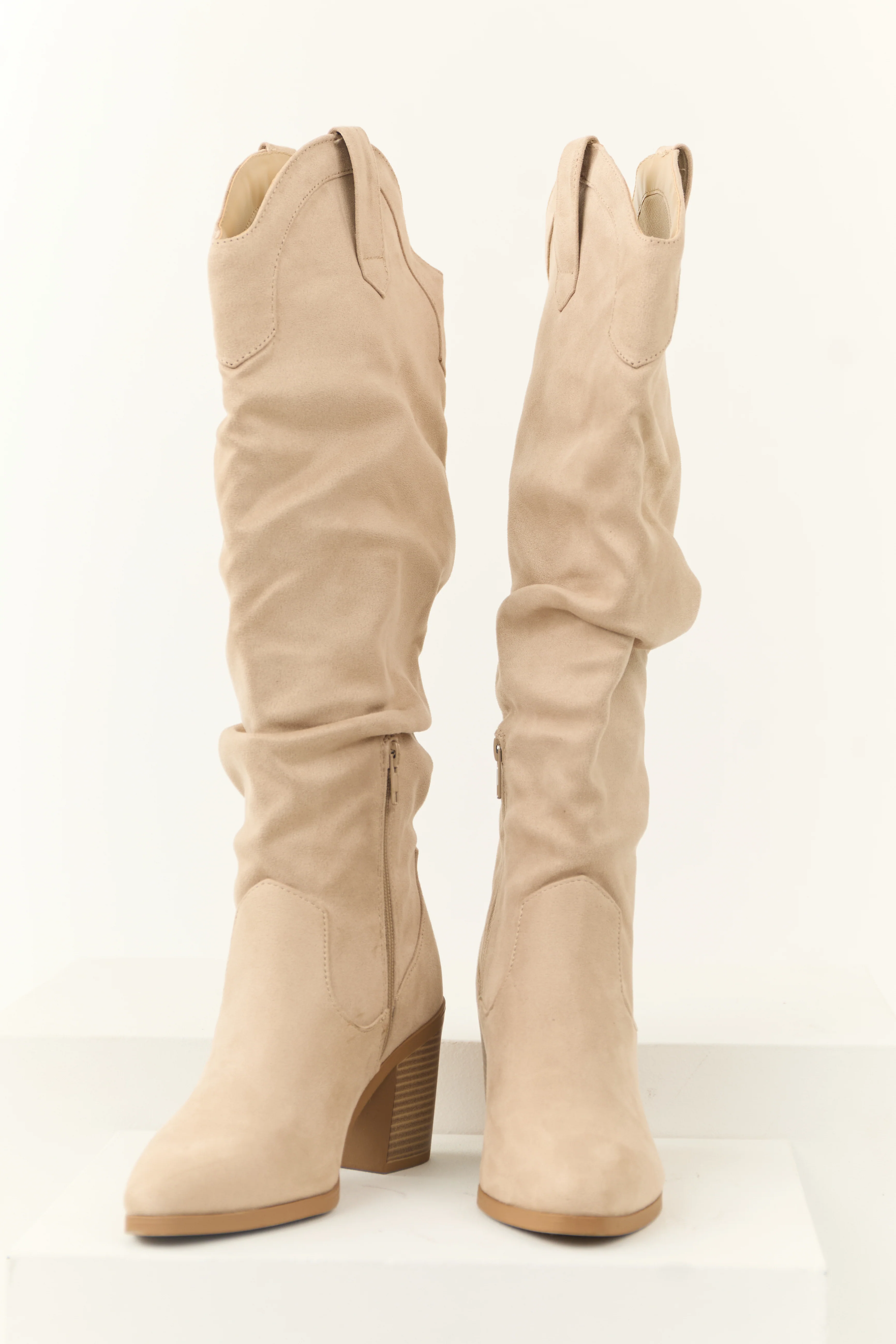 Beige Faux Suede Chunky Heel Tall Boots