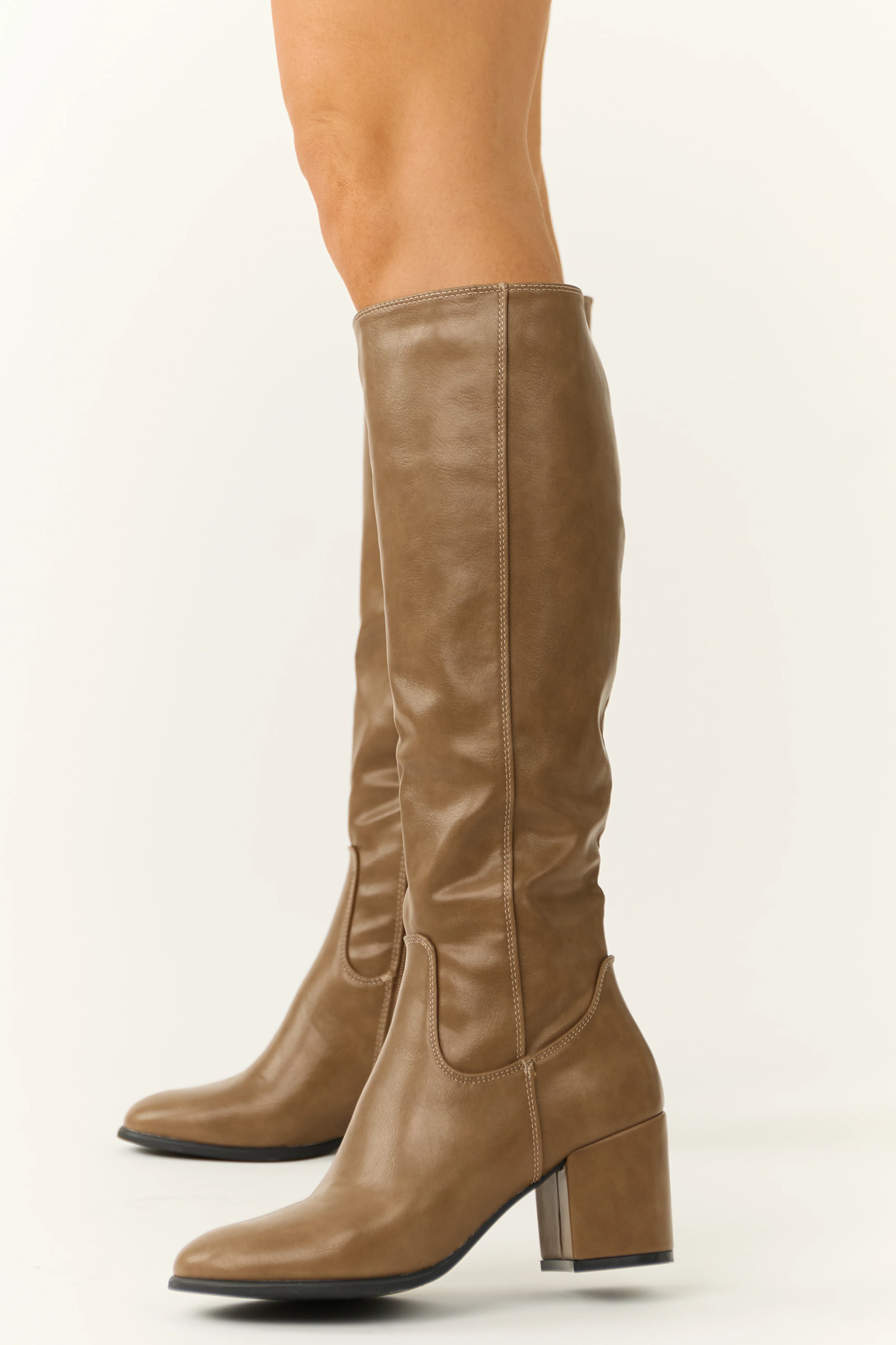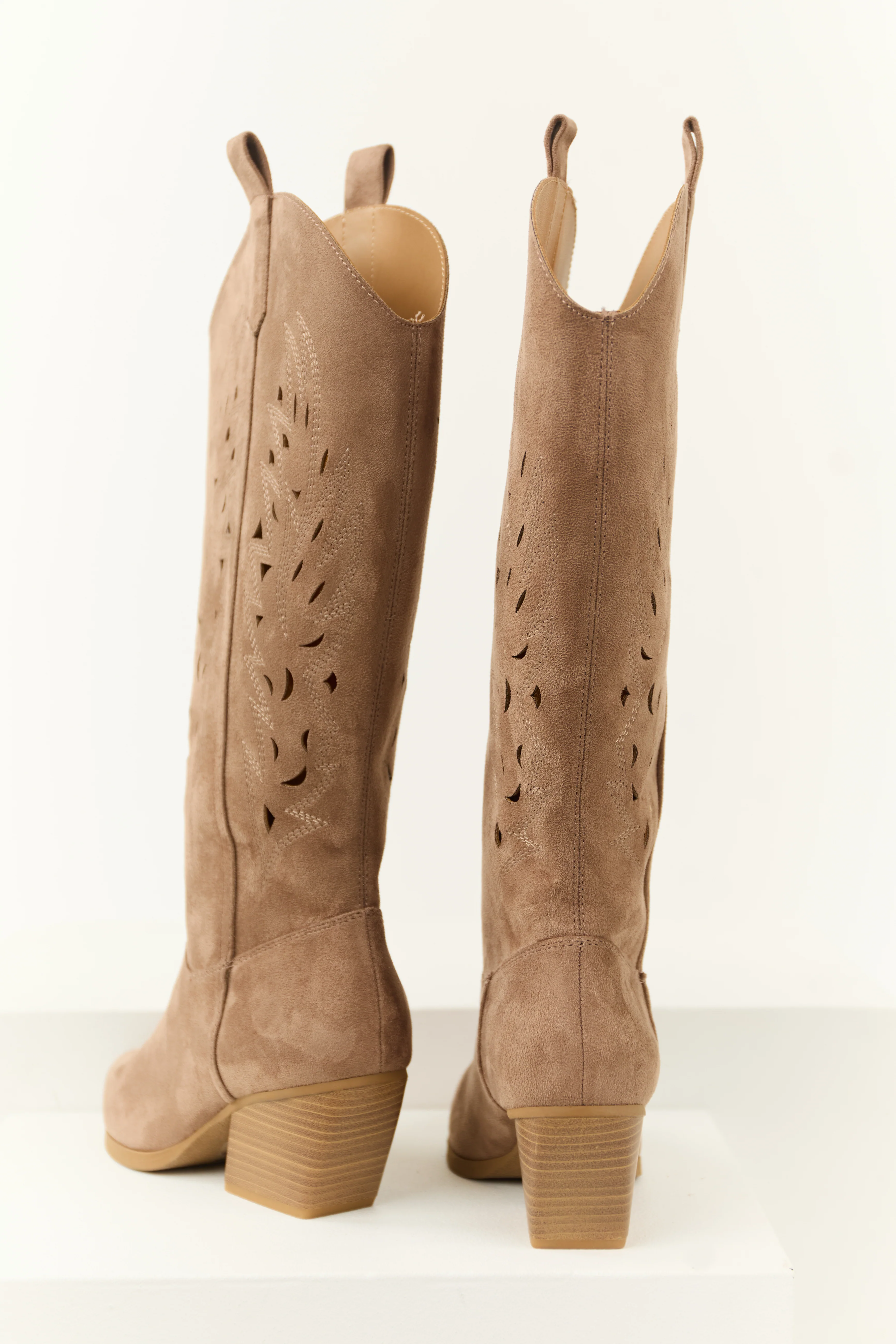Dark Taupe Block Heel Western Cut Out Tall Boot