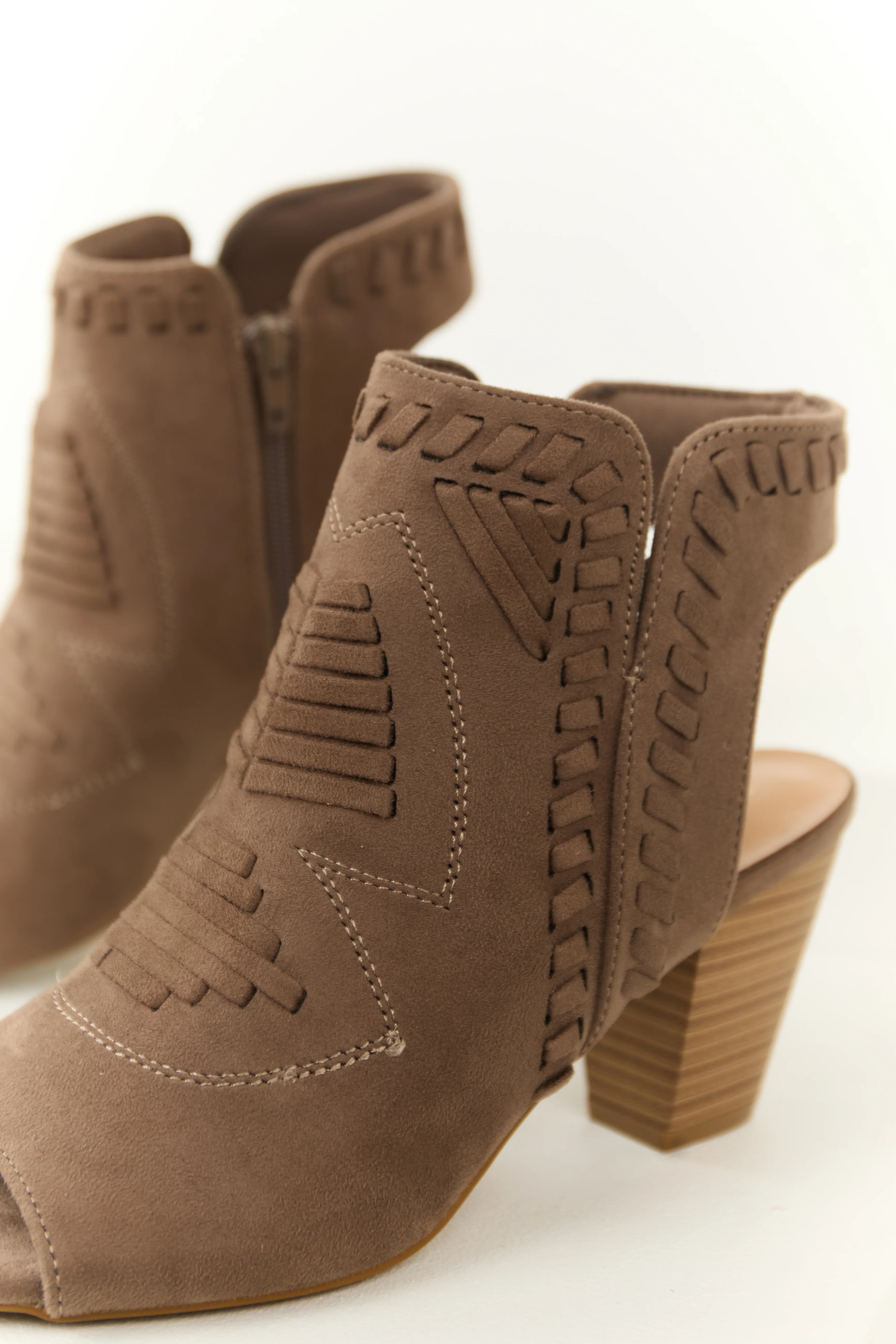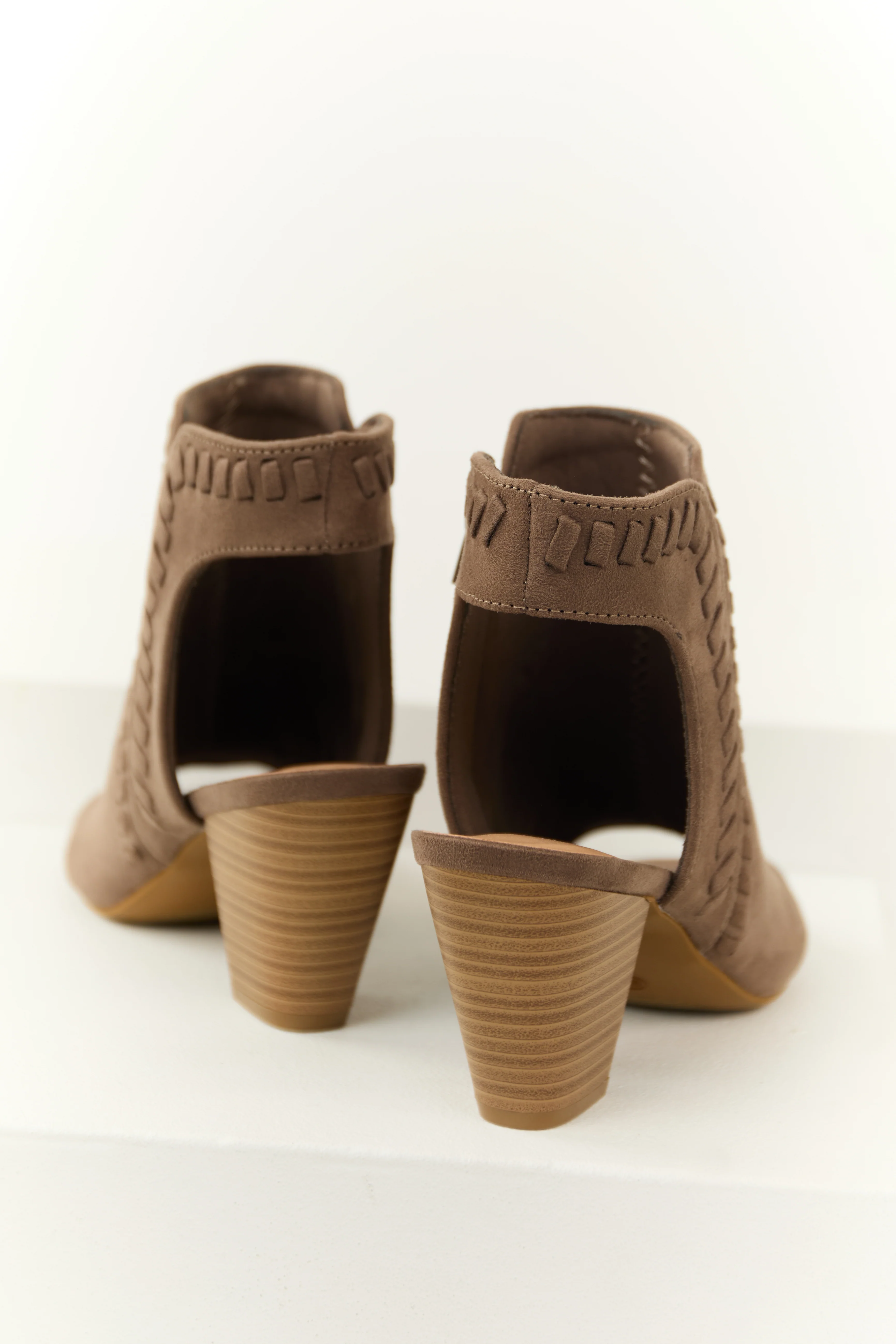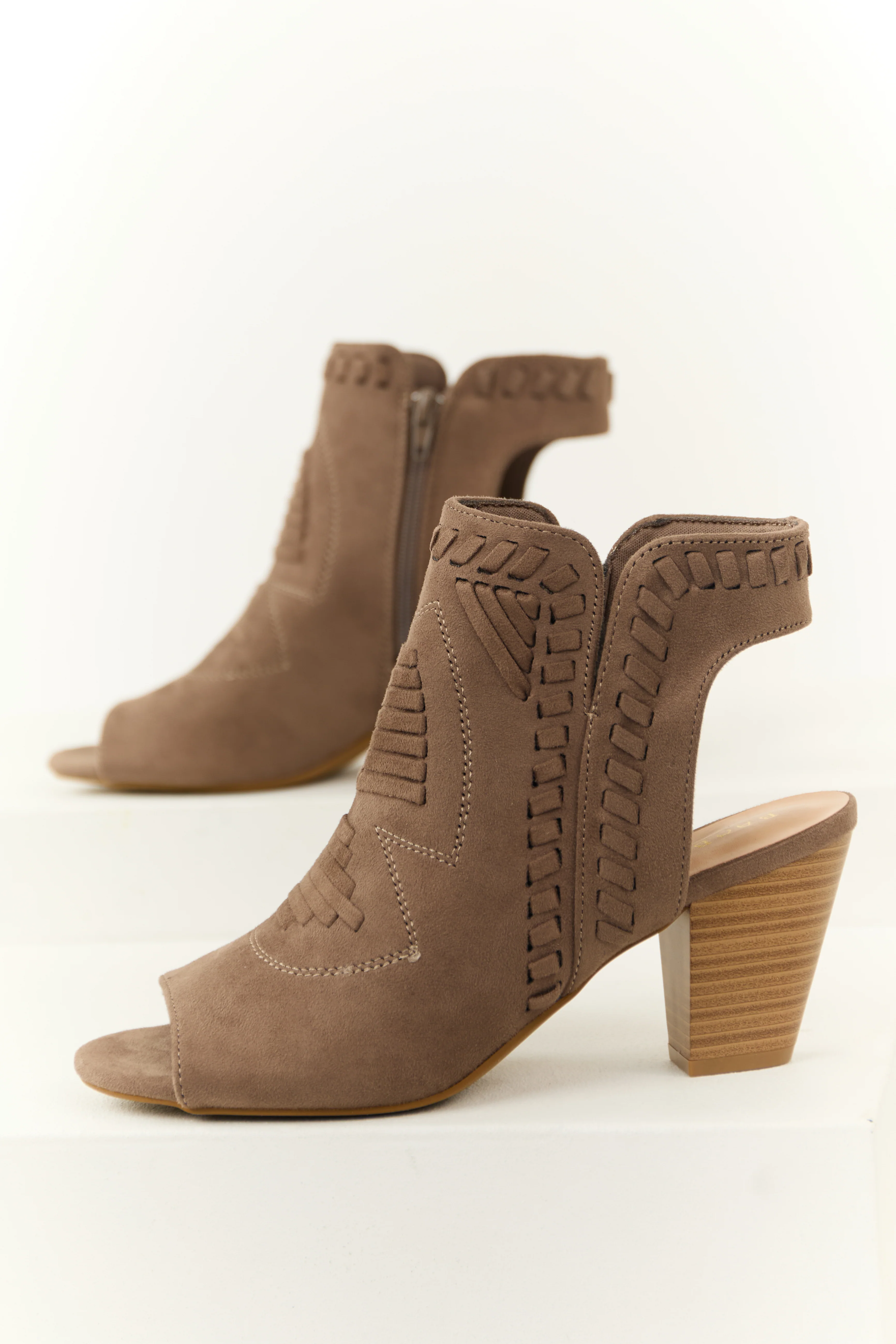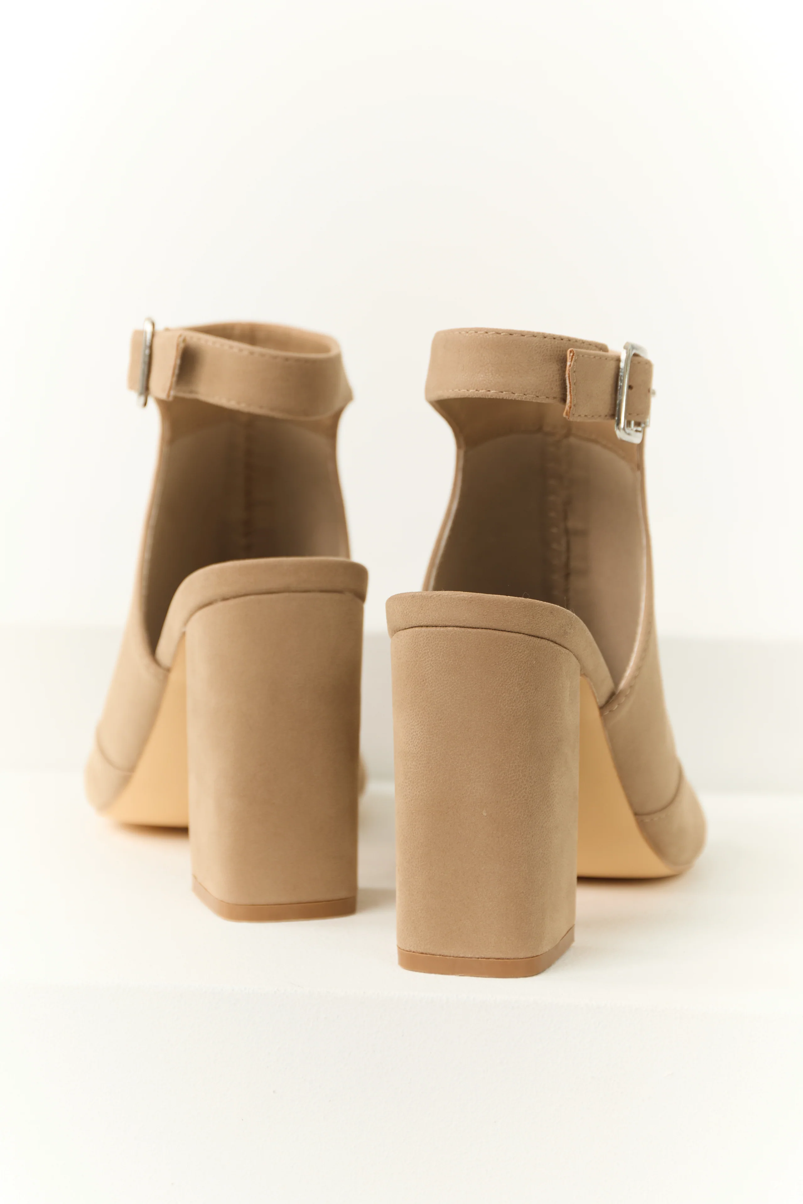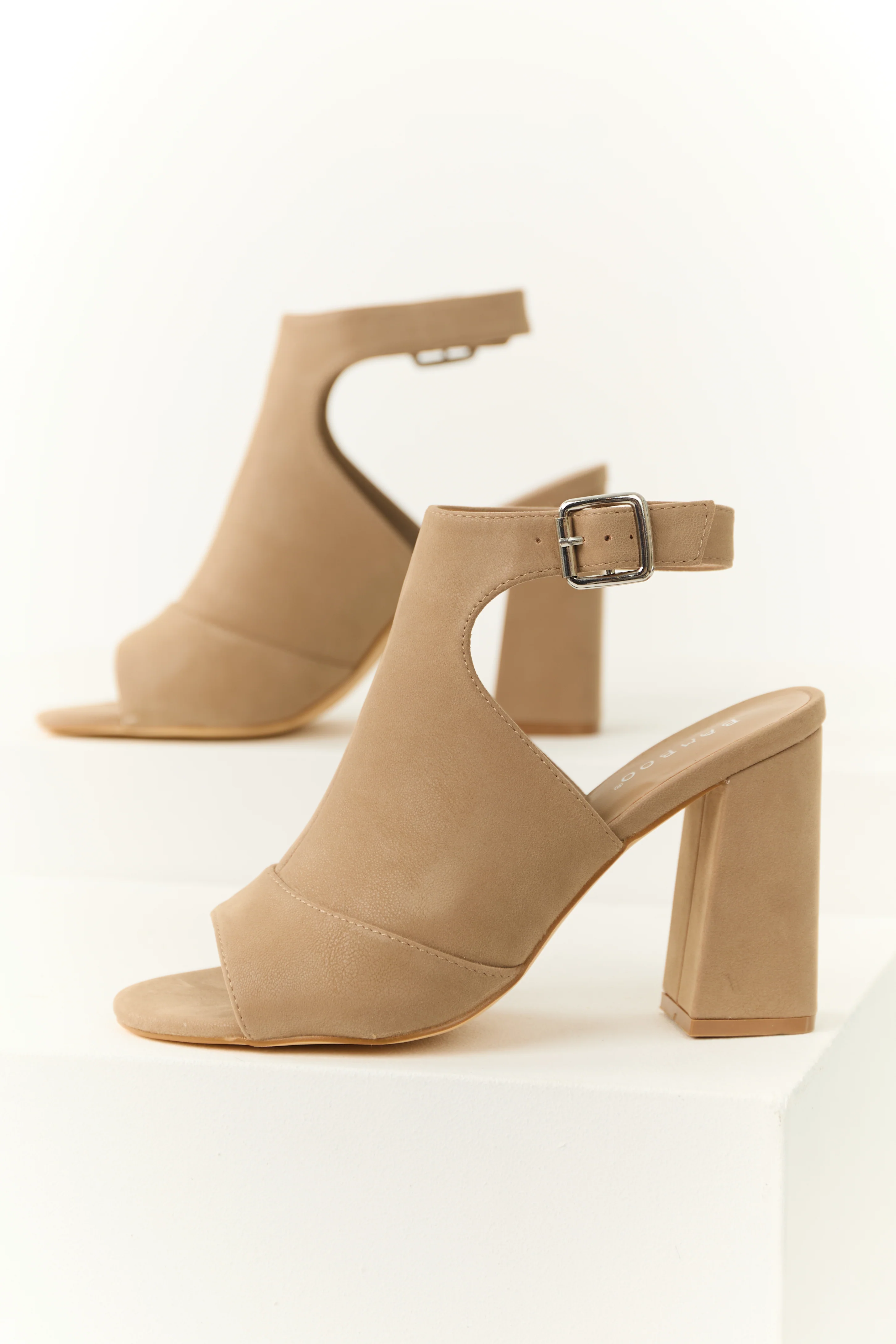 Taupe Faux Suede Open Toe Ankle Heels