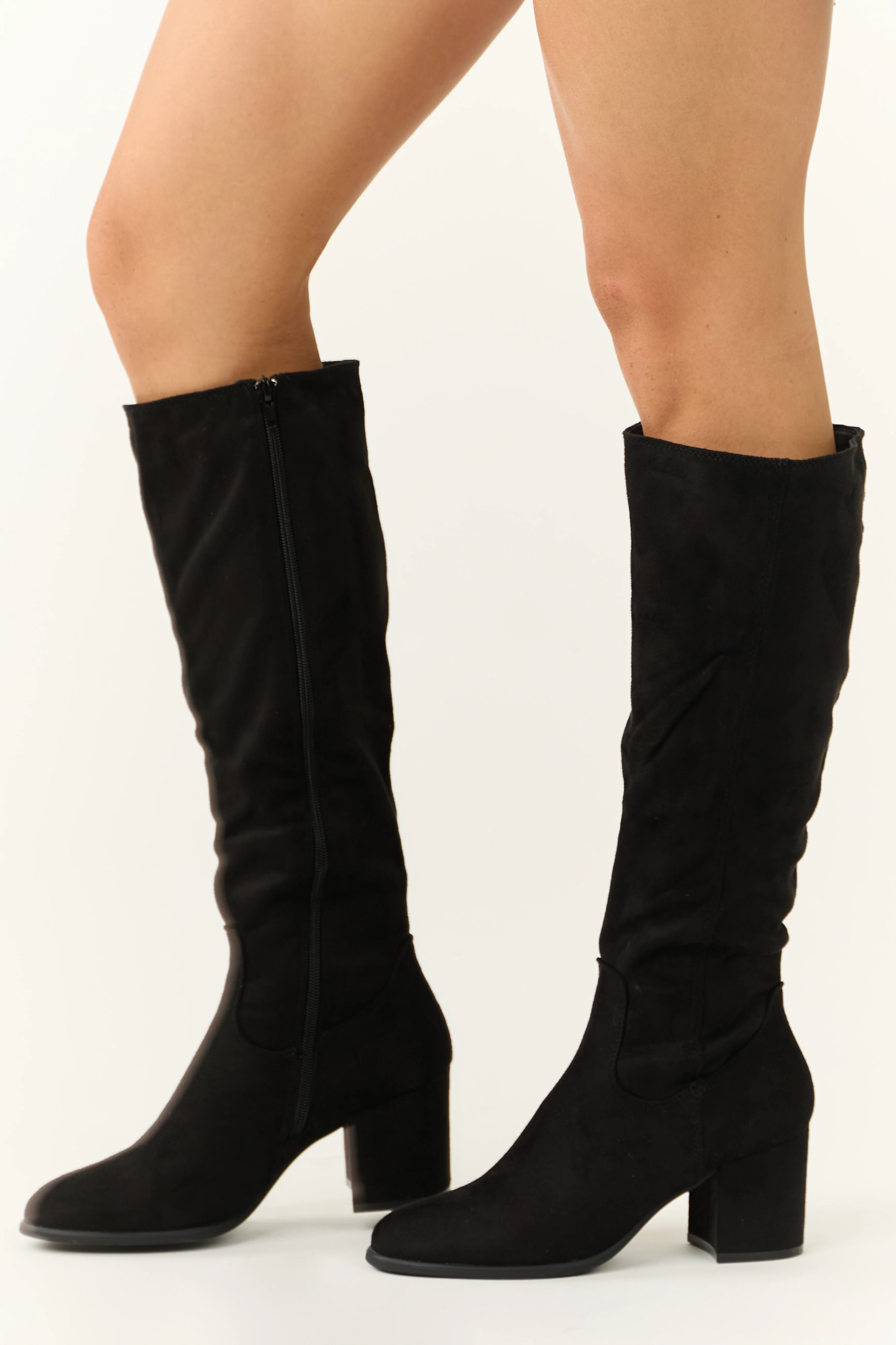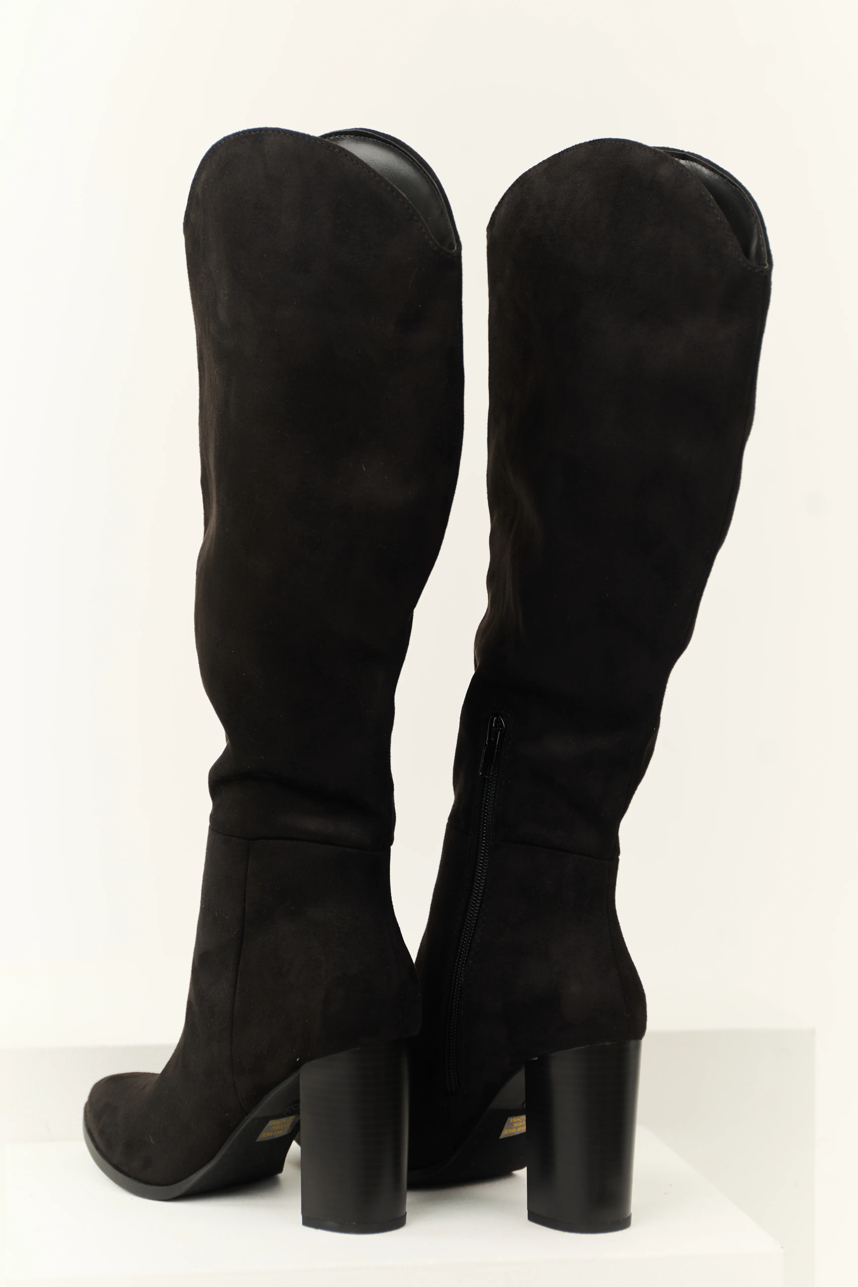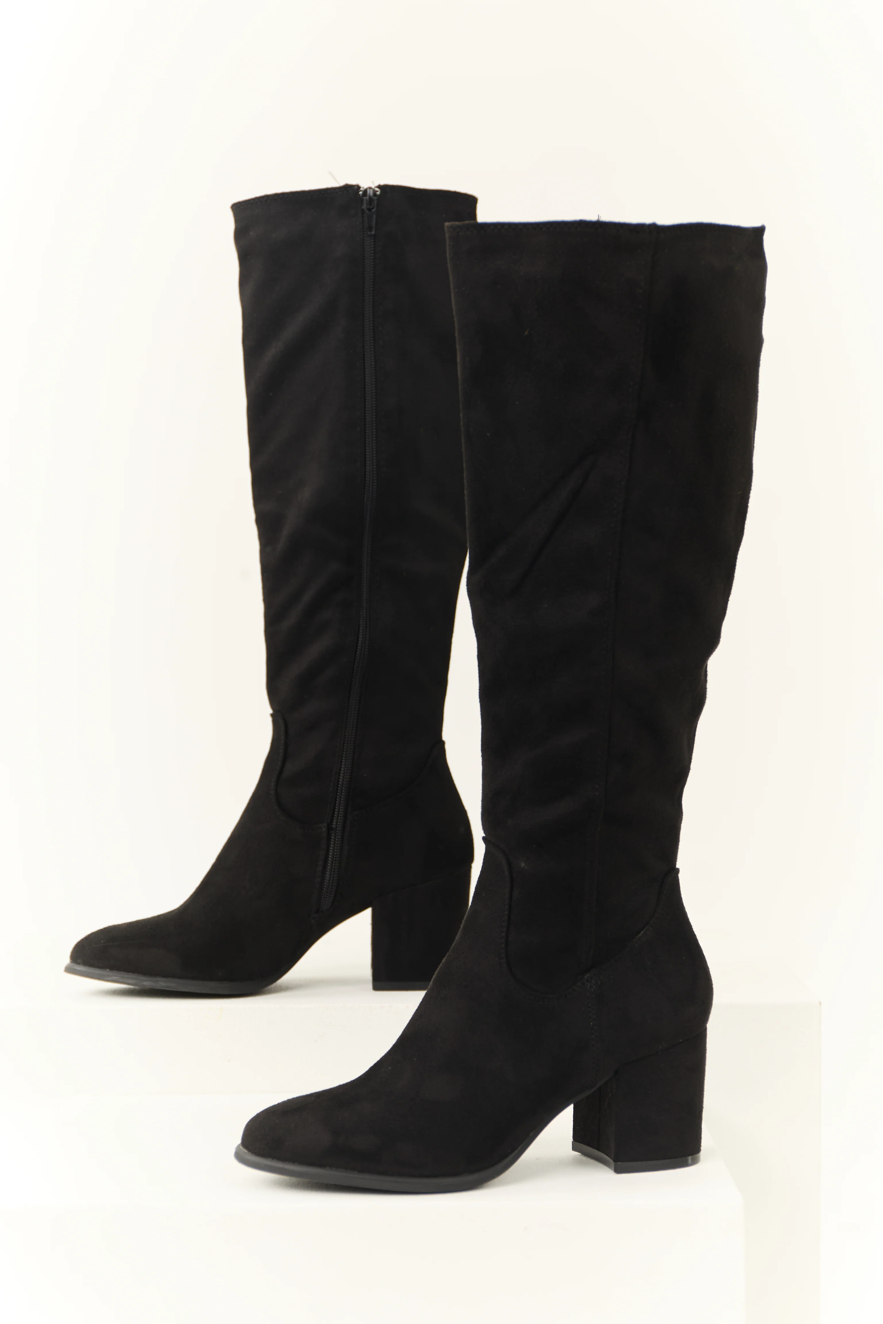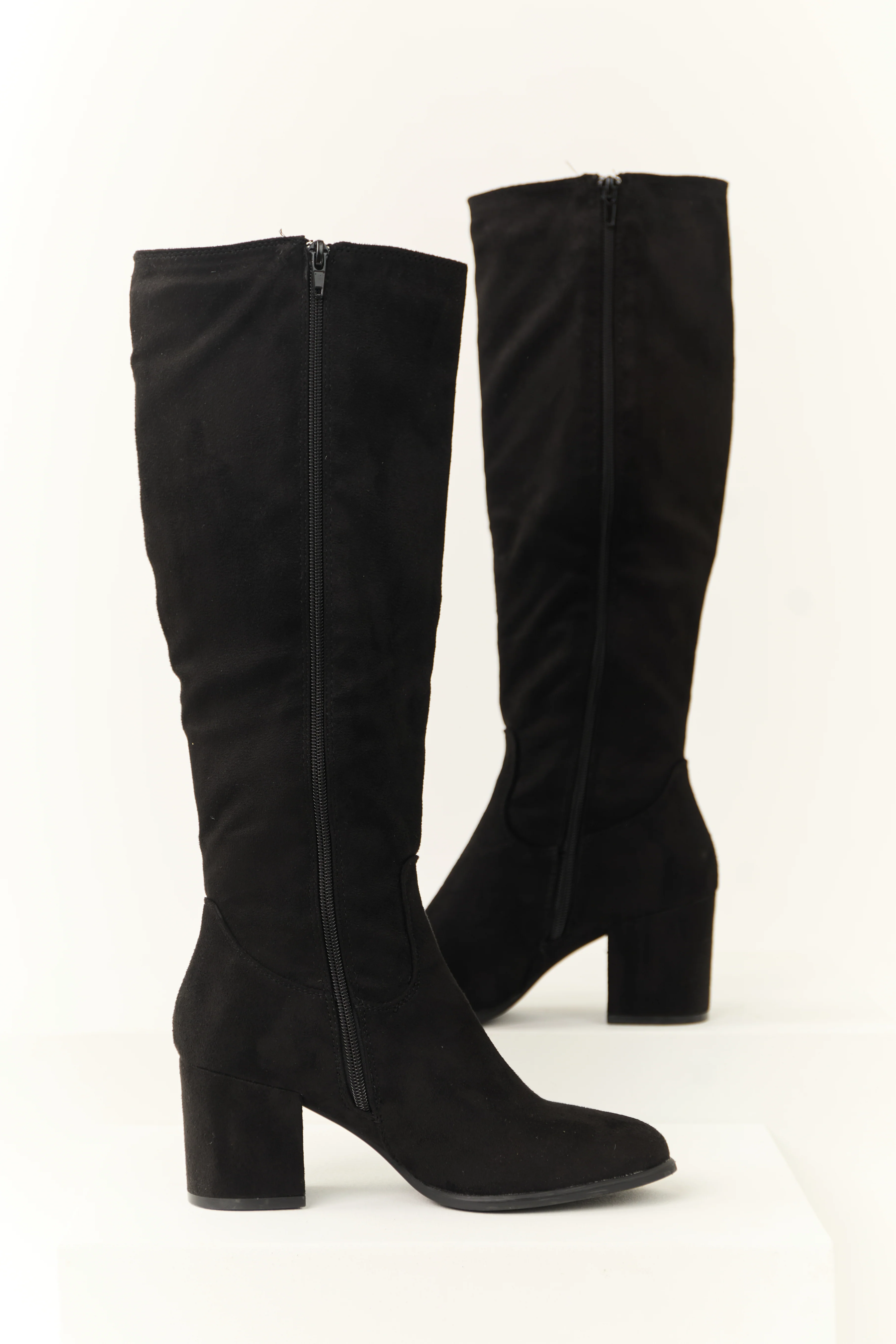 Black Faux Suede Block Heel Tall Boots