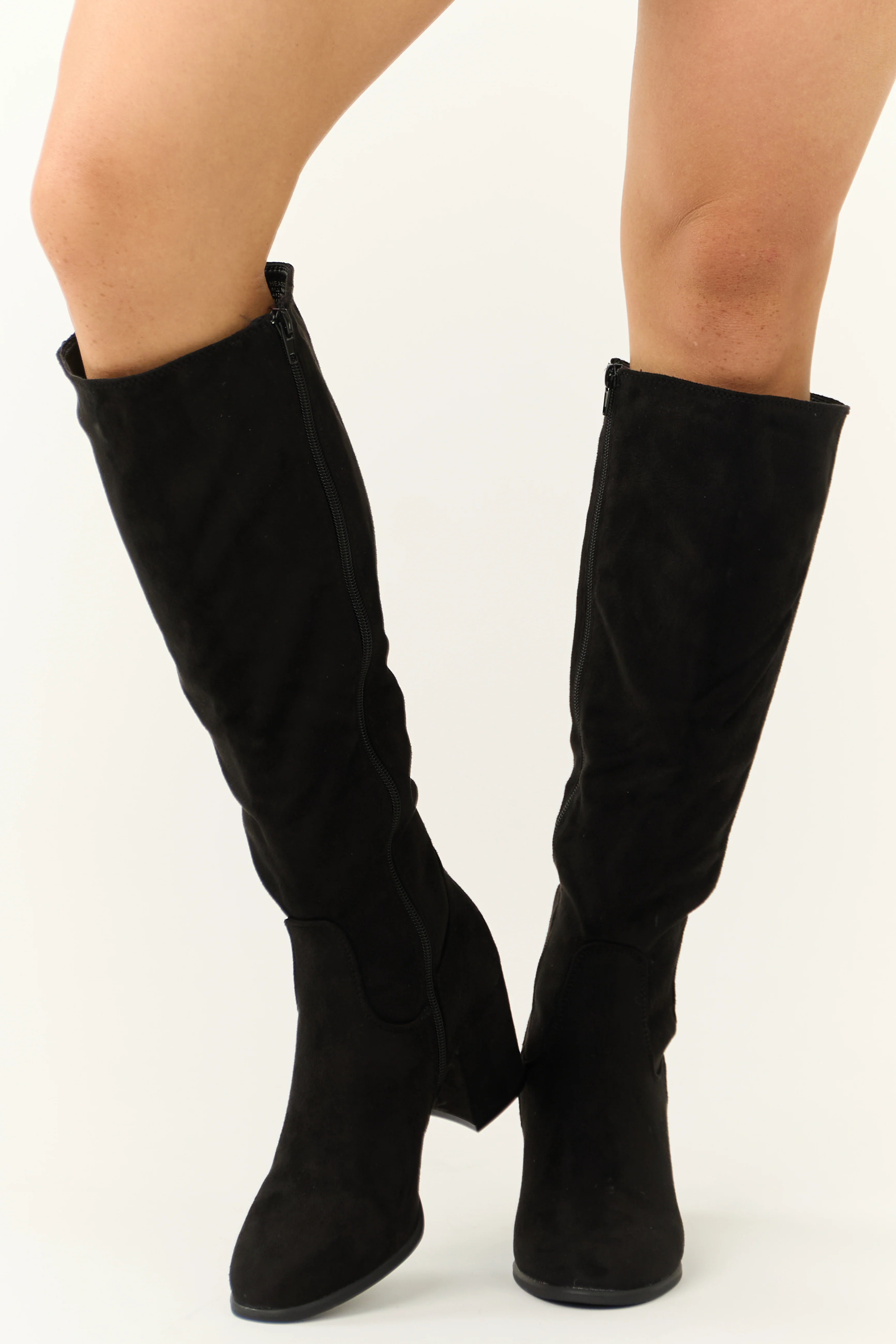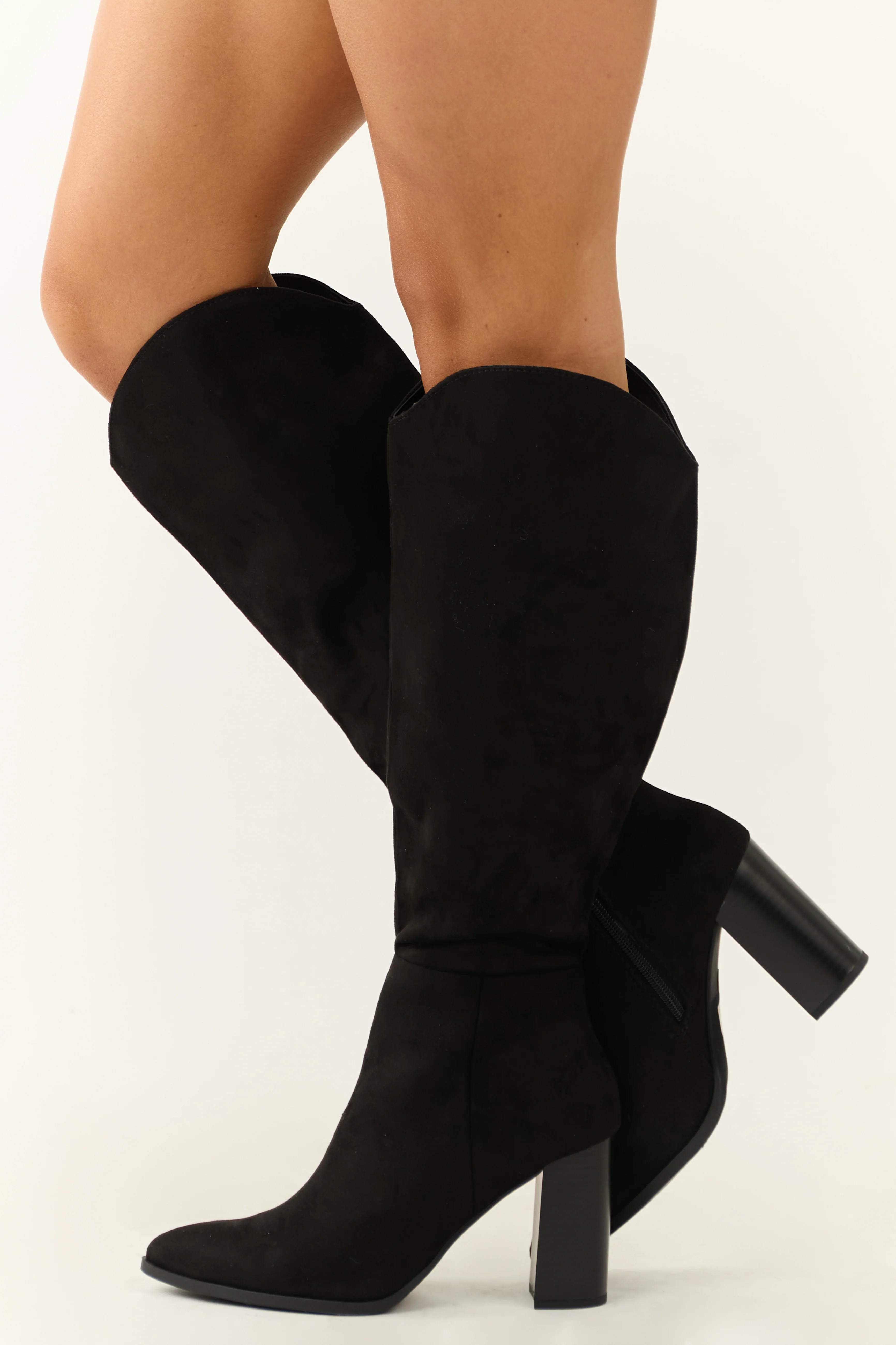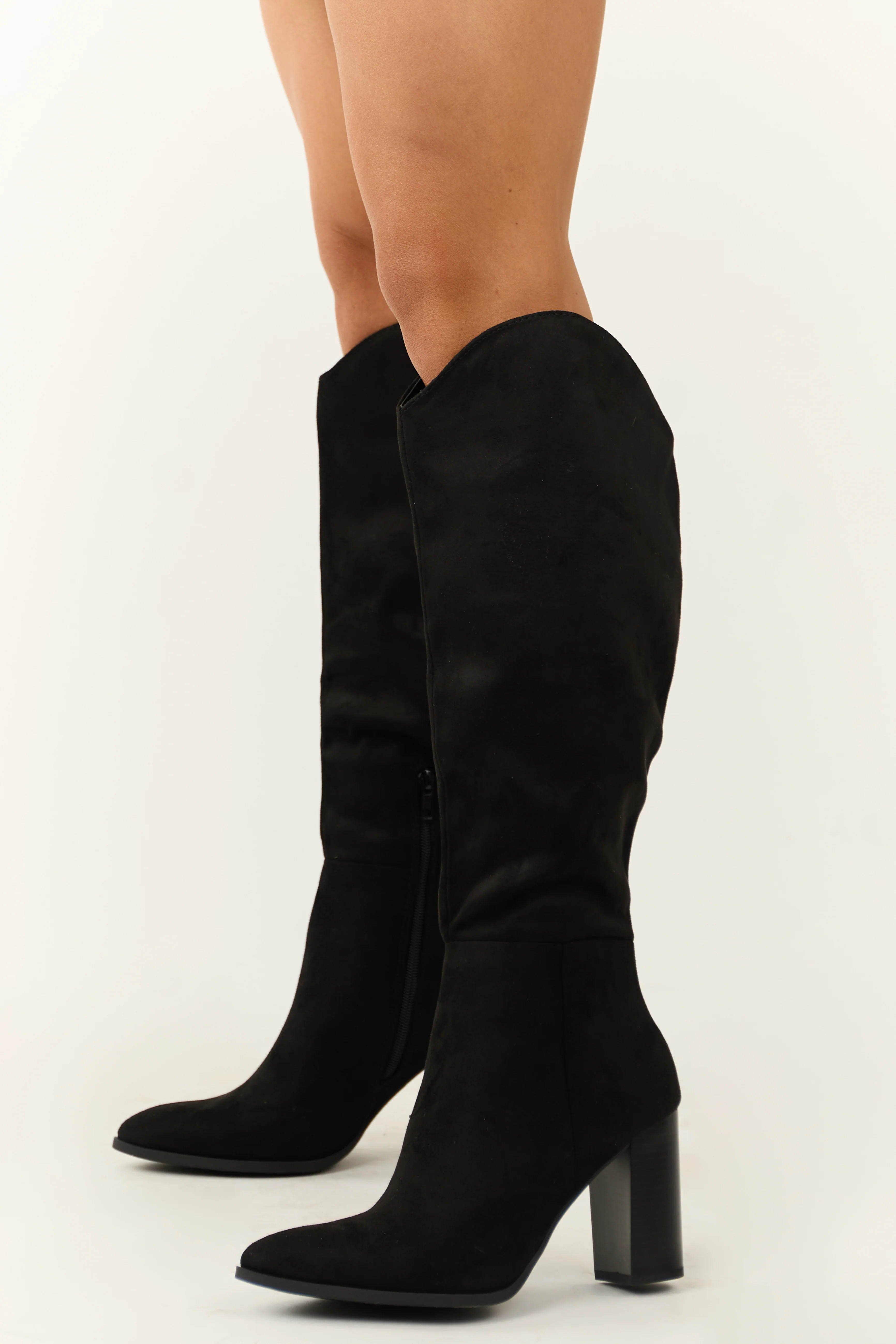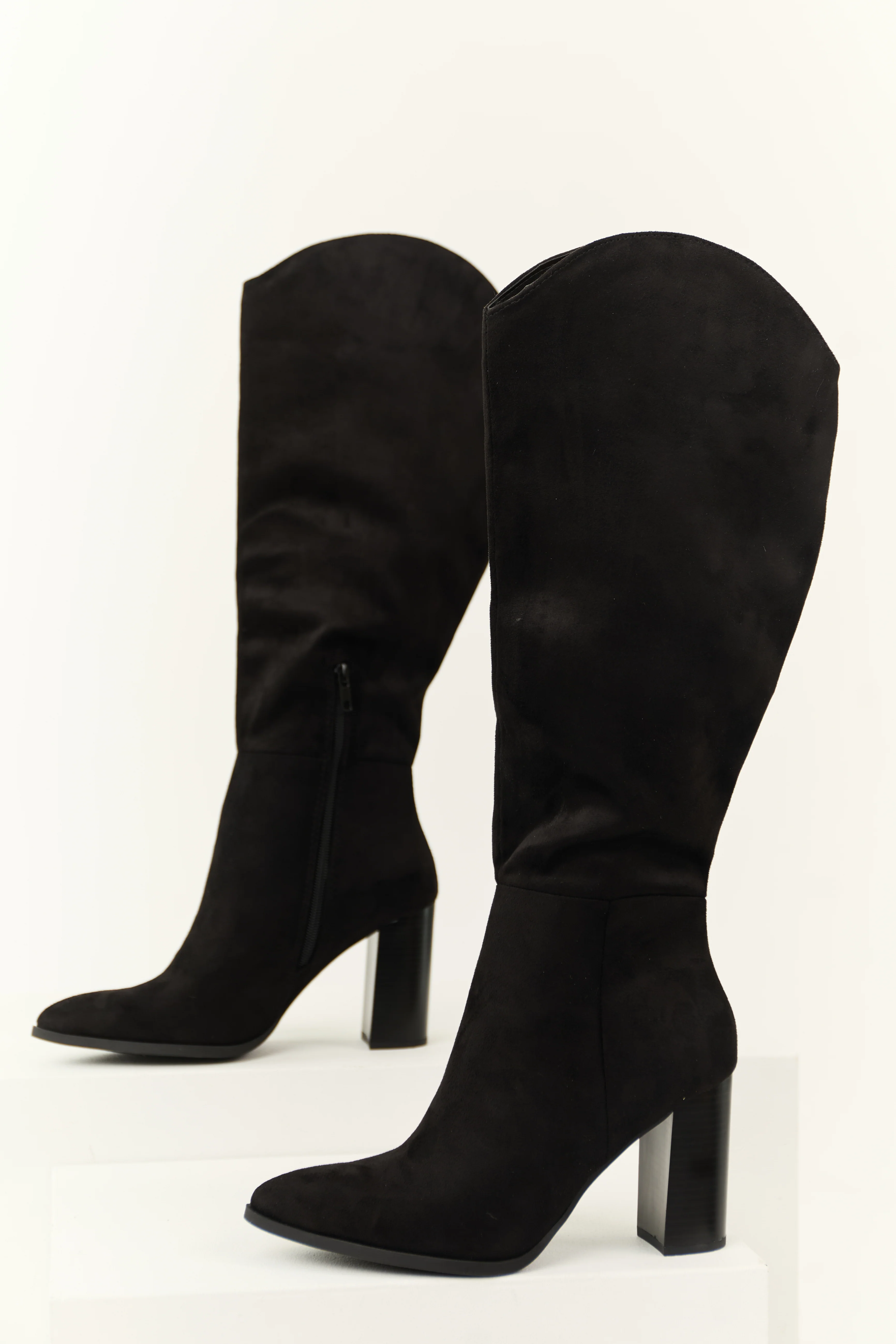 Black Faux Suede Block Heel Tall Boots