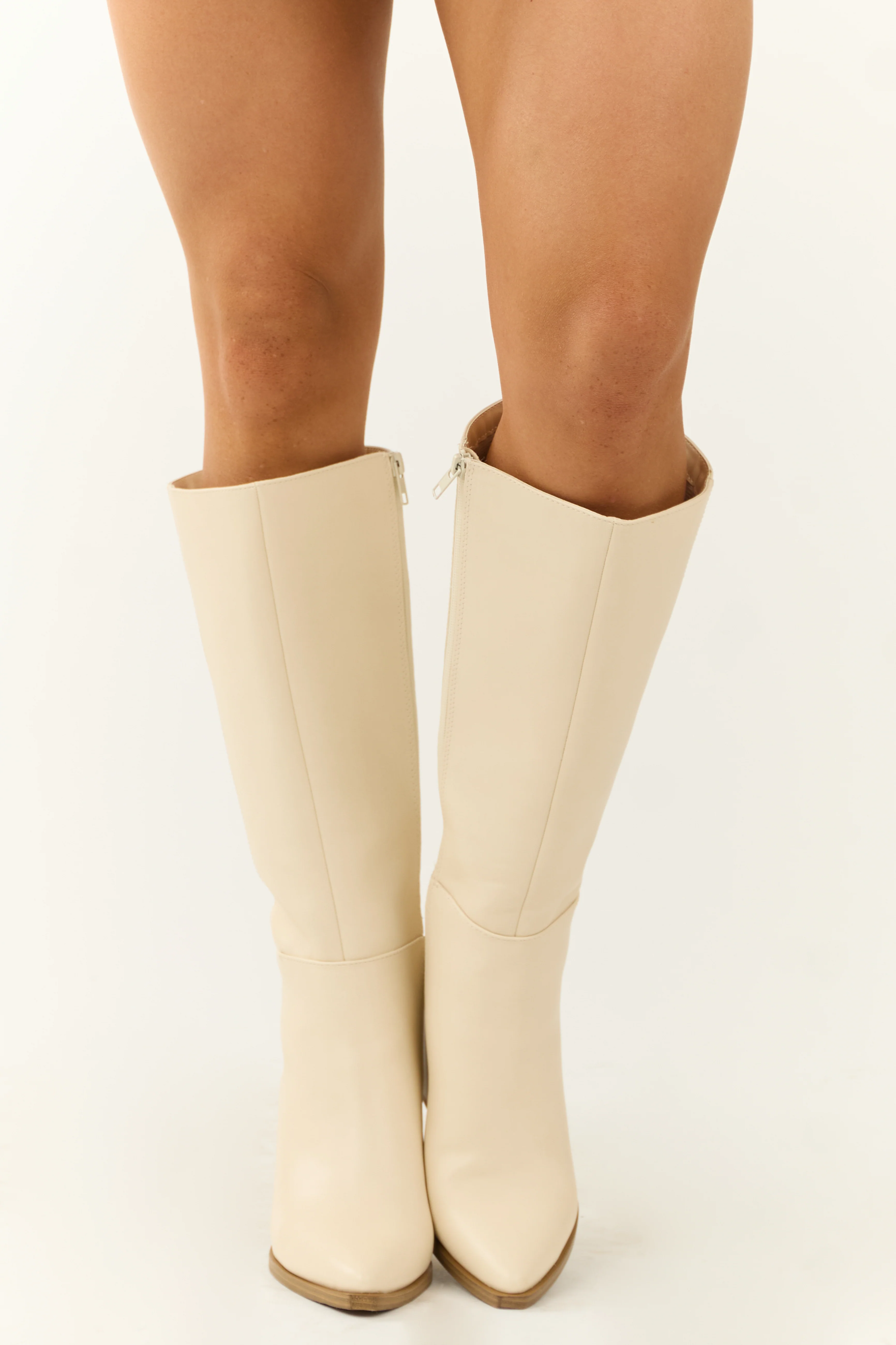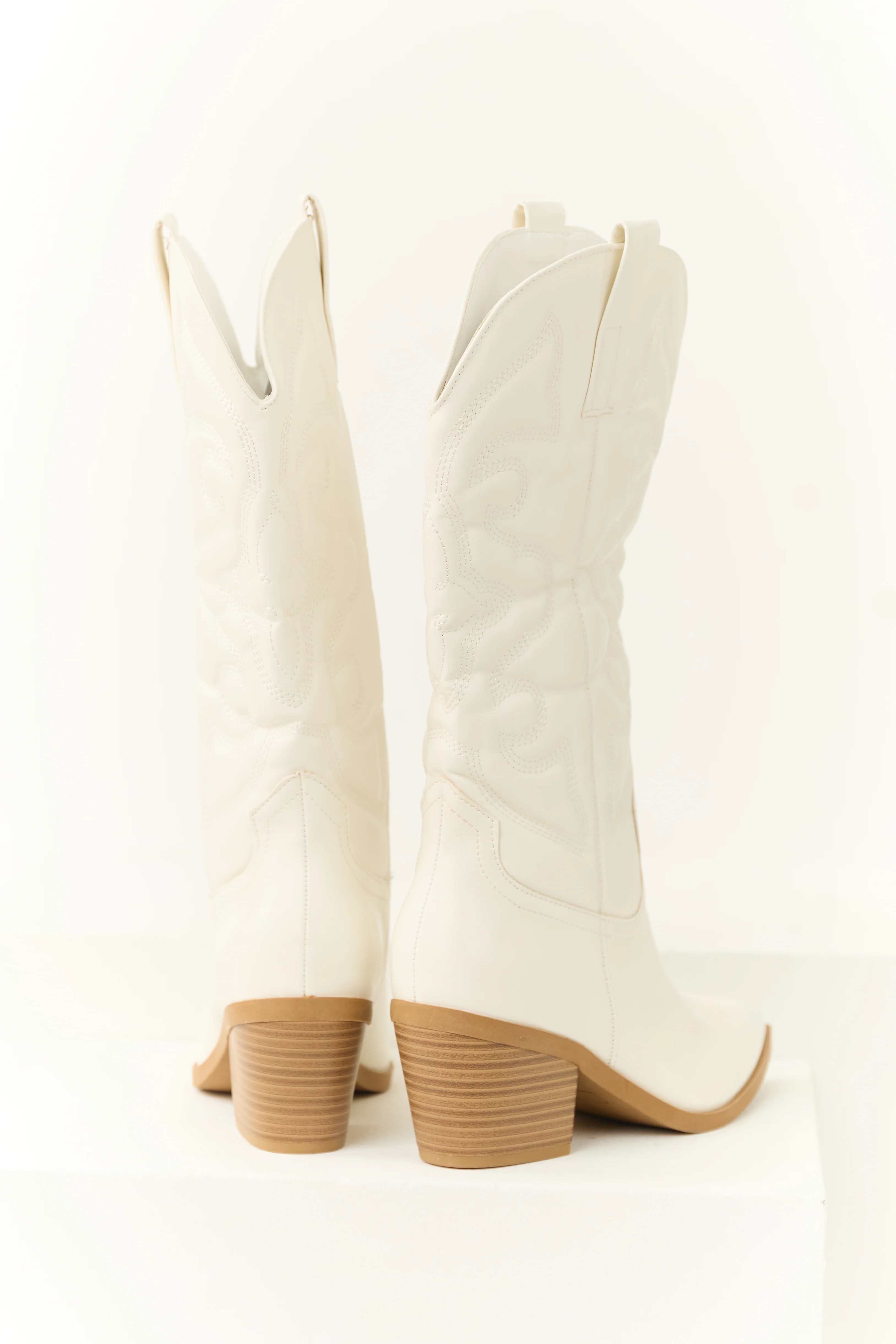Ivory Faux Leather Pointed Toe Western Boots