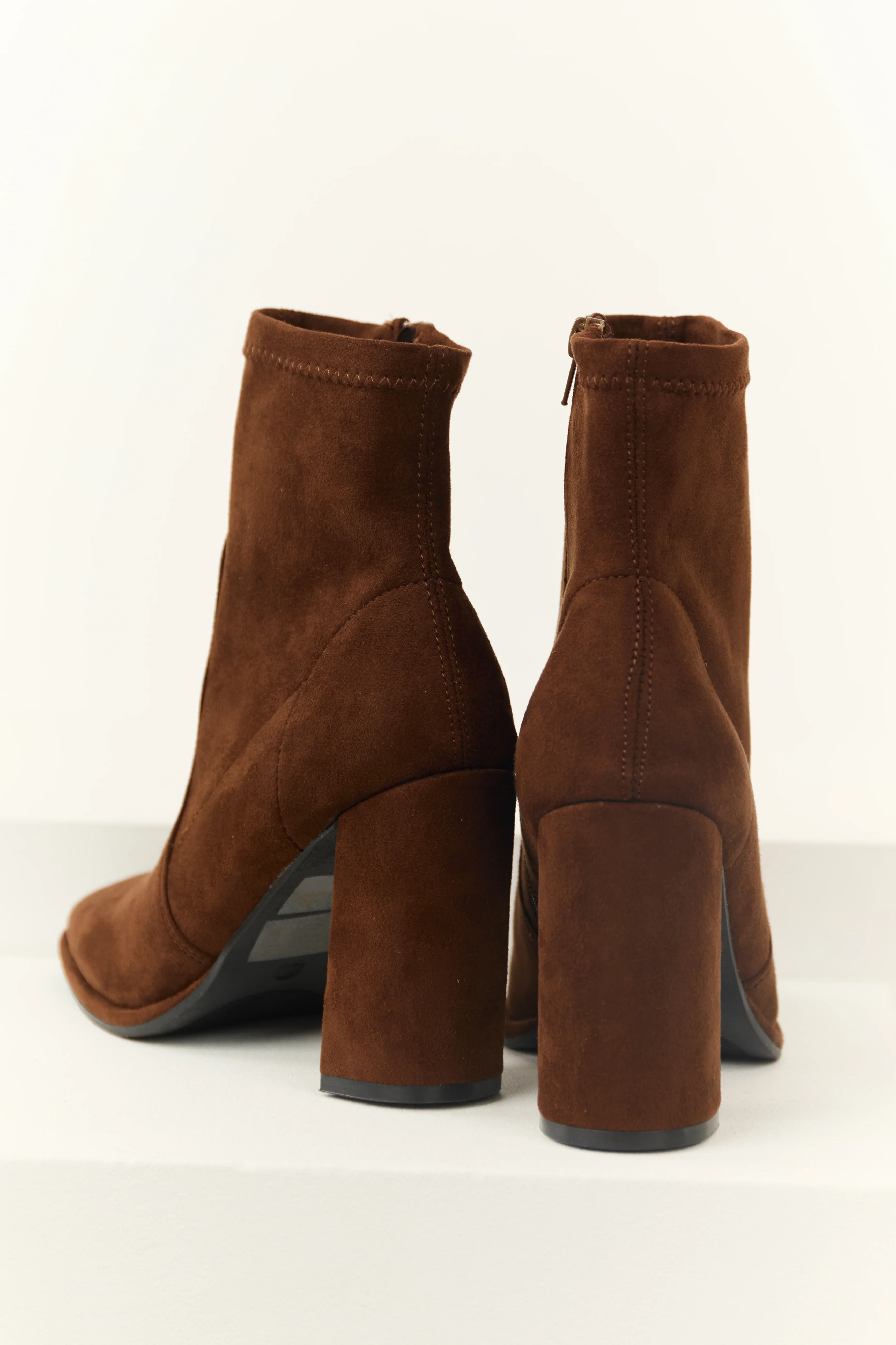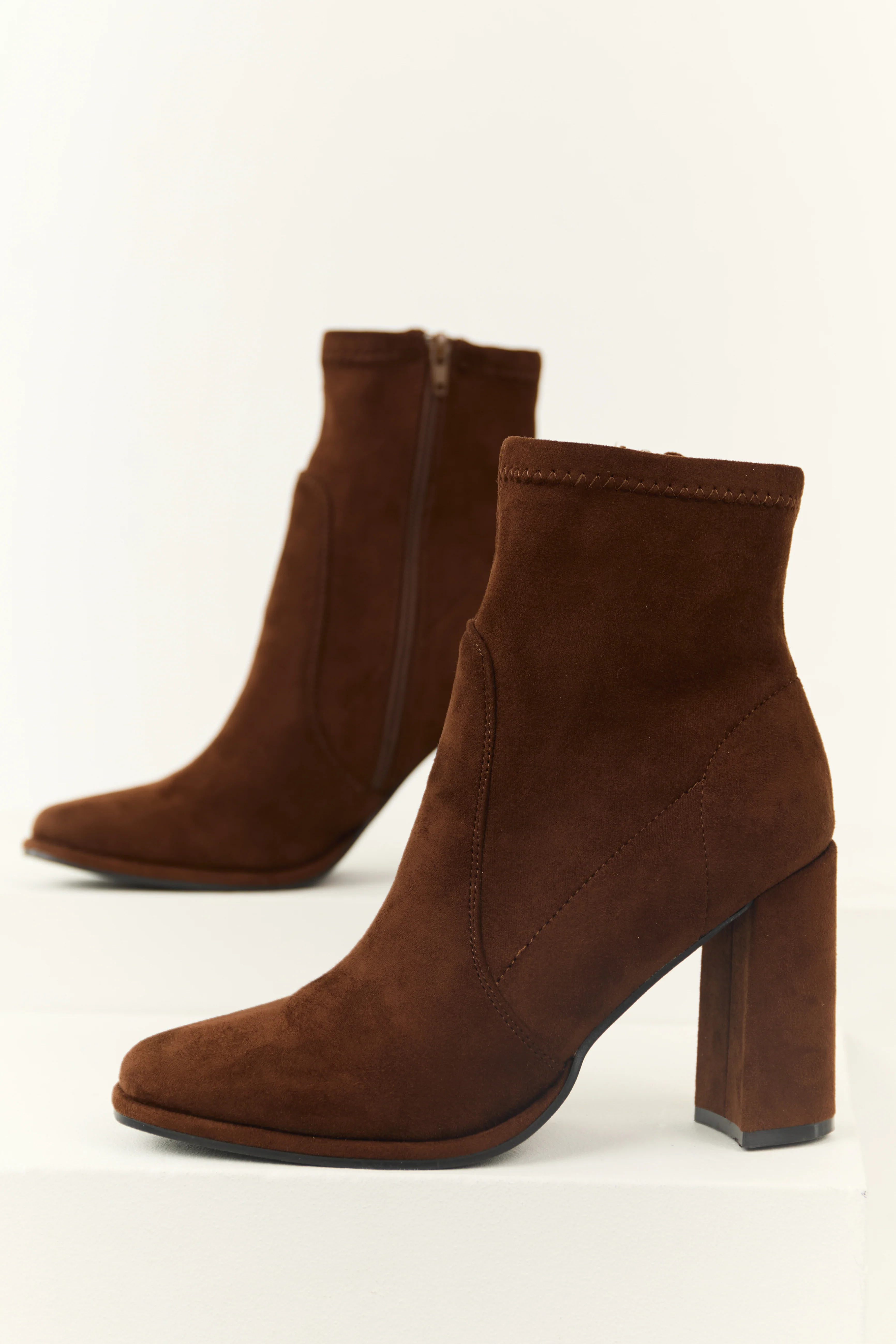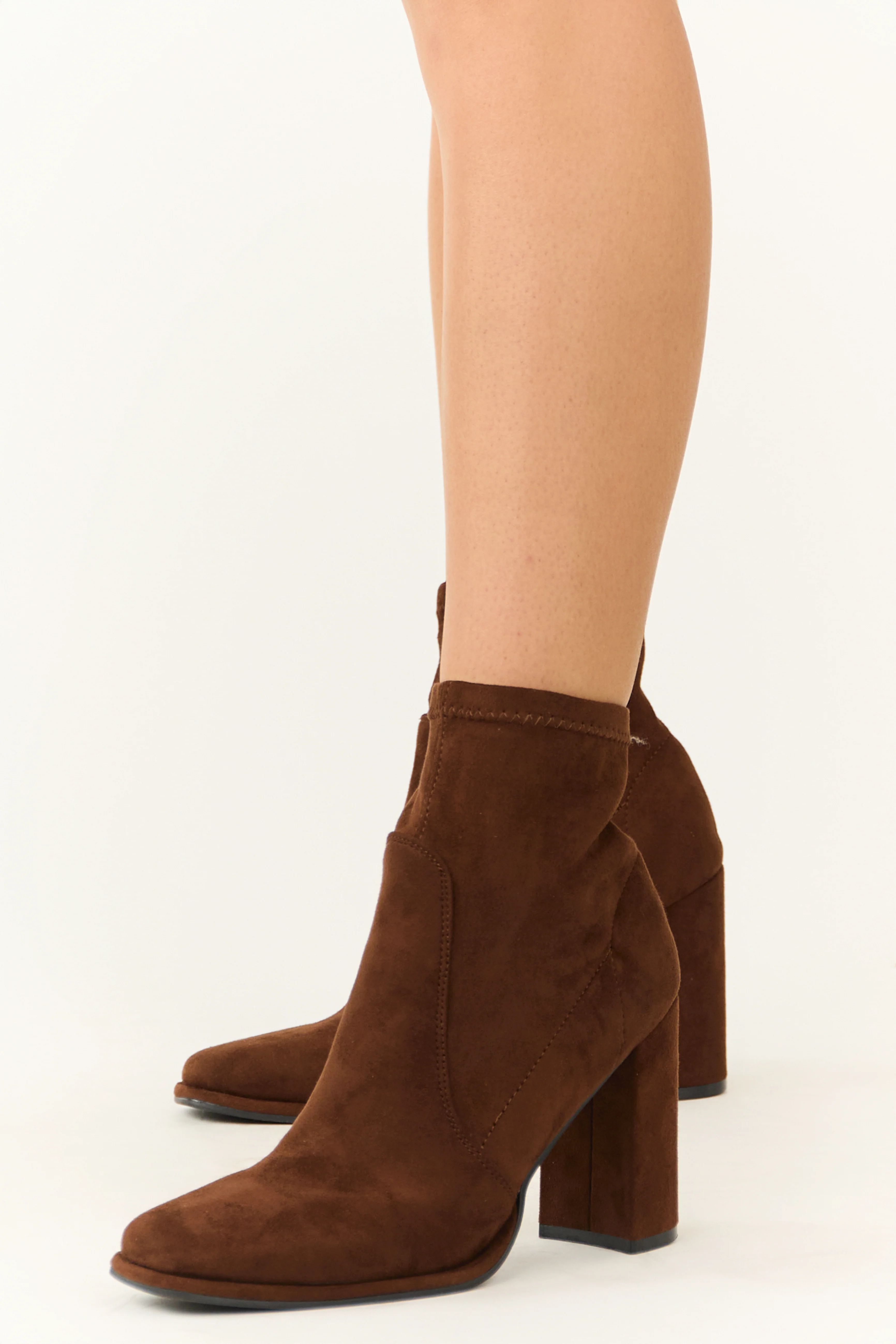 Cocoa Chunky Square Heel Faux Suede Booties