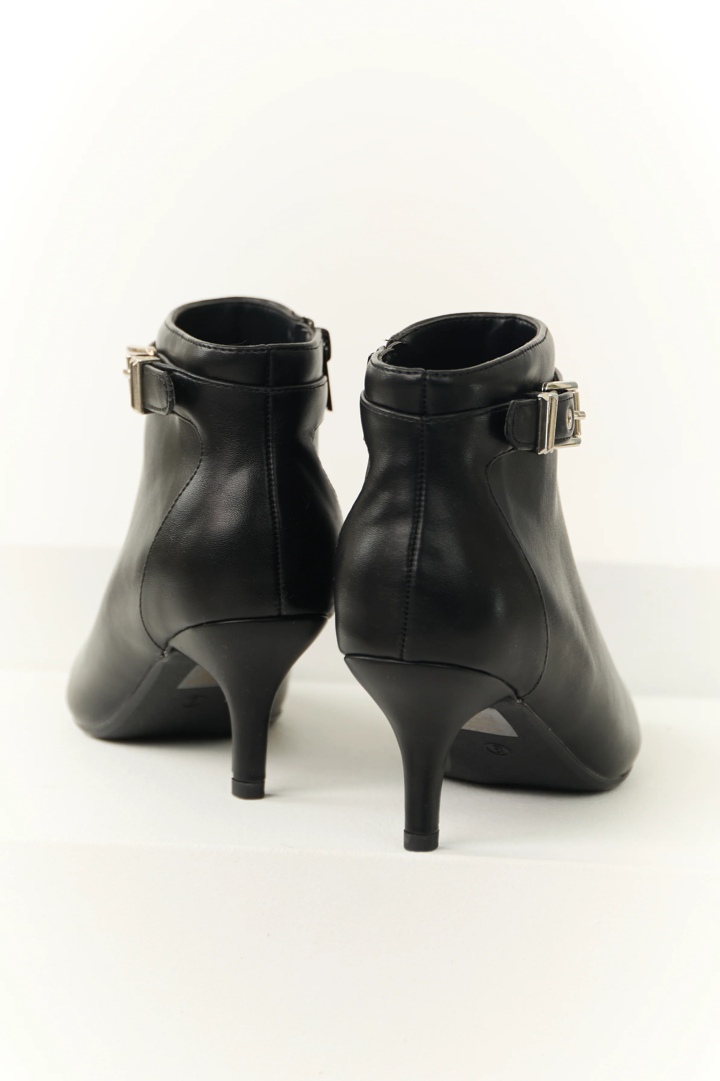 Black Stiletto Ankle Booties with Silver Buckle