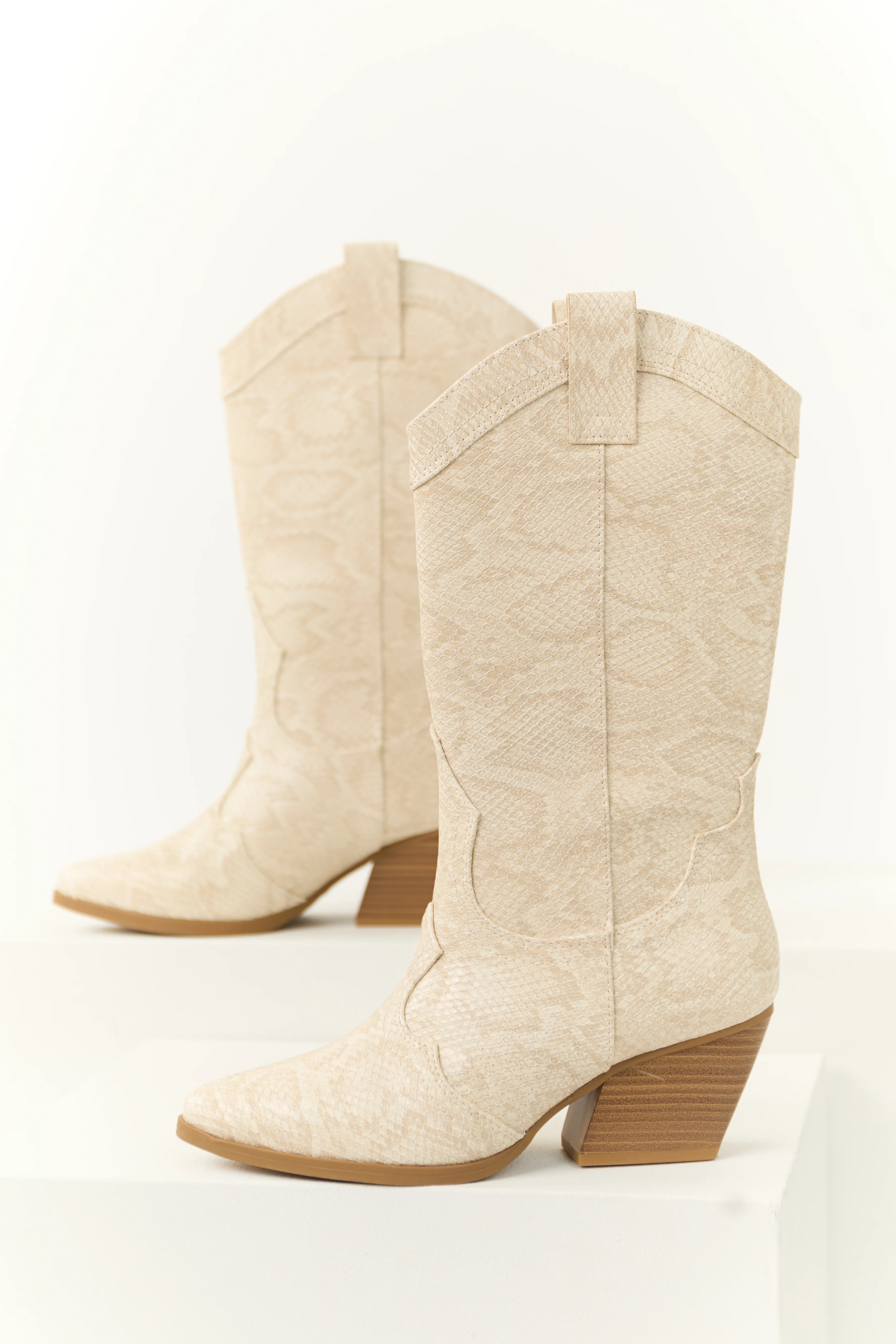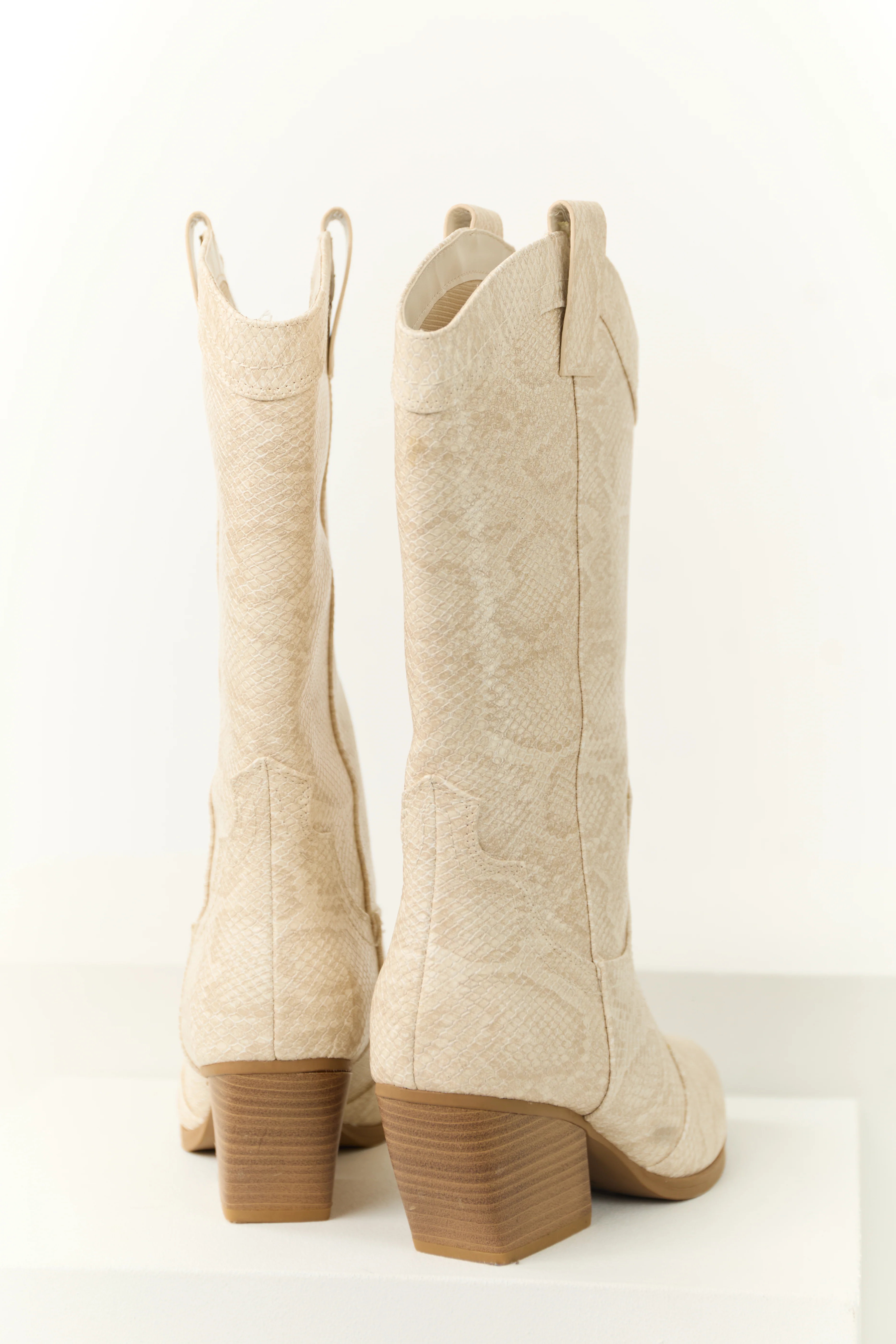 Vanilla Snakeskin Pattern Tall Western Boot