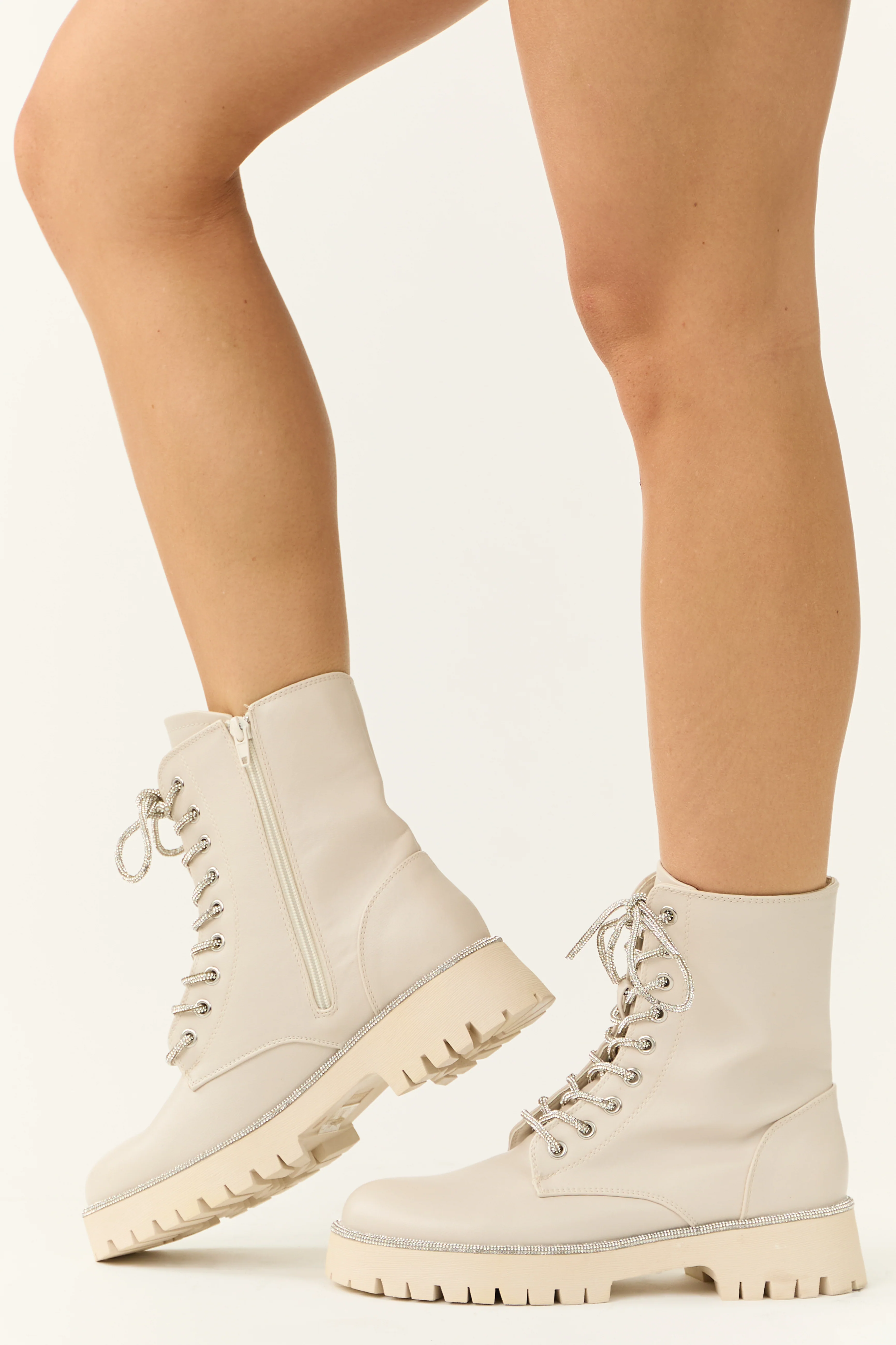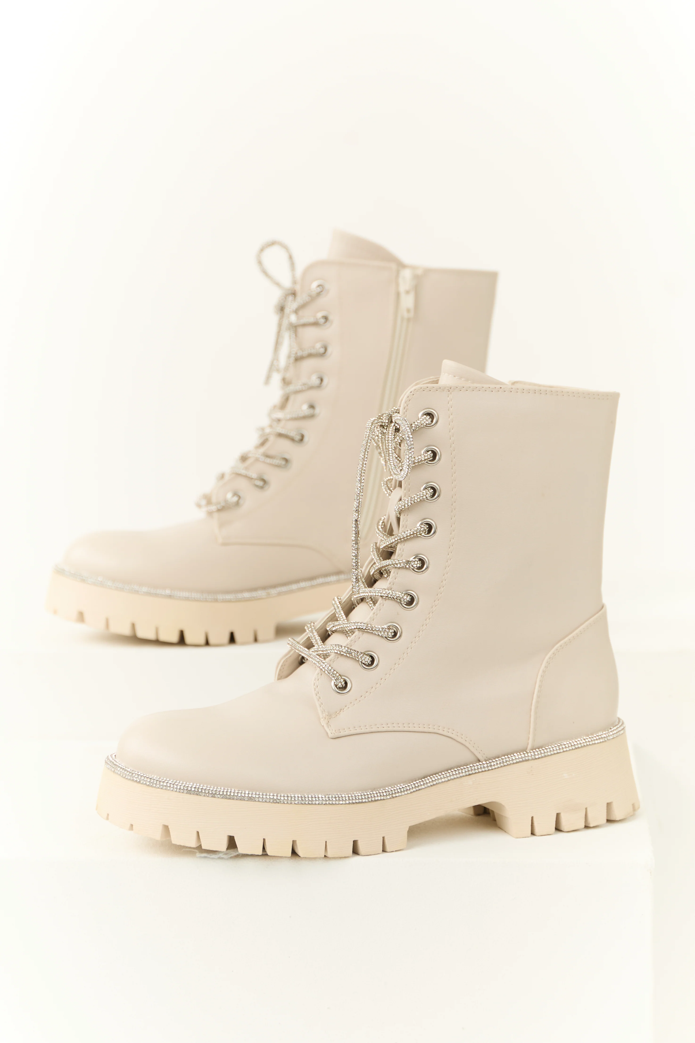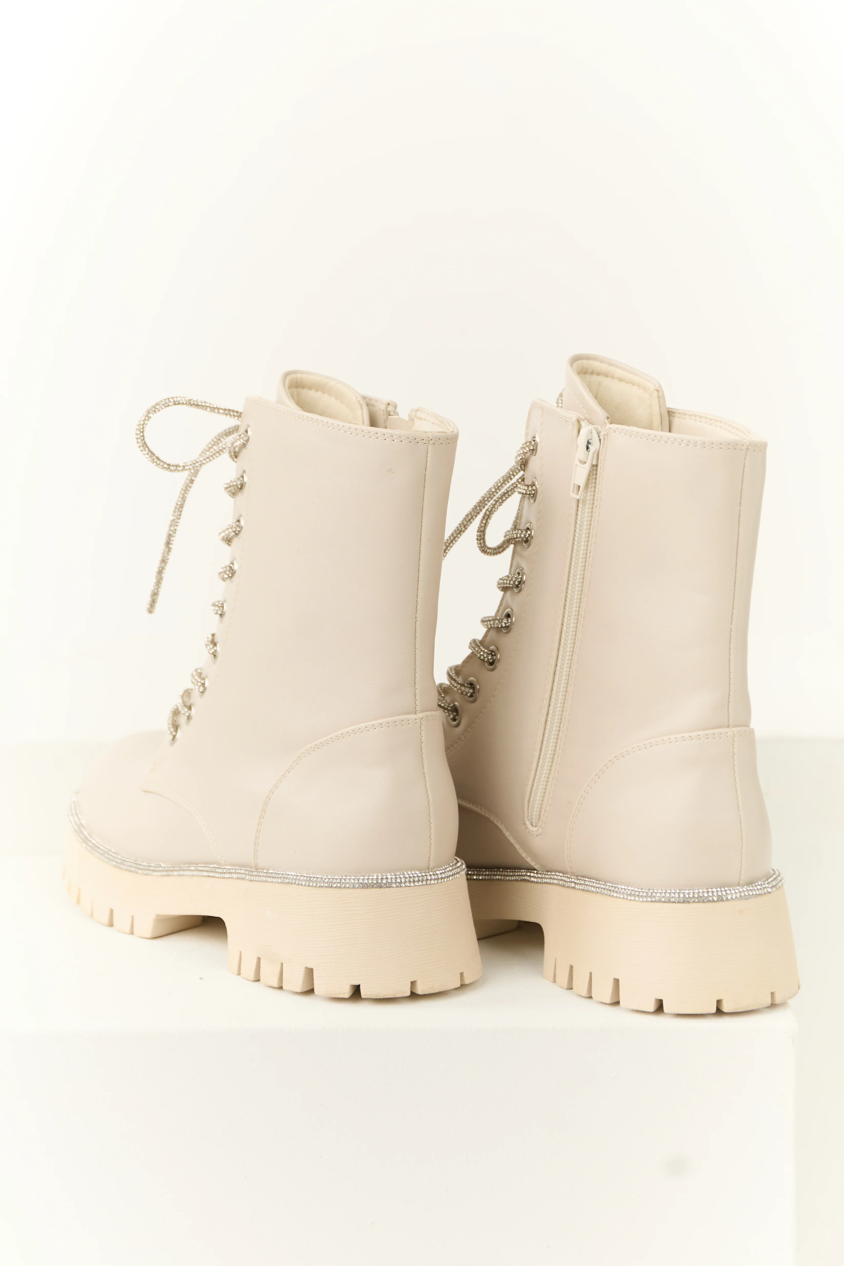Coconut Rhinestone Detail Platform Combat Boots