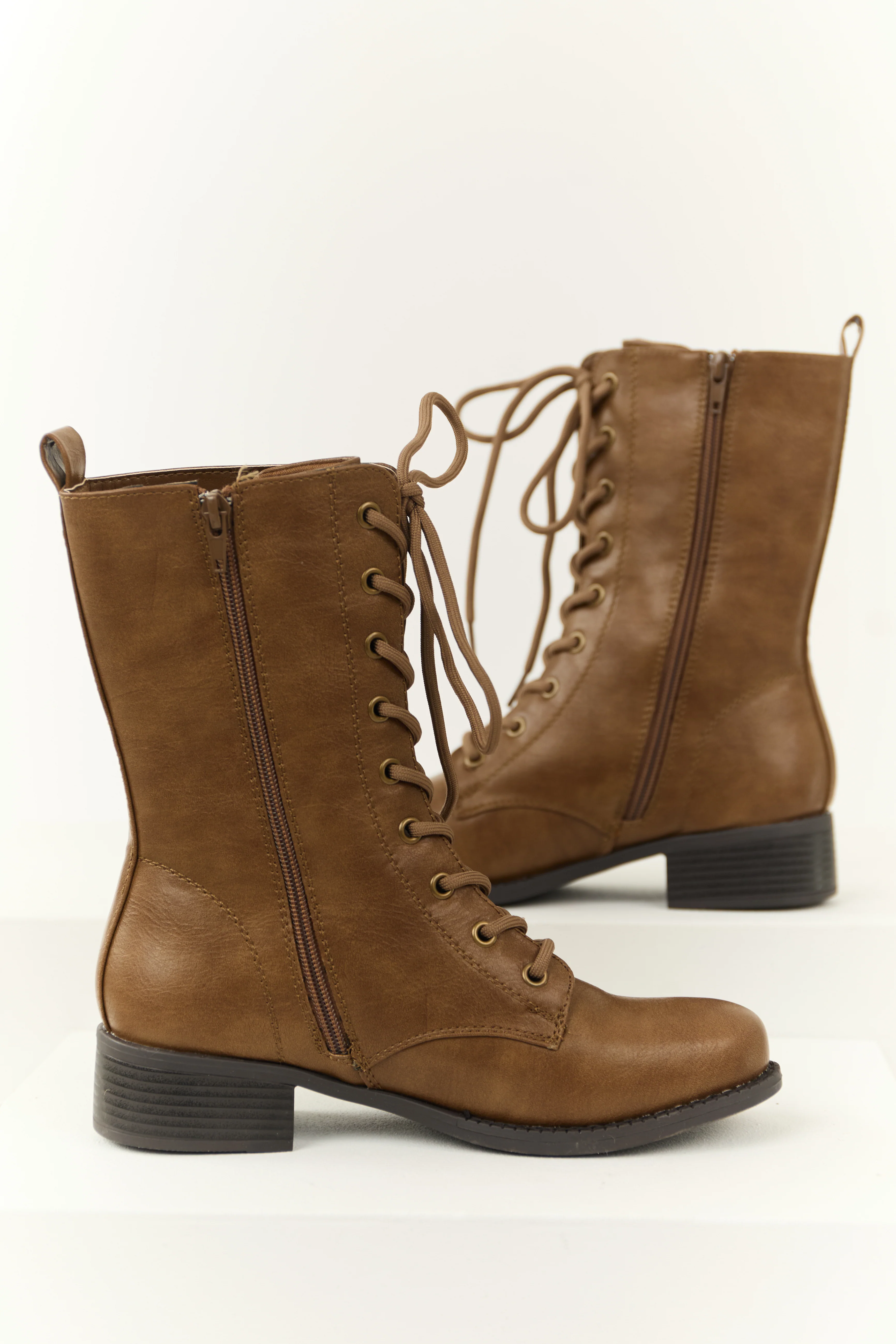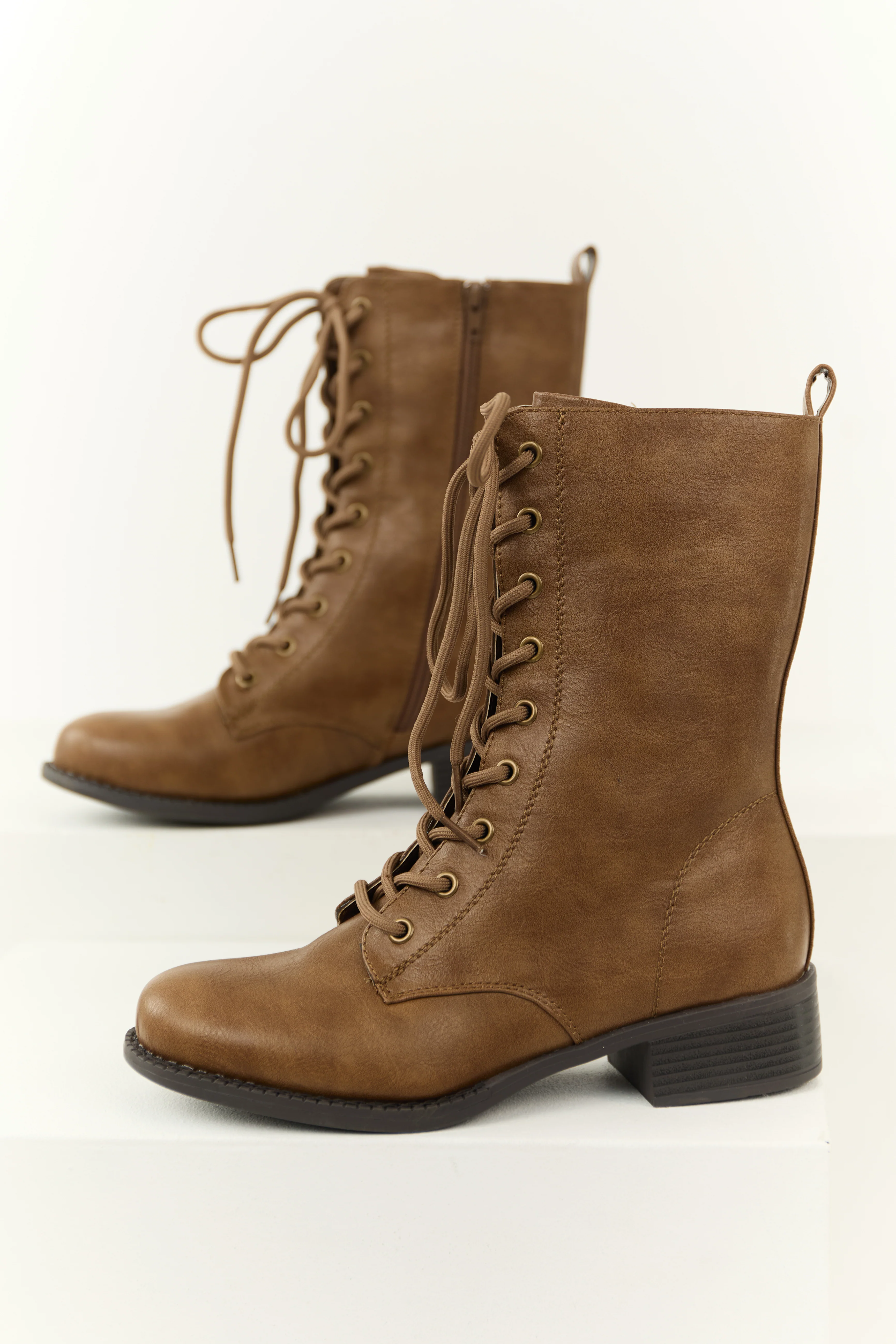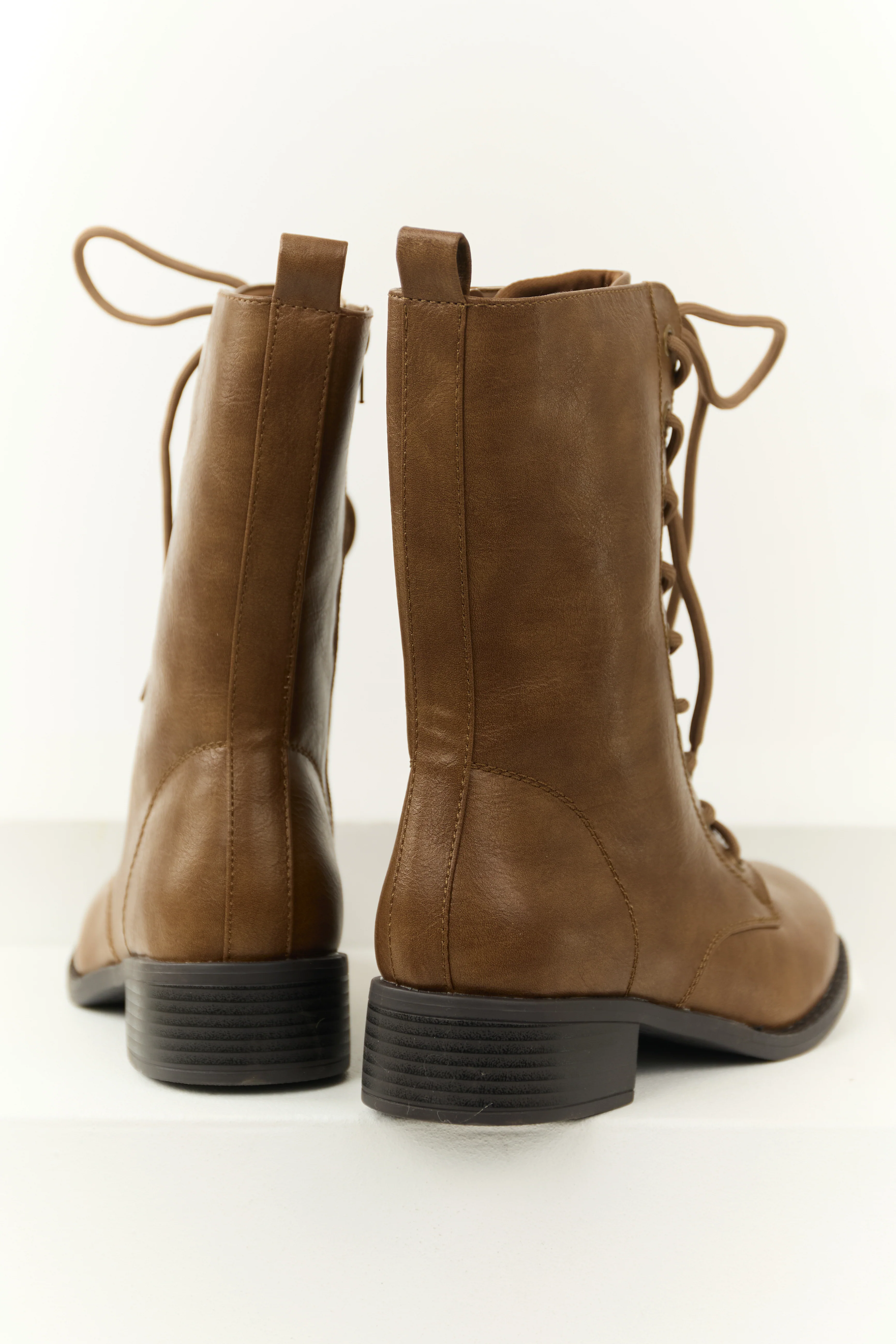 Sepia Washed Faux Leather Lace Up Boots