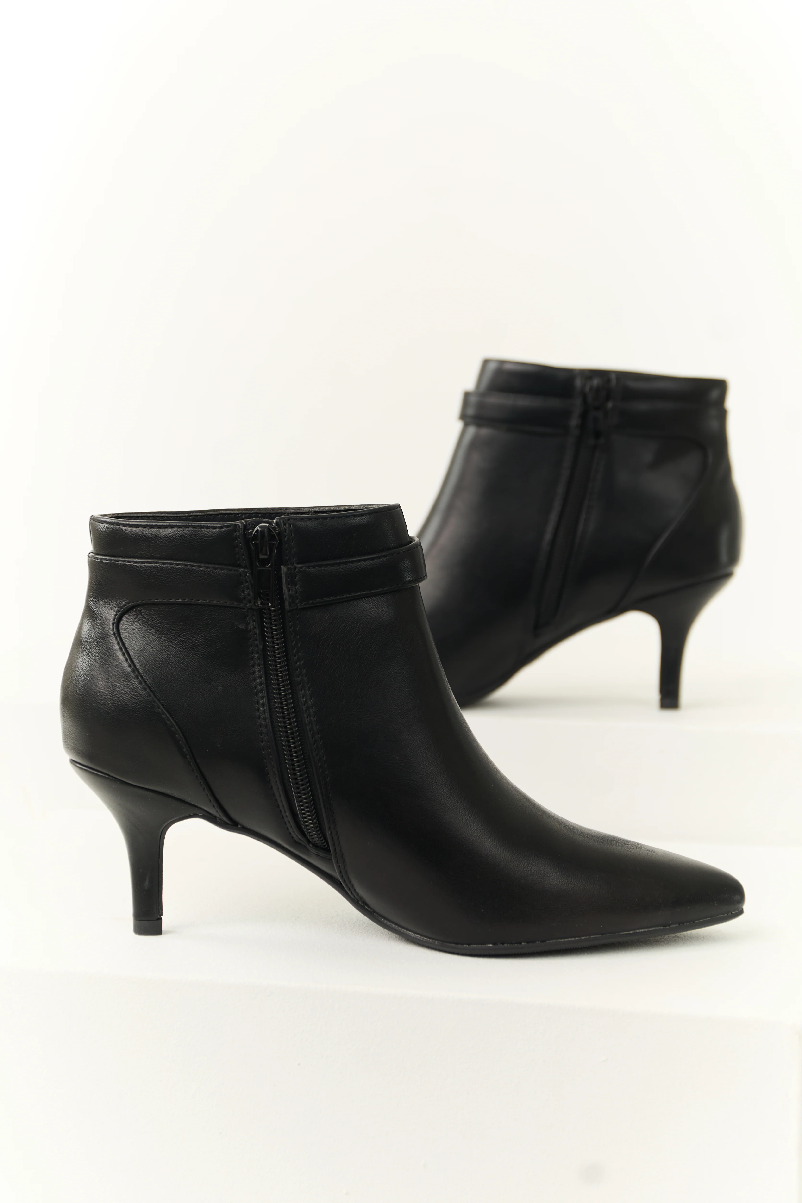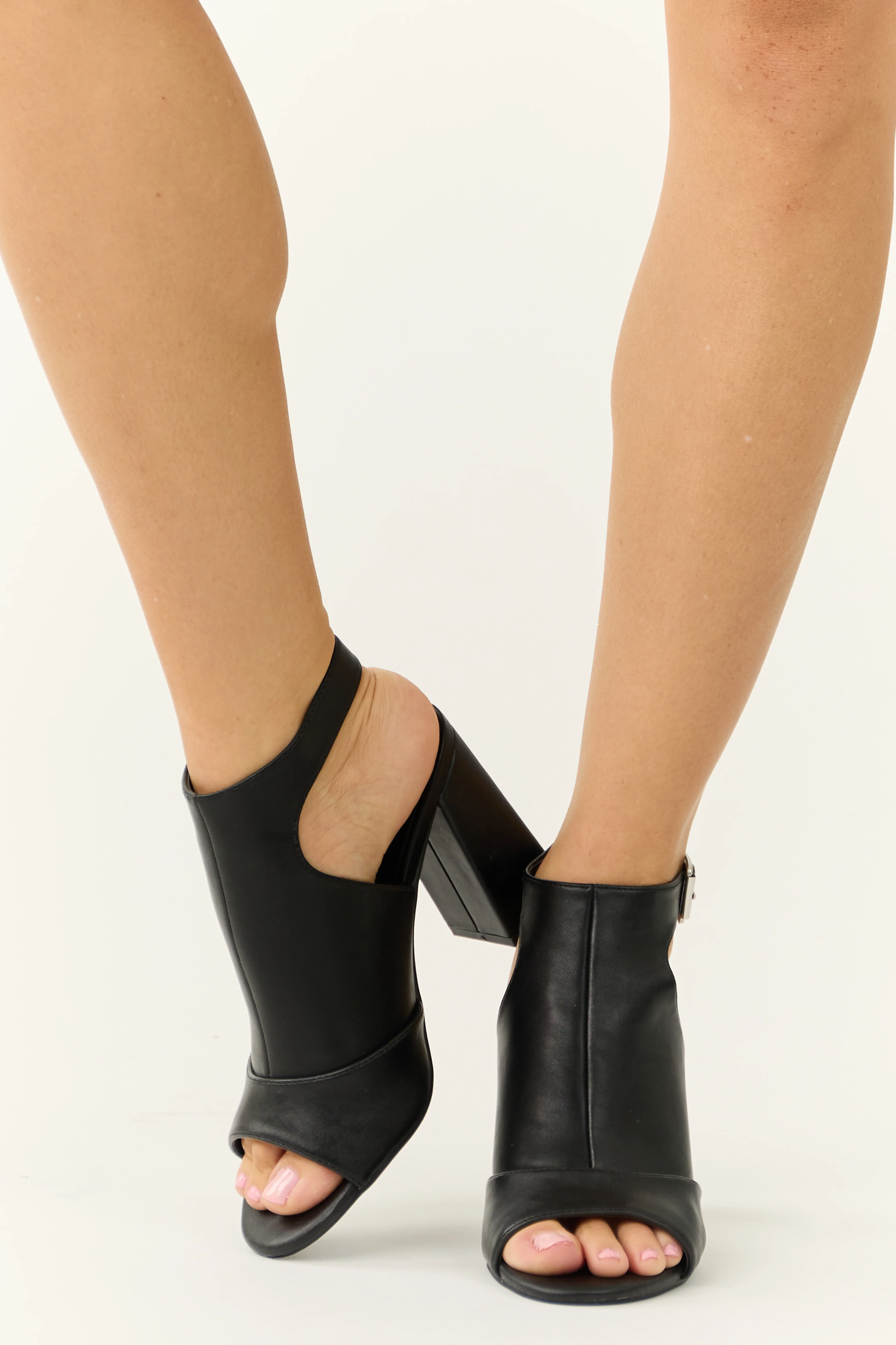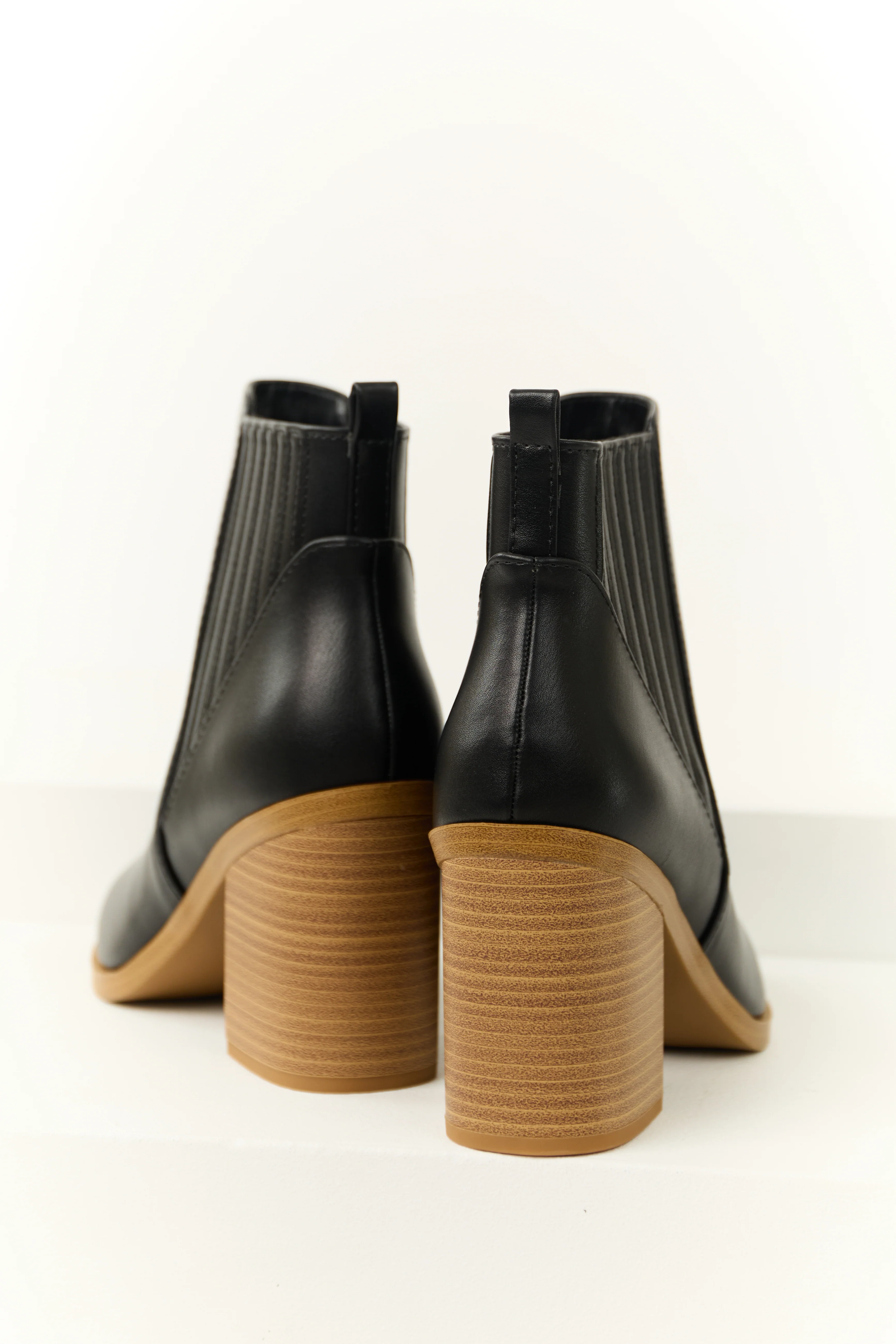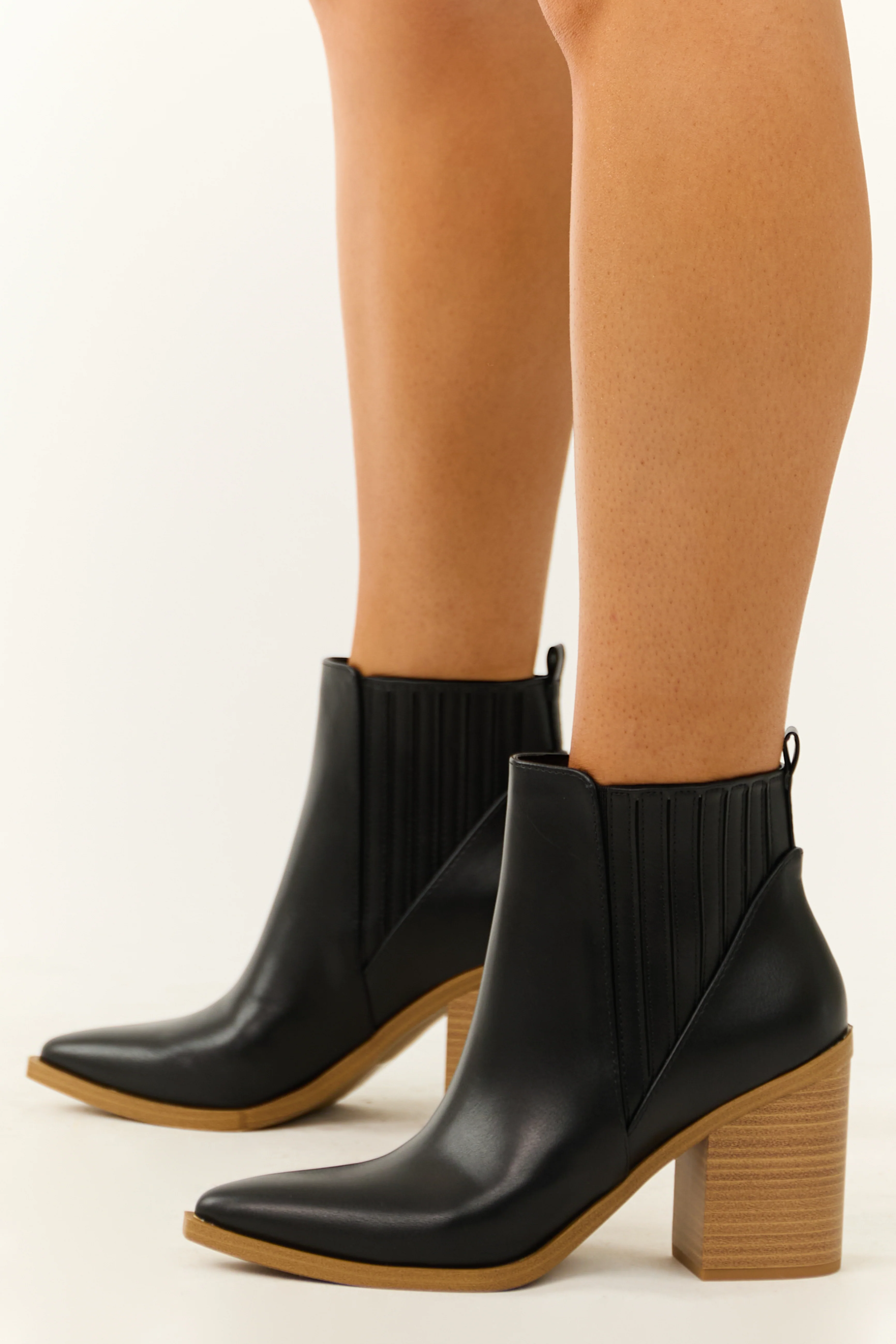Black Faux Leather Side Panel Heeled Bootie