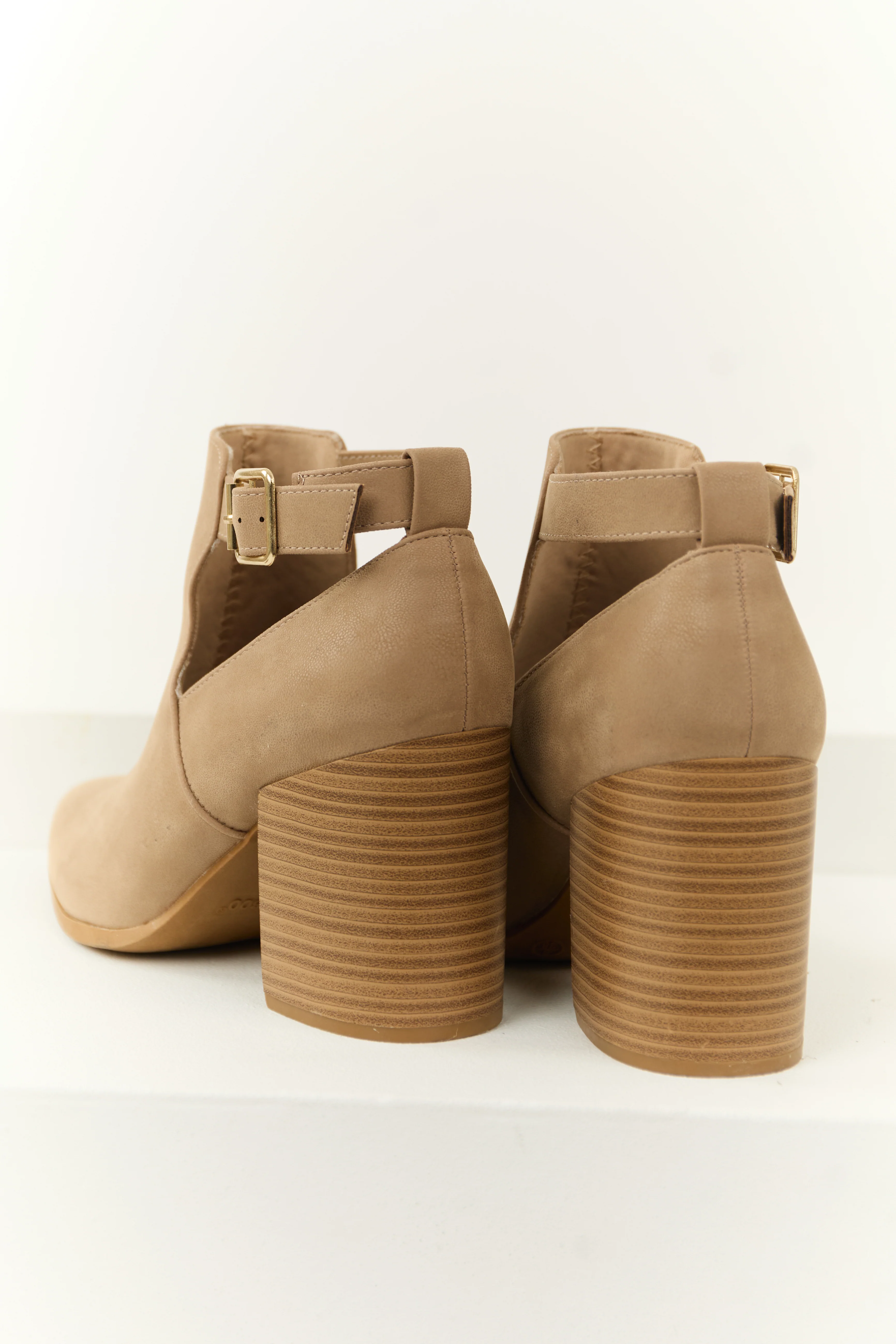 Camel Pointed Toe Block Heel Ankle Buckle Booties