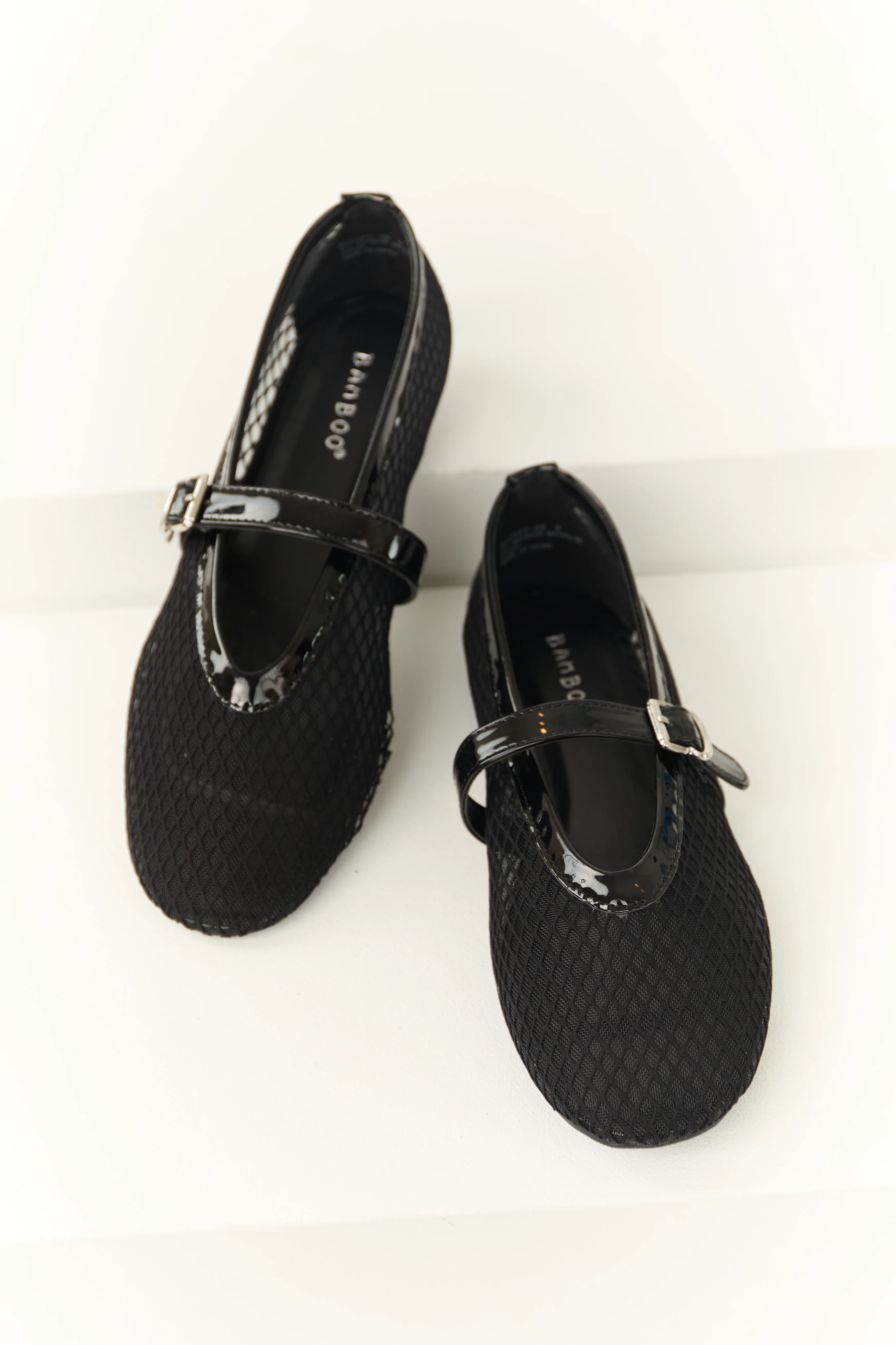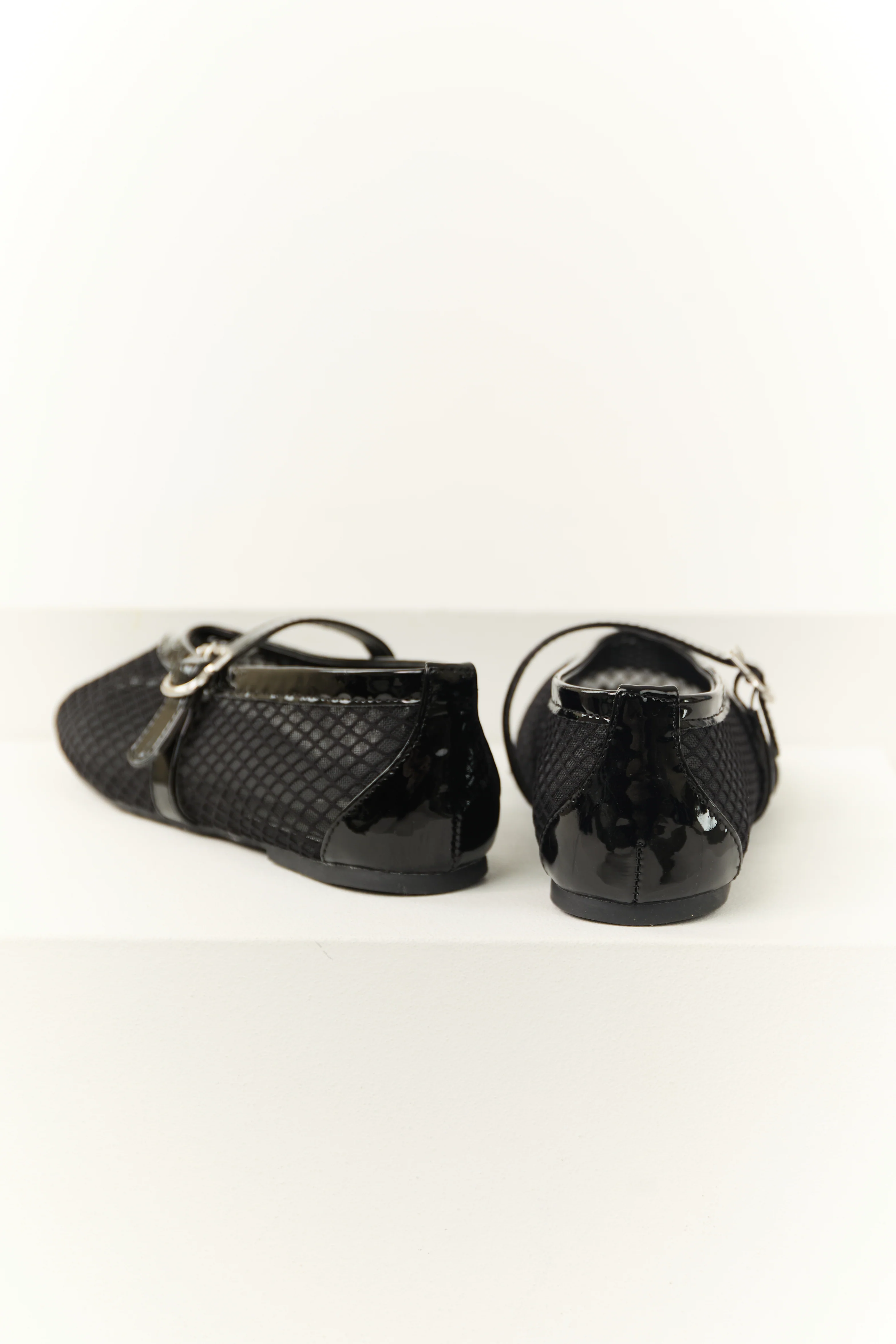 Black Geometric Mesh Rounded Toe Flats