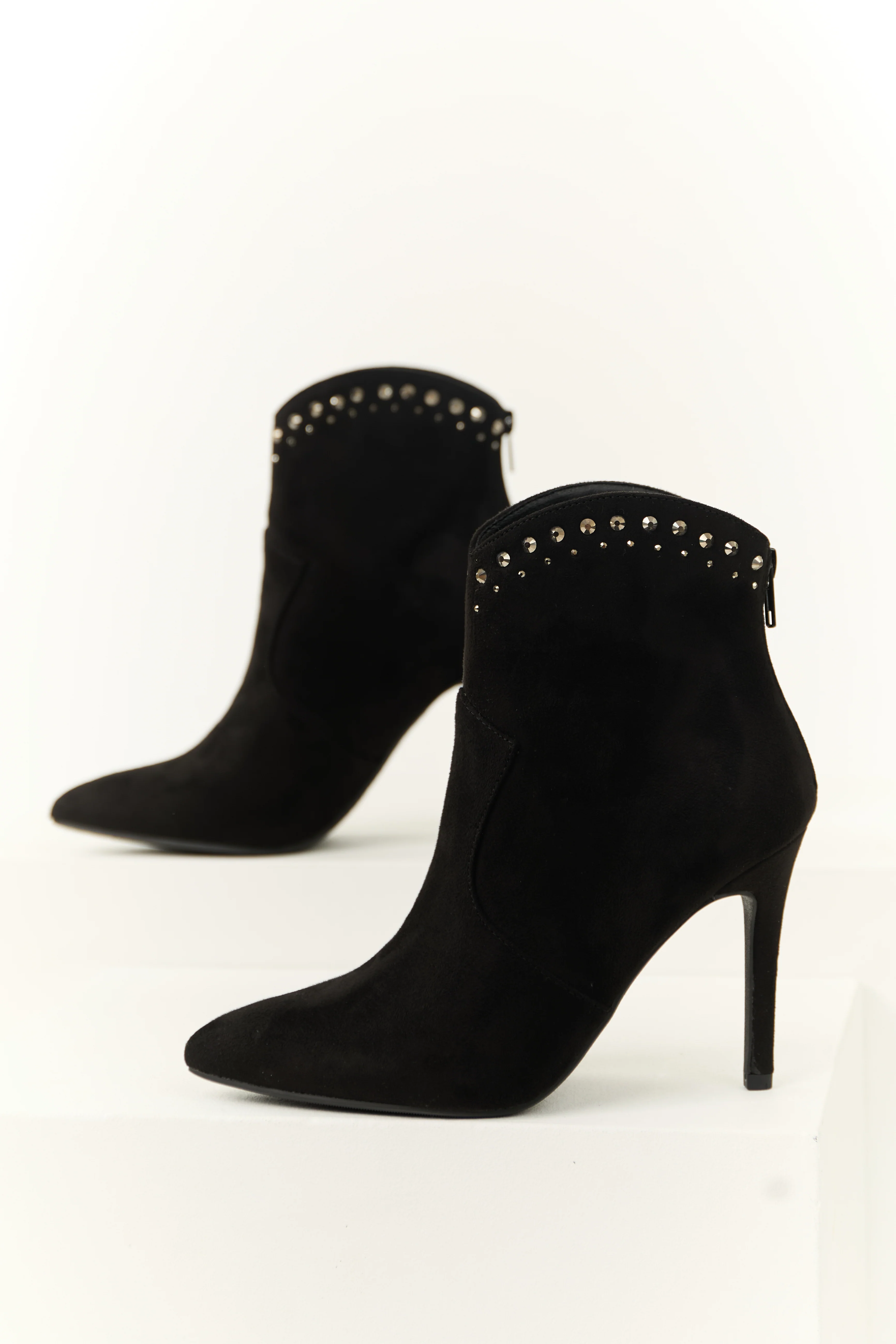 Black Rhinestone Detail High Heel Ankle Booties