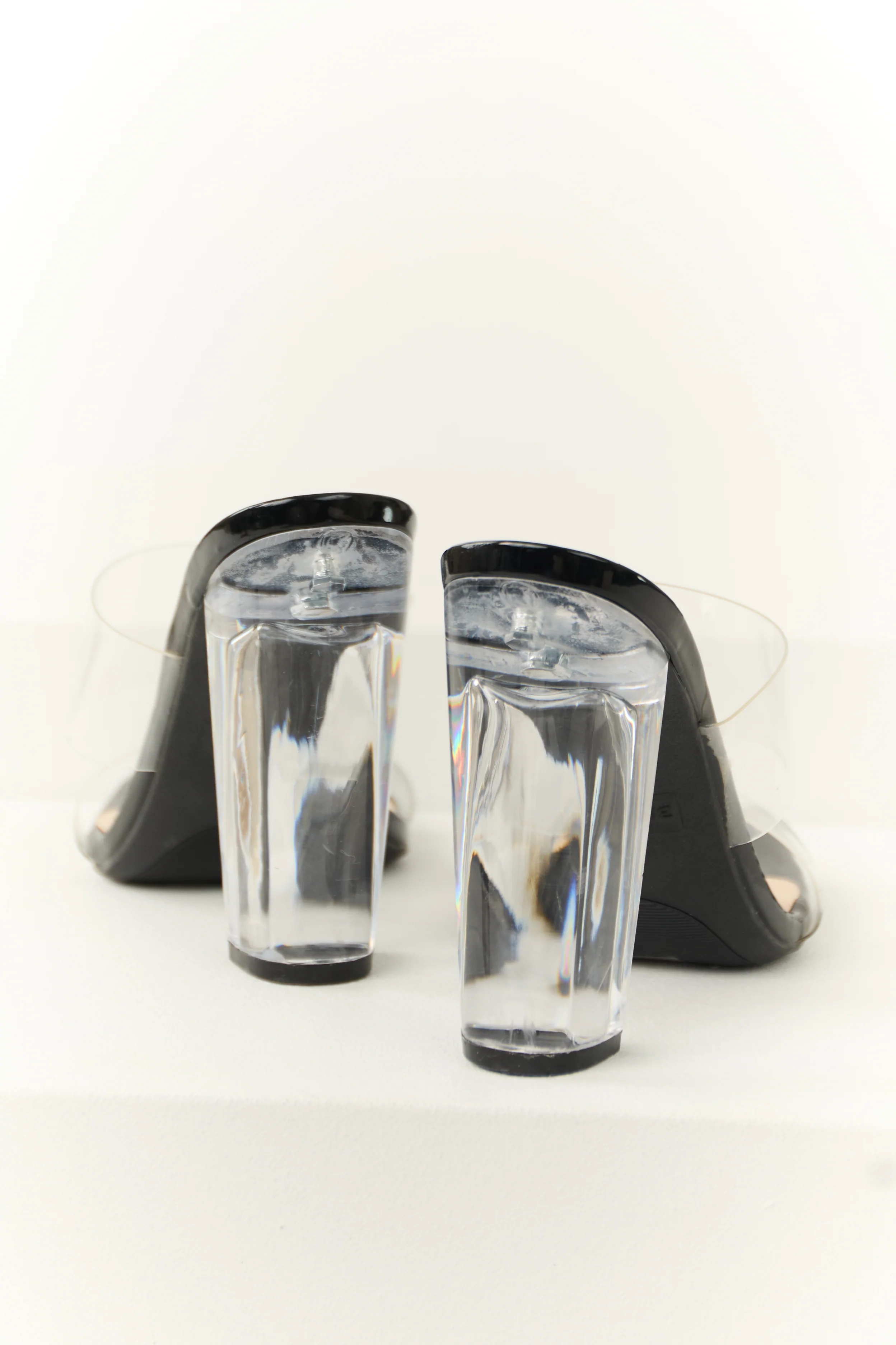 Black Clear Open Toe Block Heels