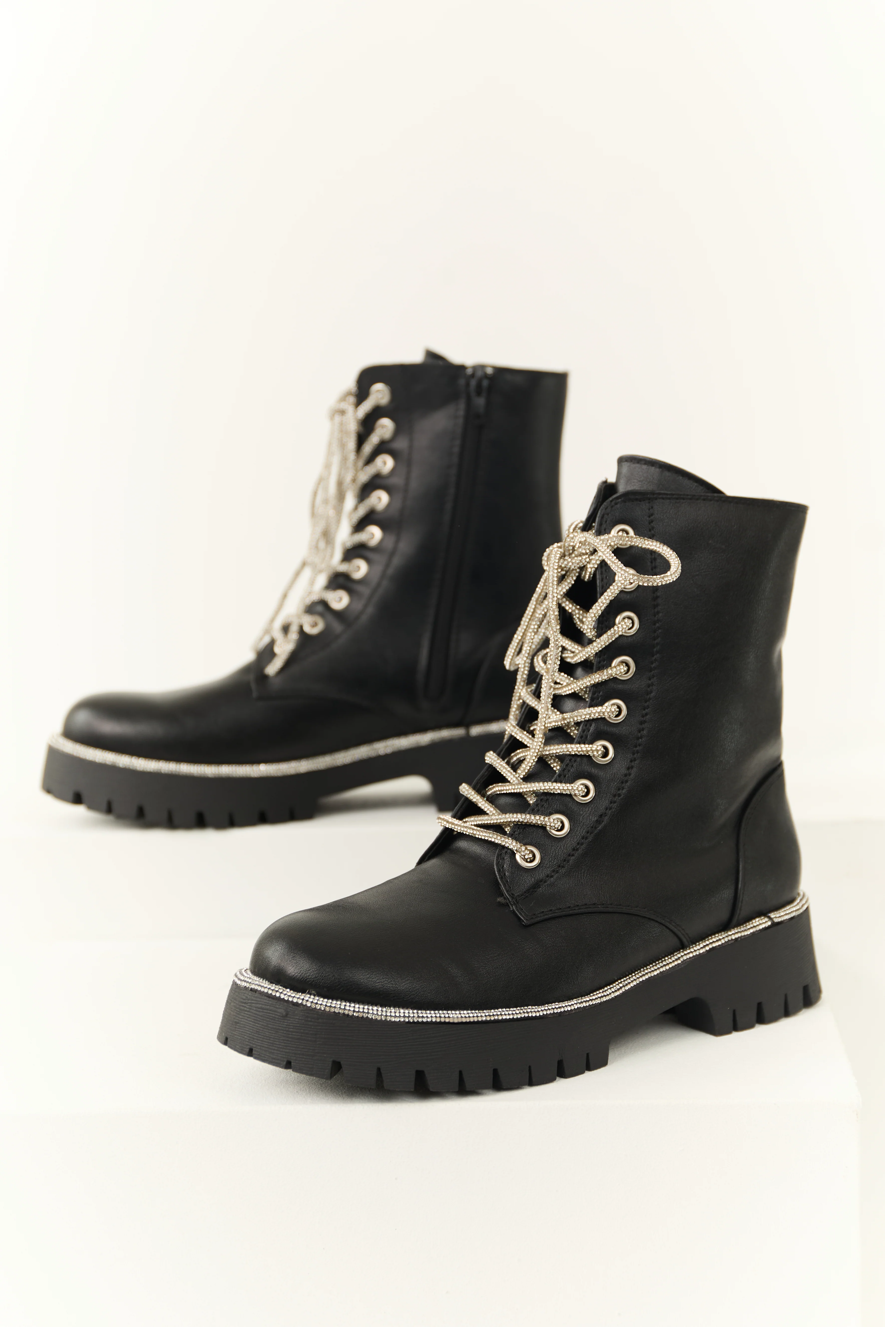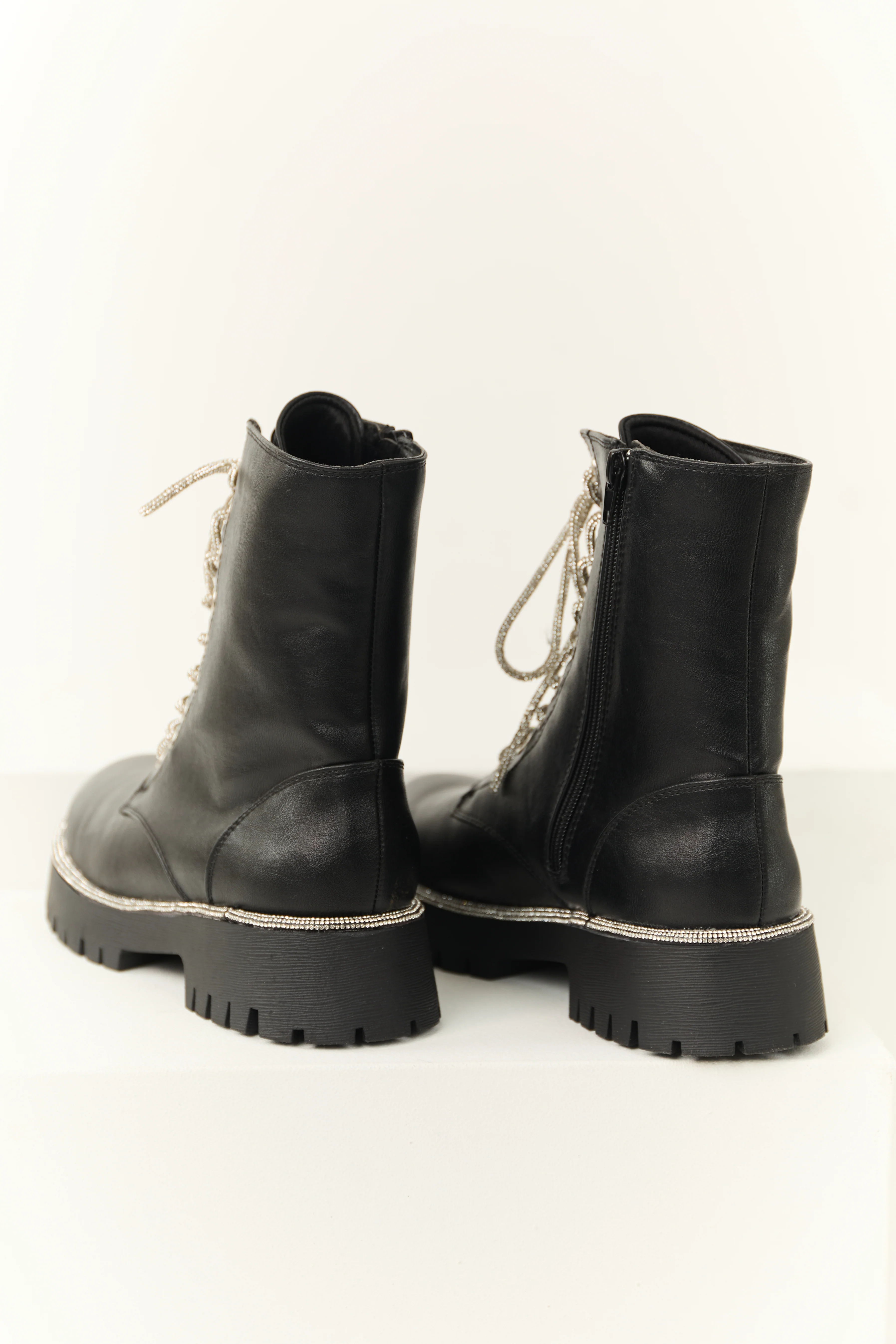 Black Rhinestone Detail Platform Combat Boots