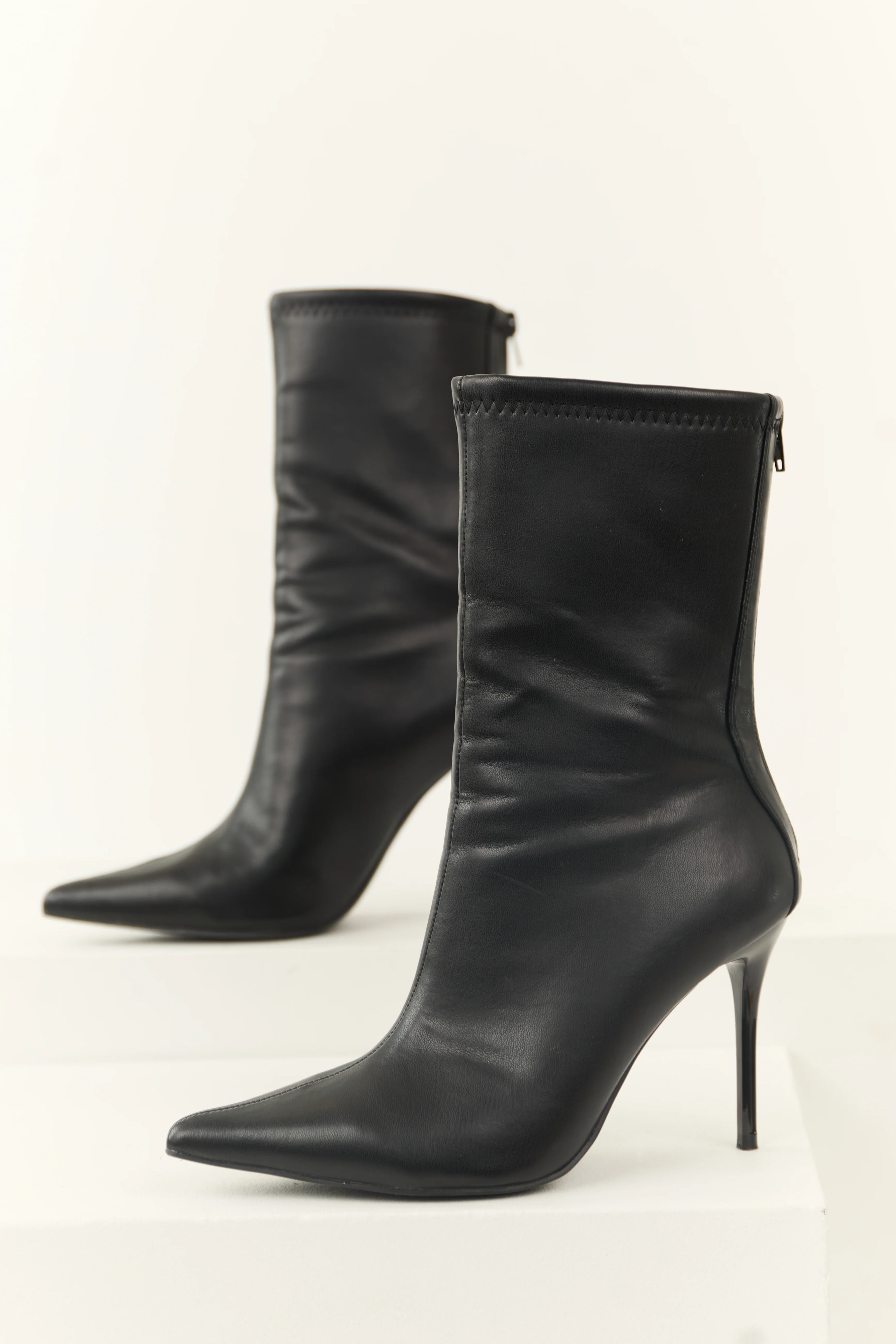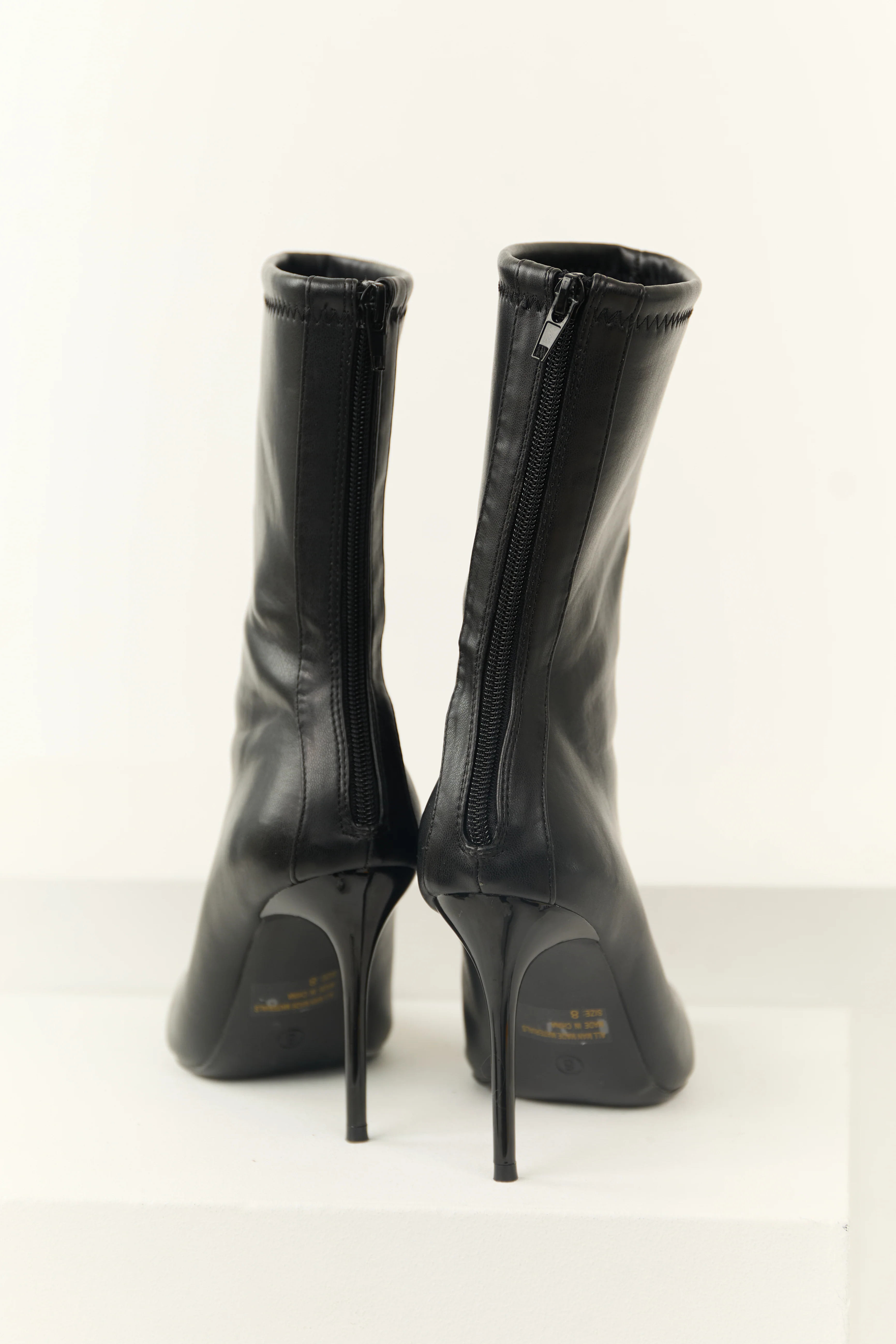 Black Faux Leather Stiletto Pointed Toe Boots