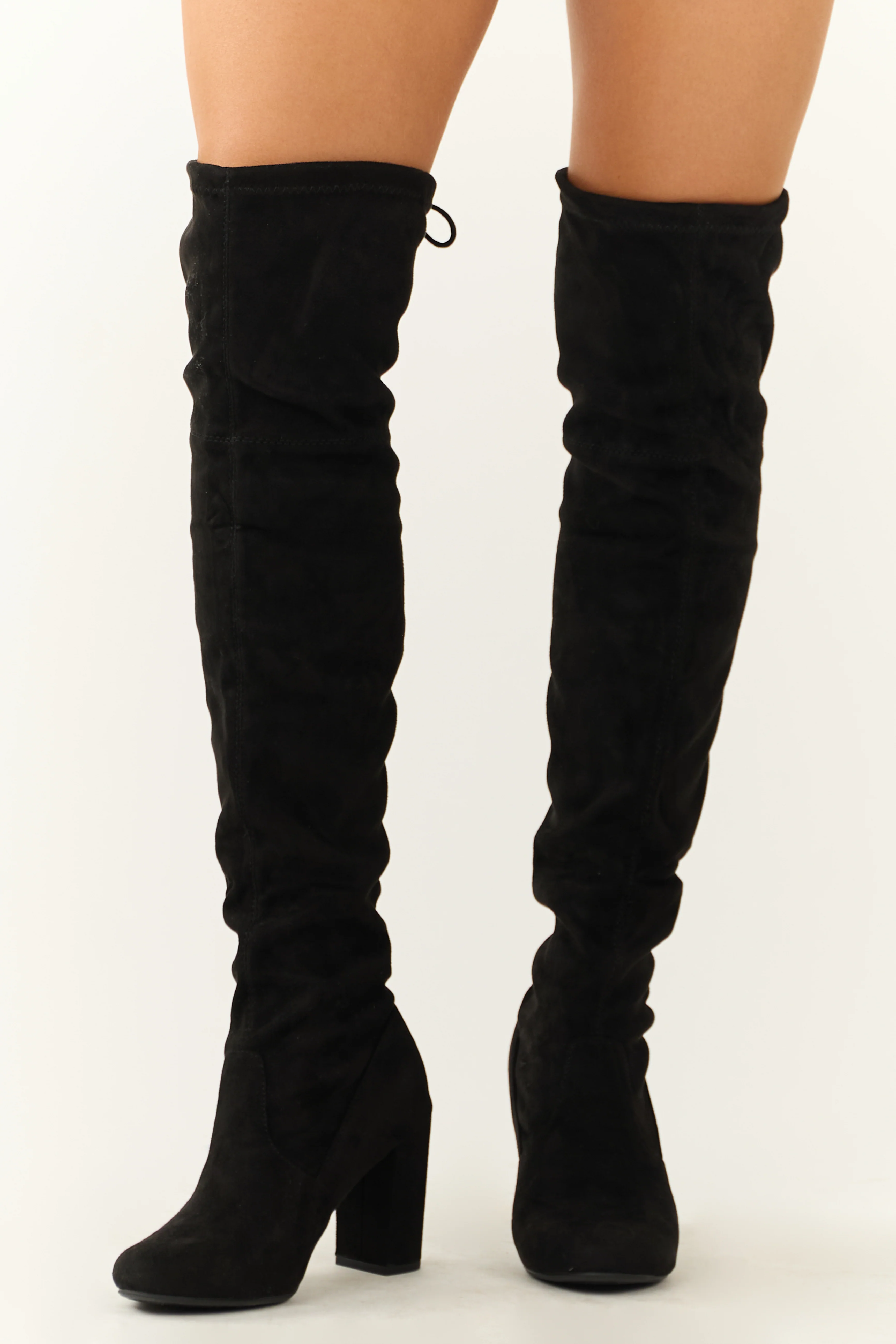 Black Over the Knee Microsuede Drawstring Boots