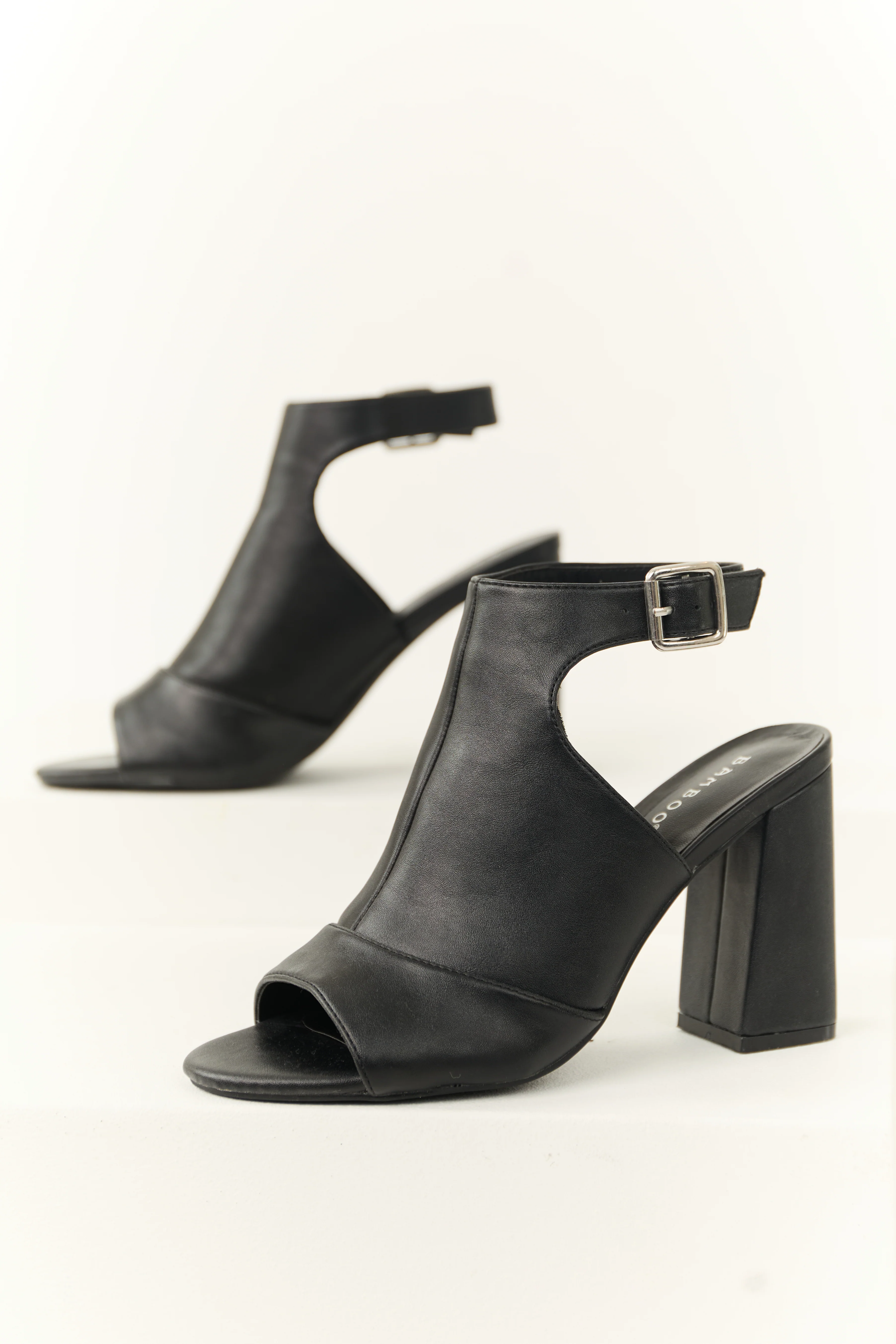 Black Open Toe Strap Chunky Heels