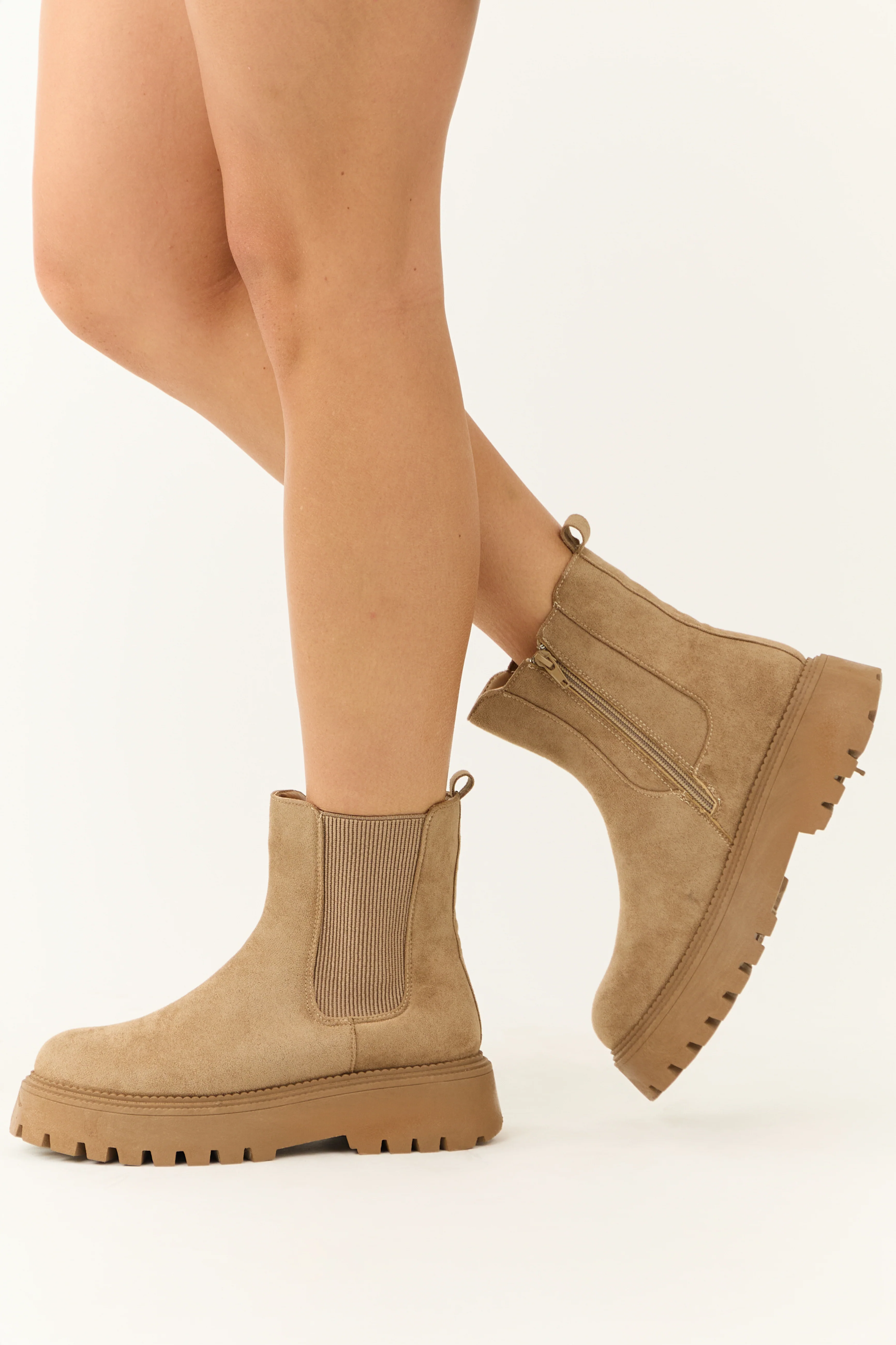 Latte Faux Suede Lug Platform Boots