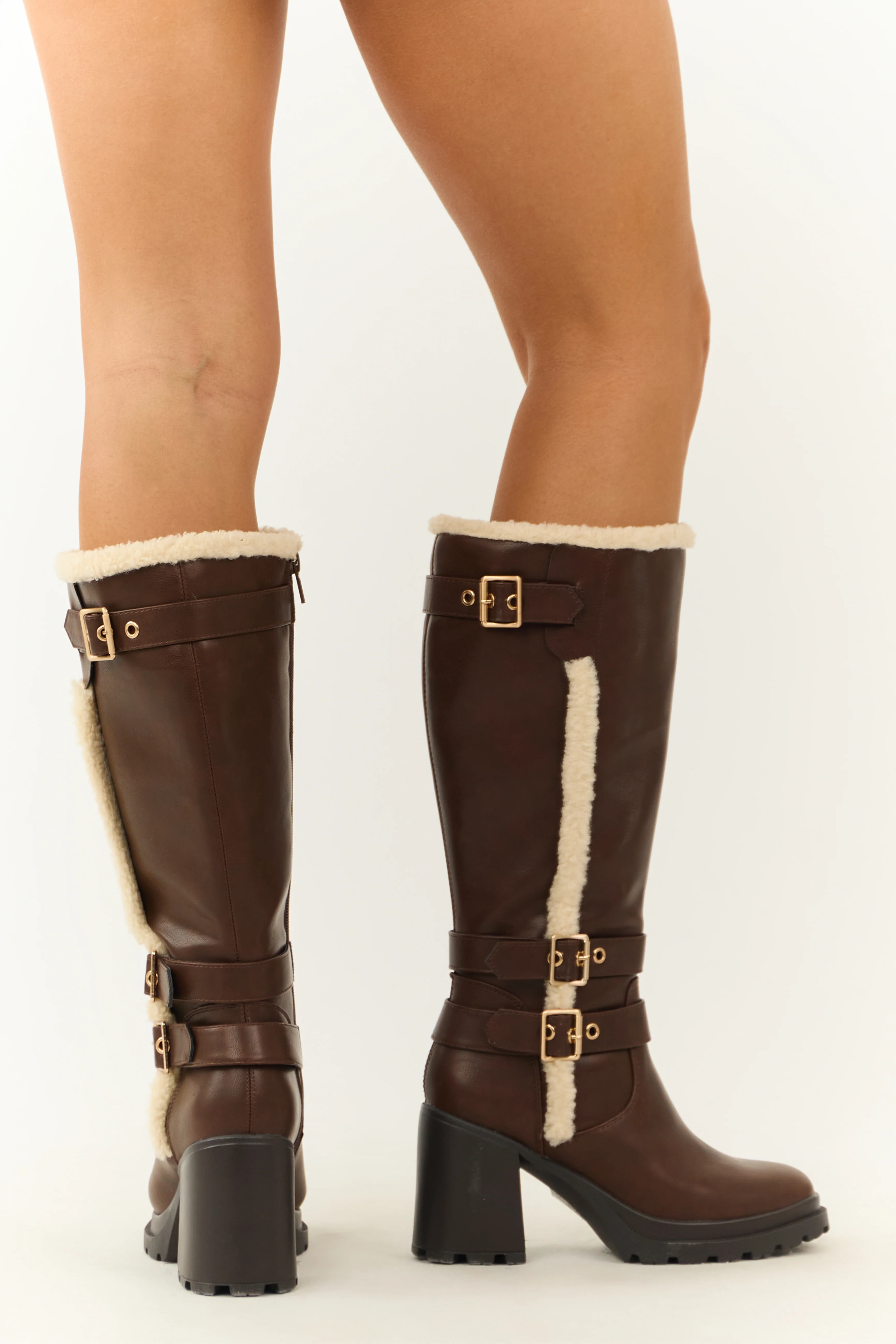 Spice Faux Leather Sherpa Lined Tall Platform Boots