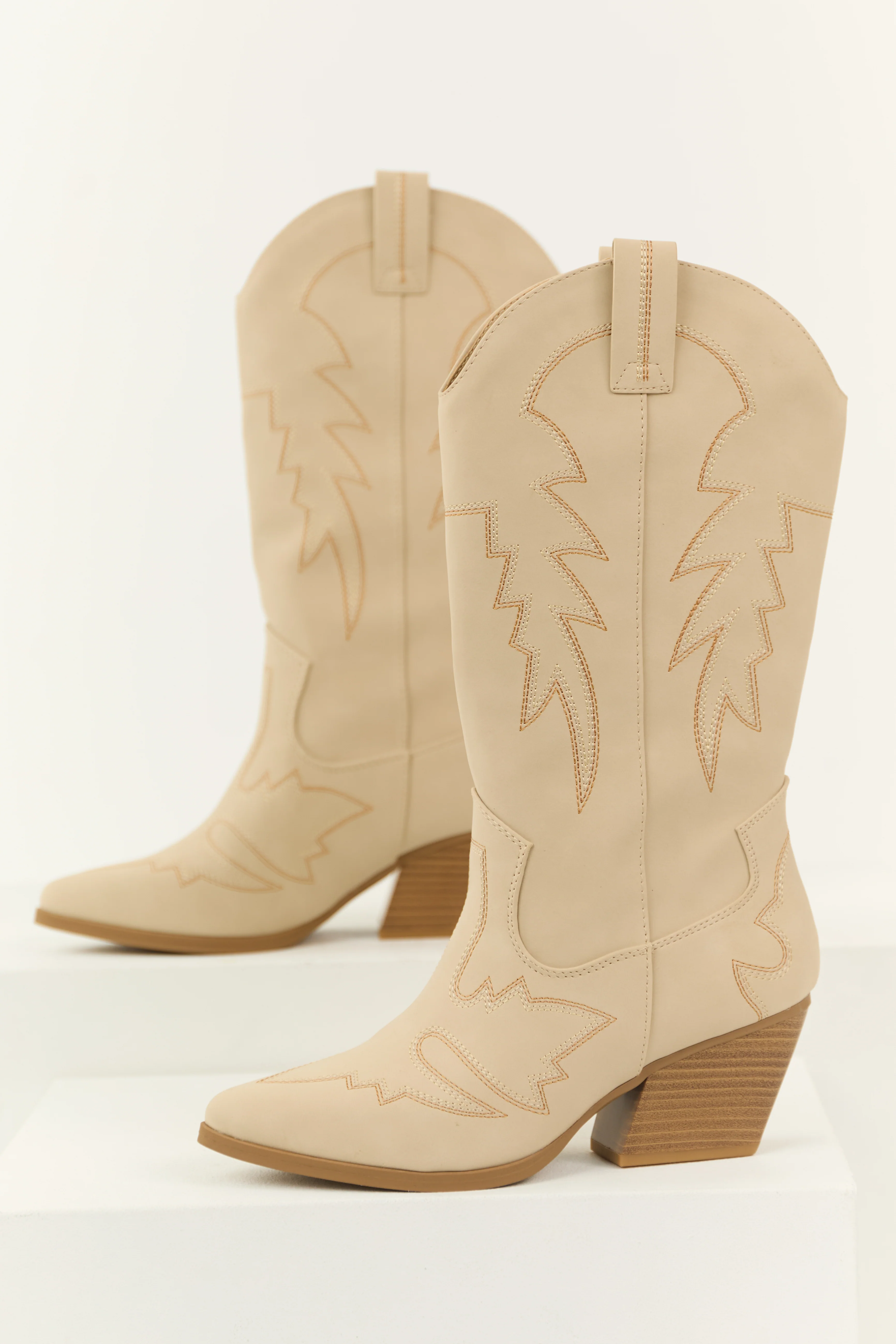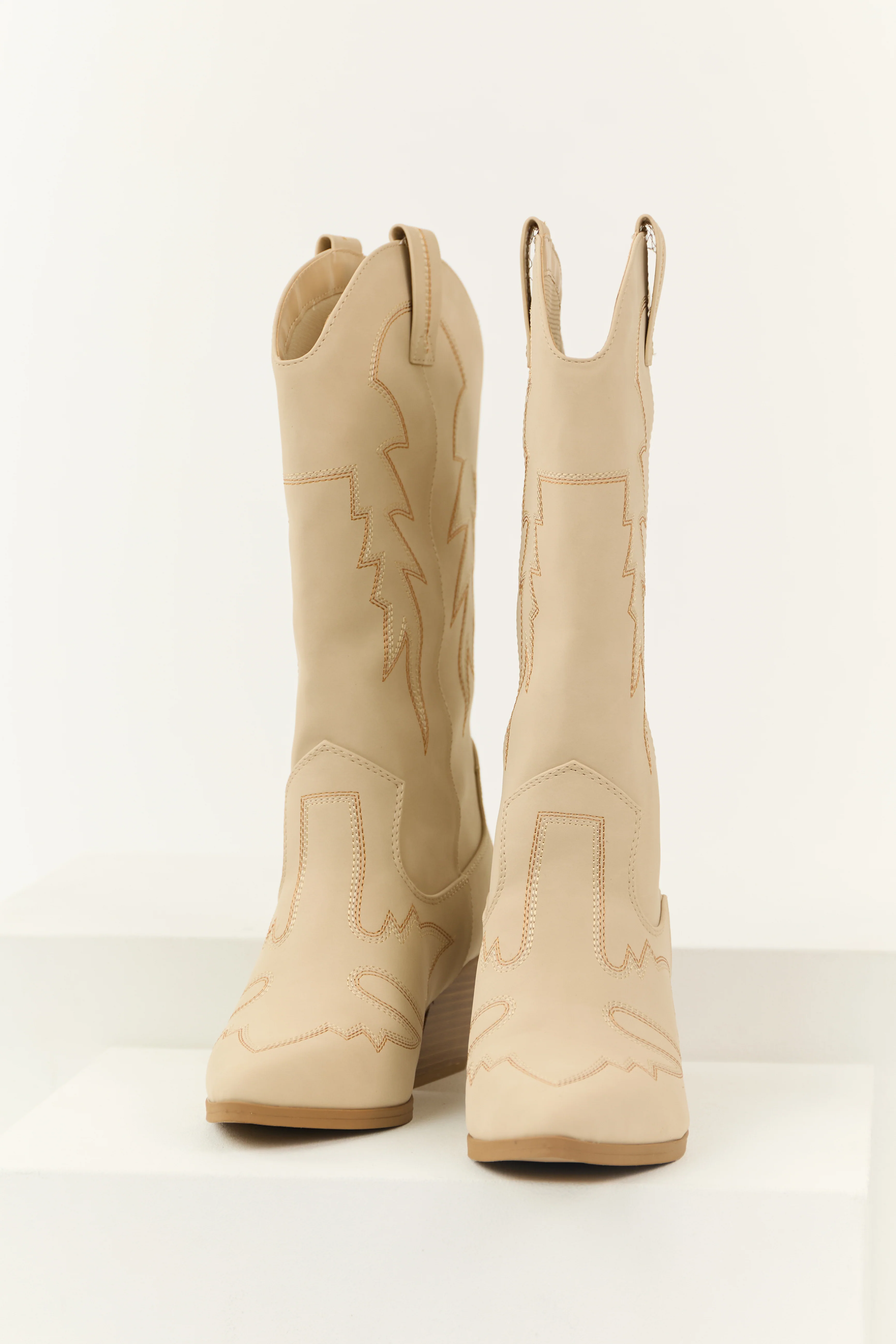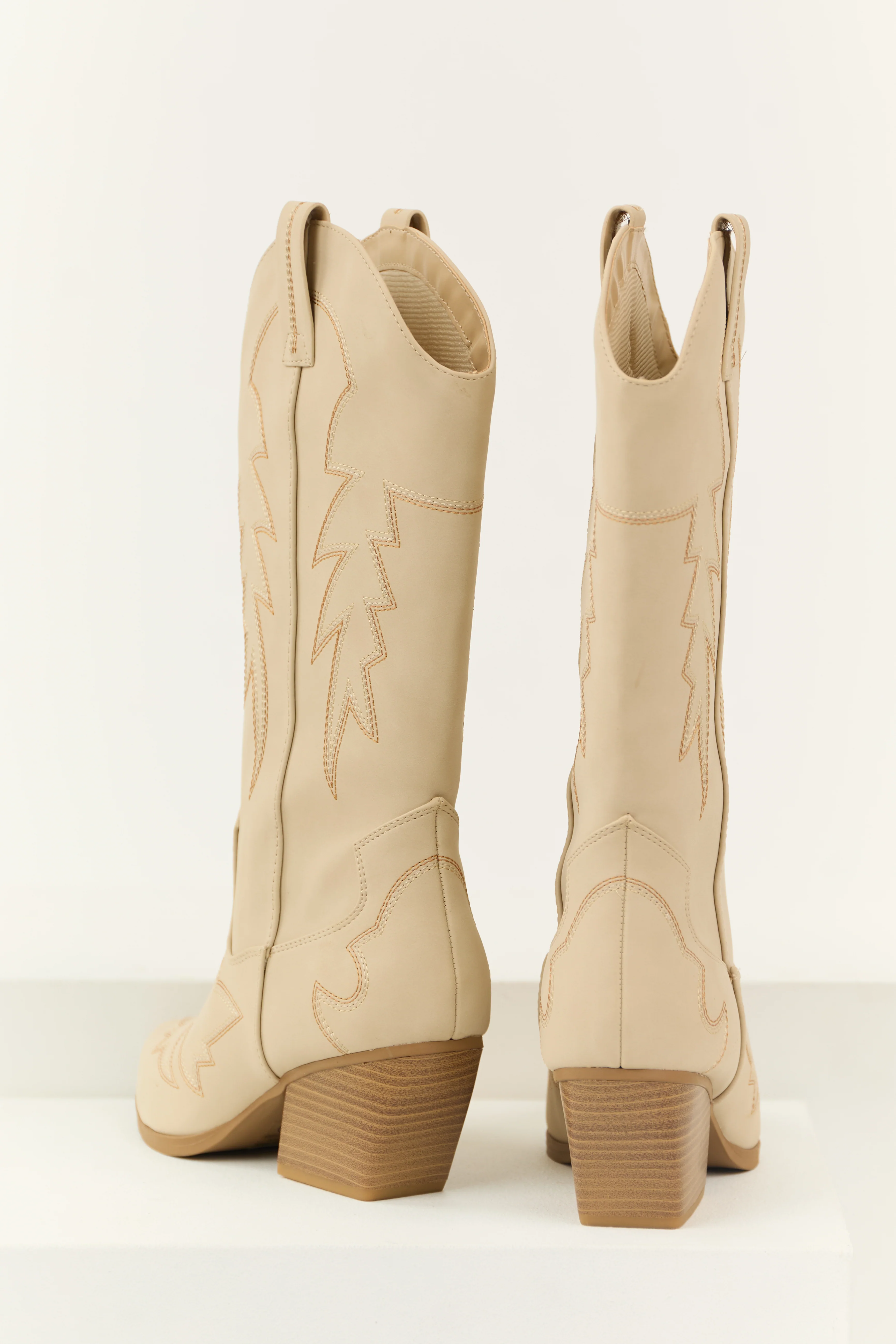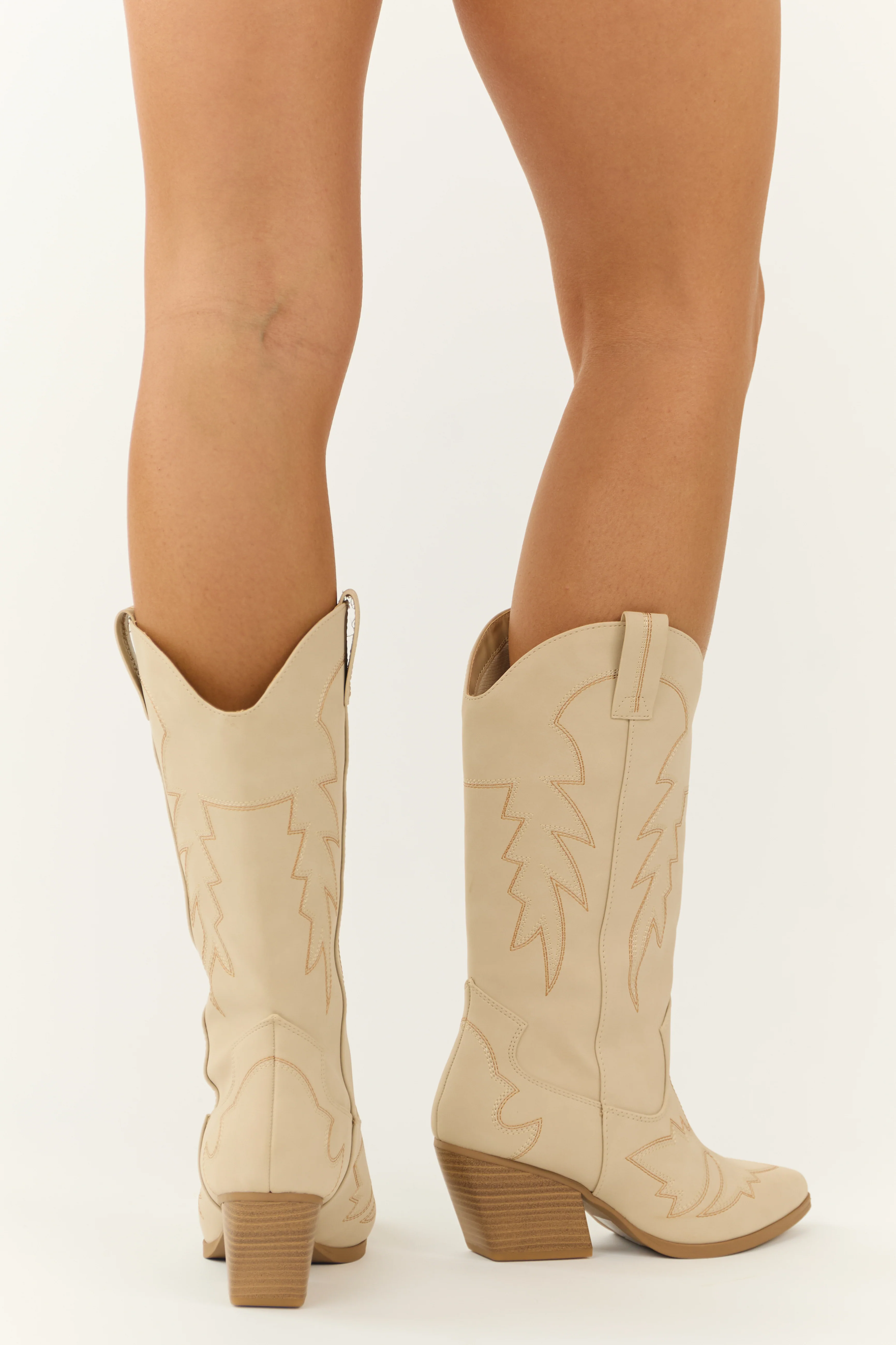 Almond Tall Western Stitching Heeled Boot