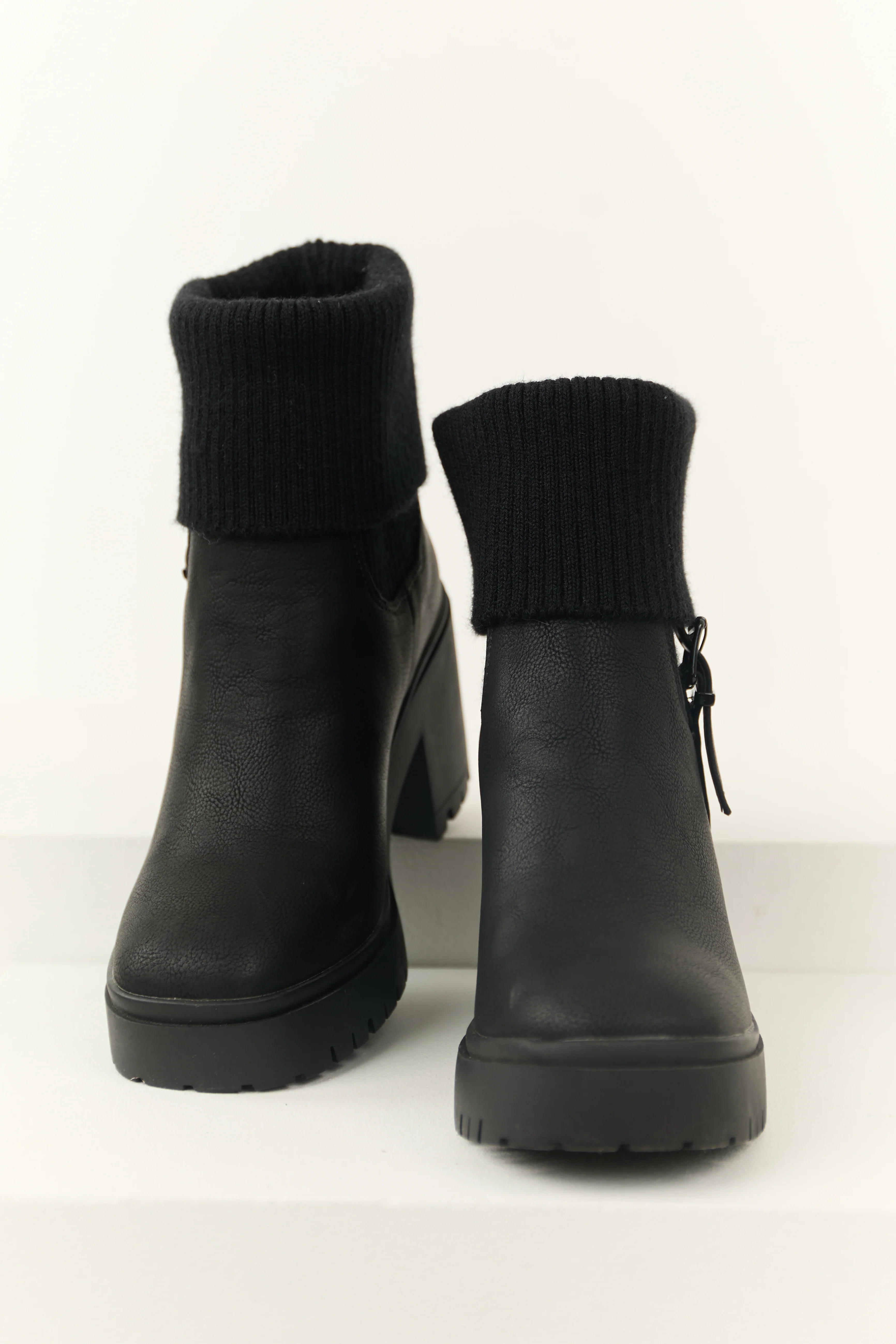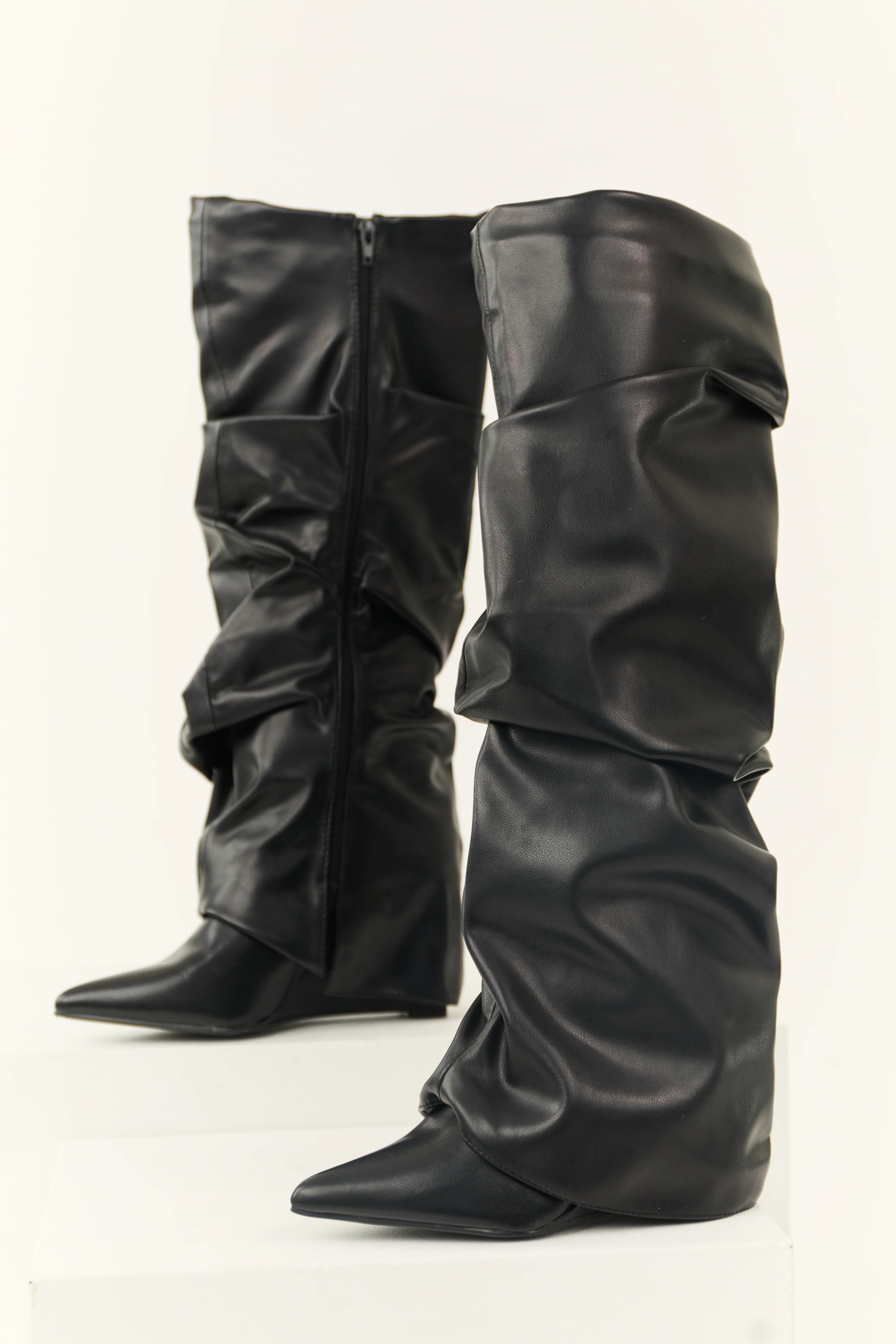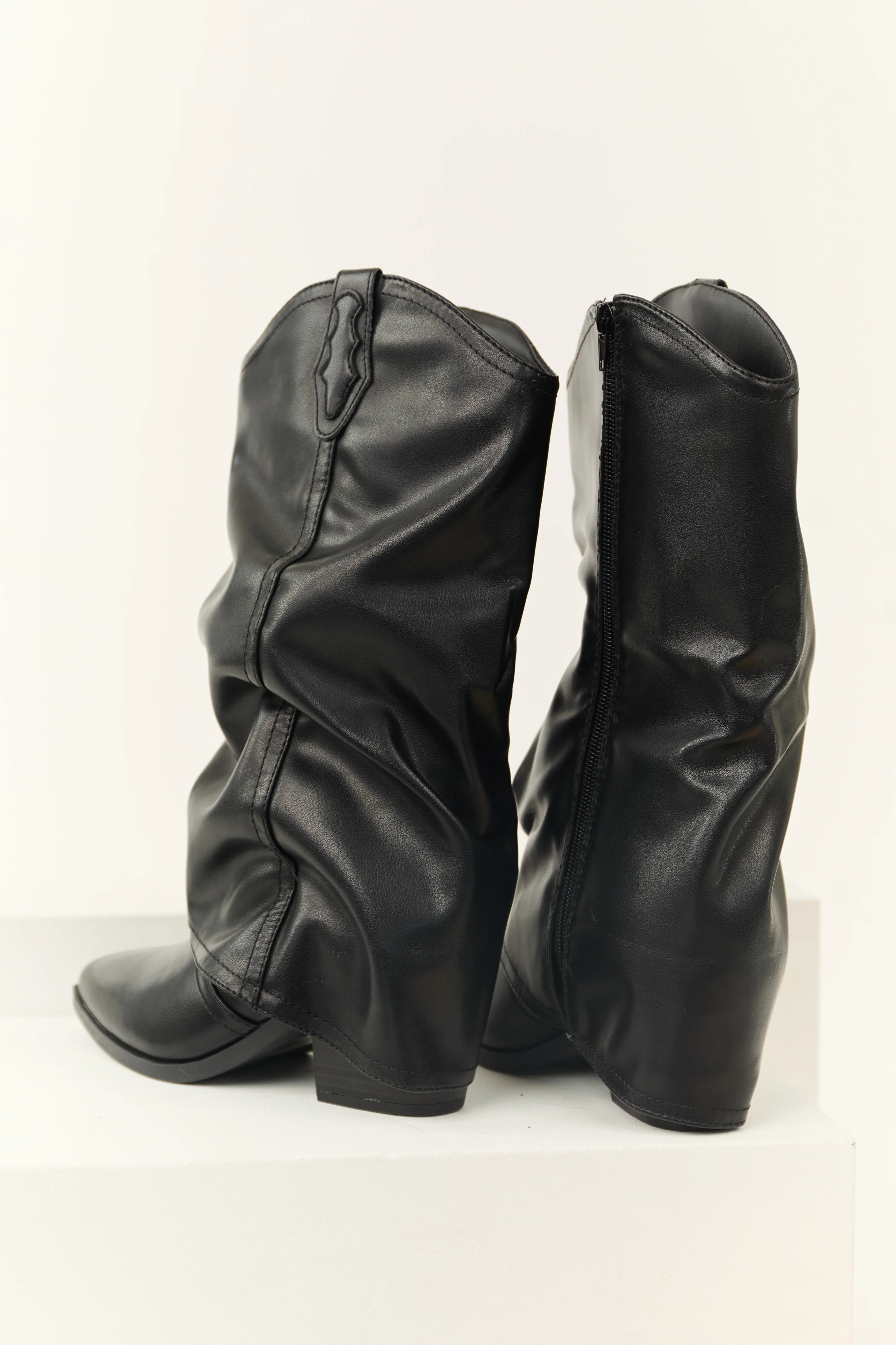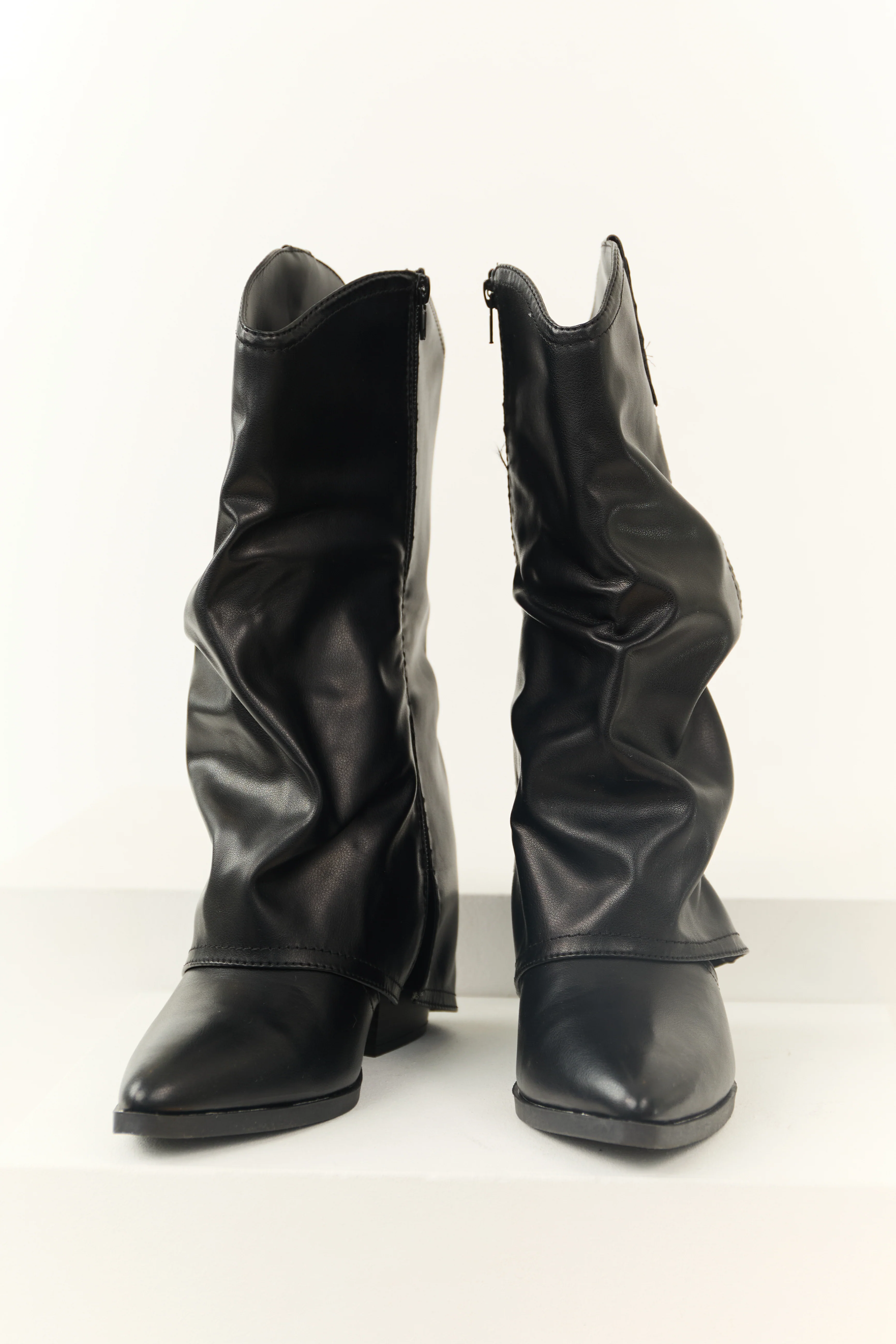Black Faux Leather Slouchy Foldover Boot