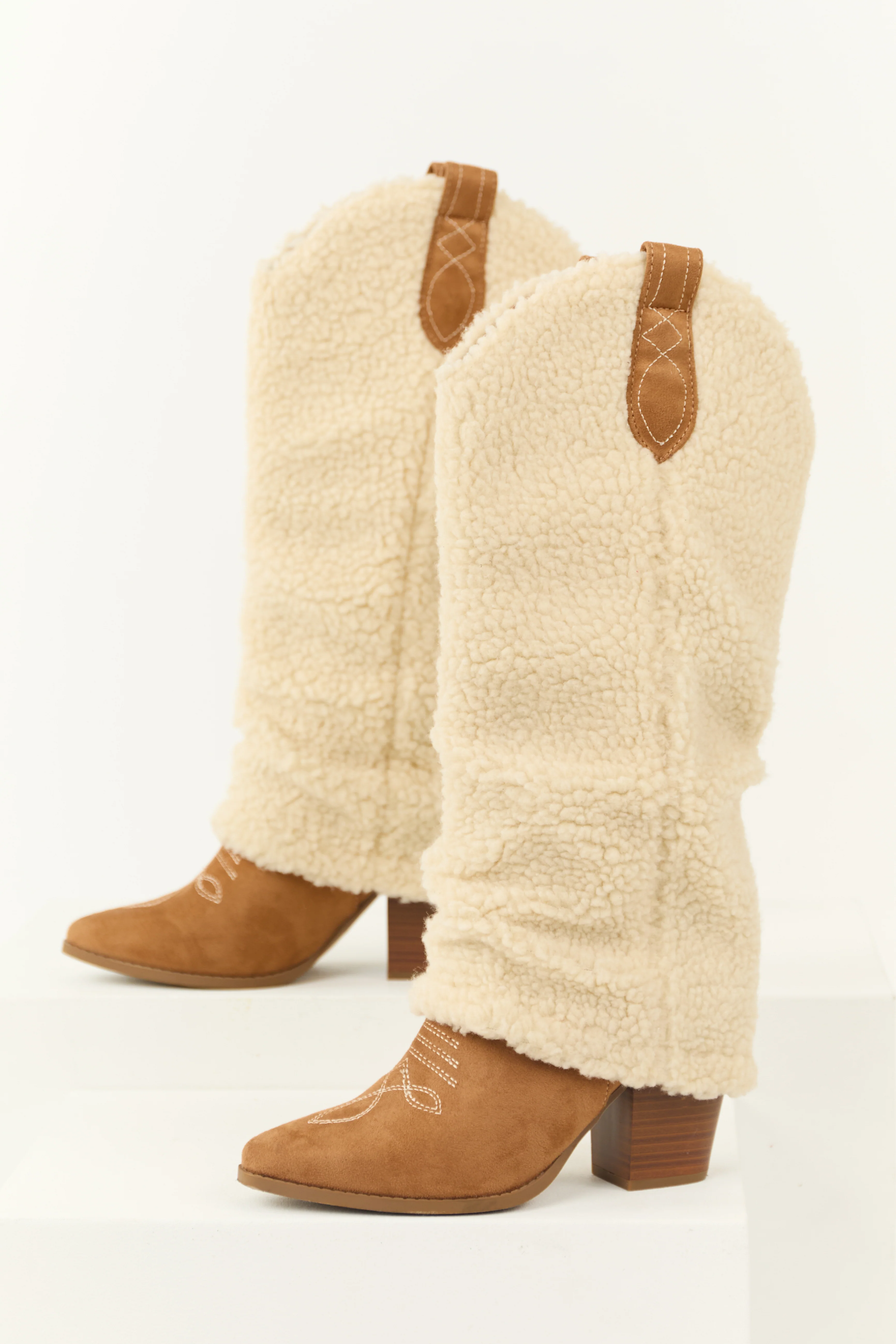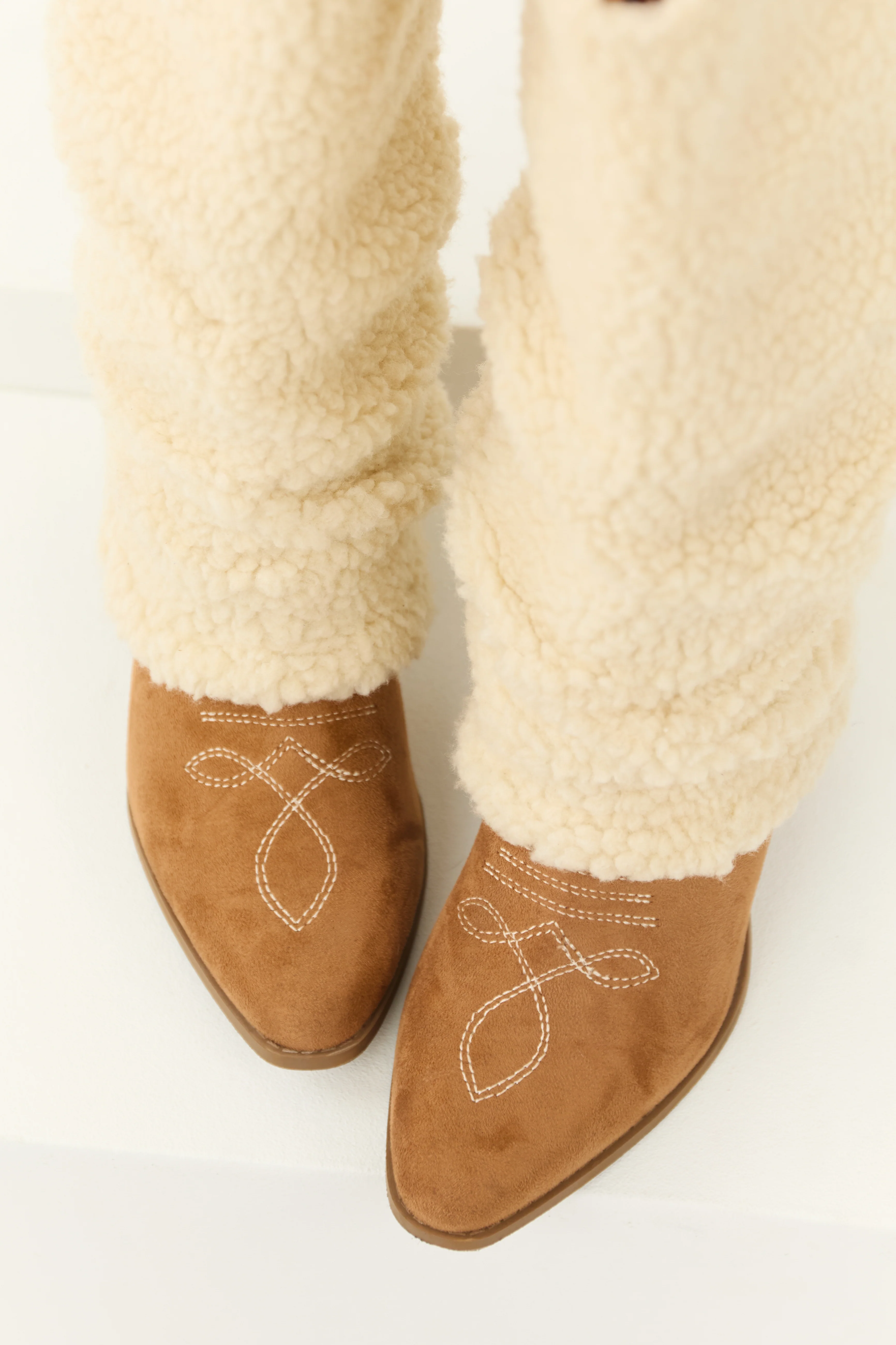 Copper Faux Suede Foldover Knee High Boots