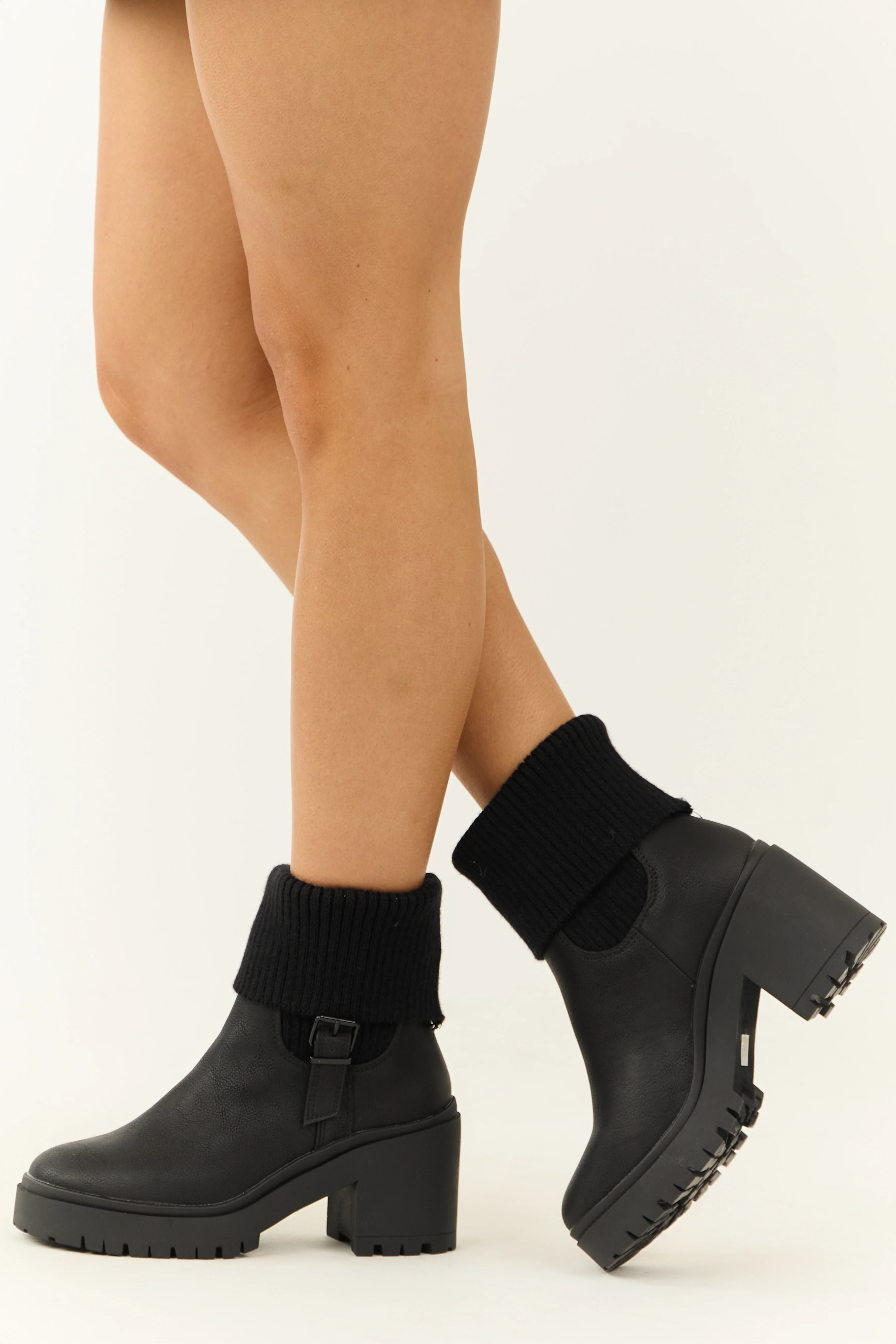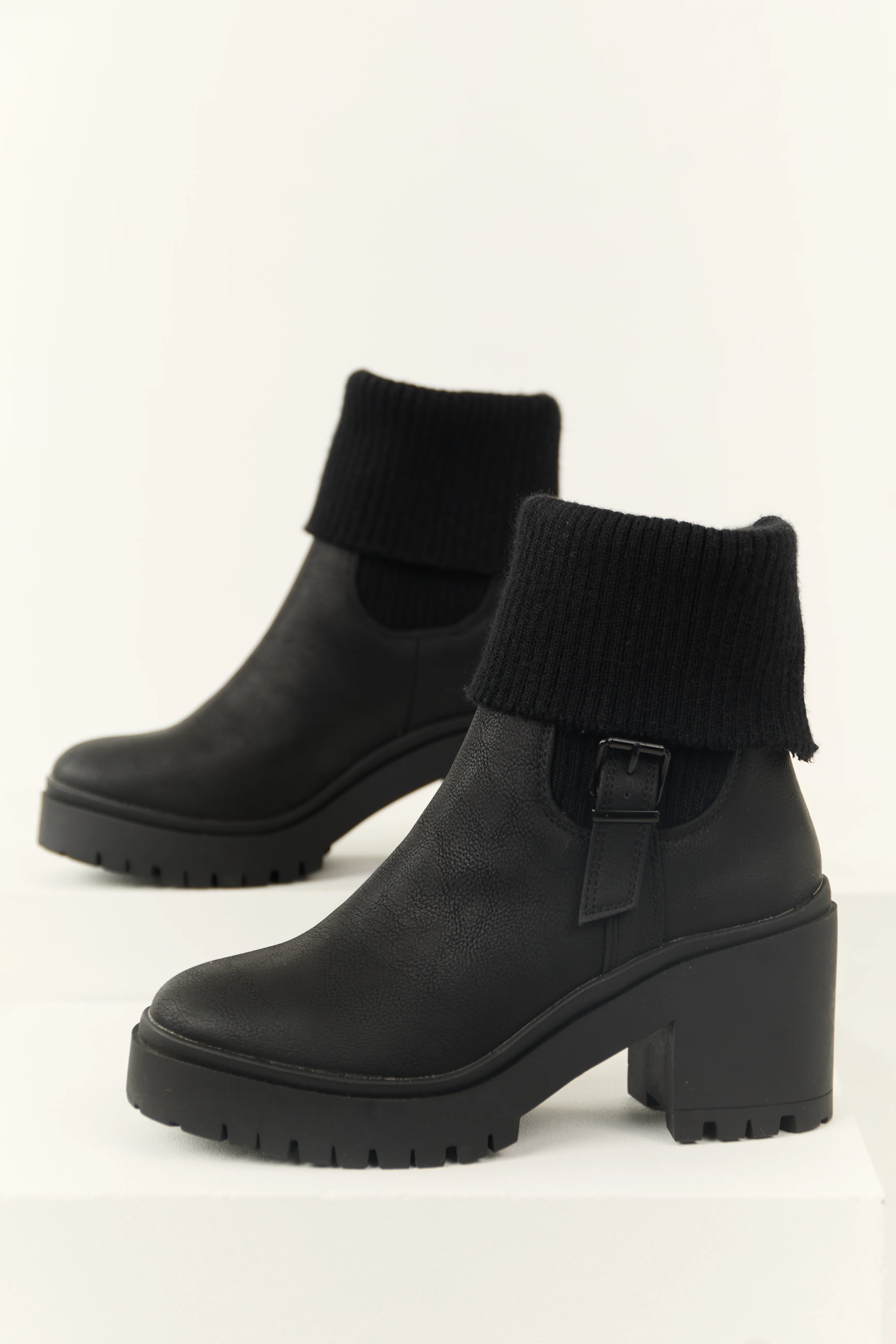 Black Chunky Heel Side Buckle Booties