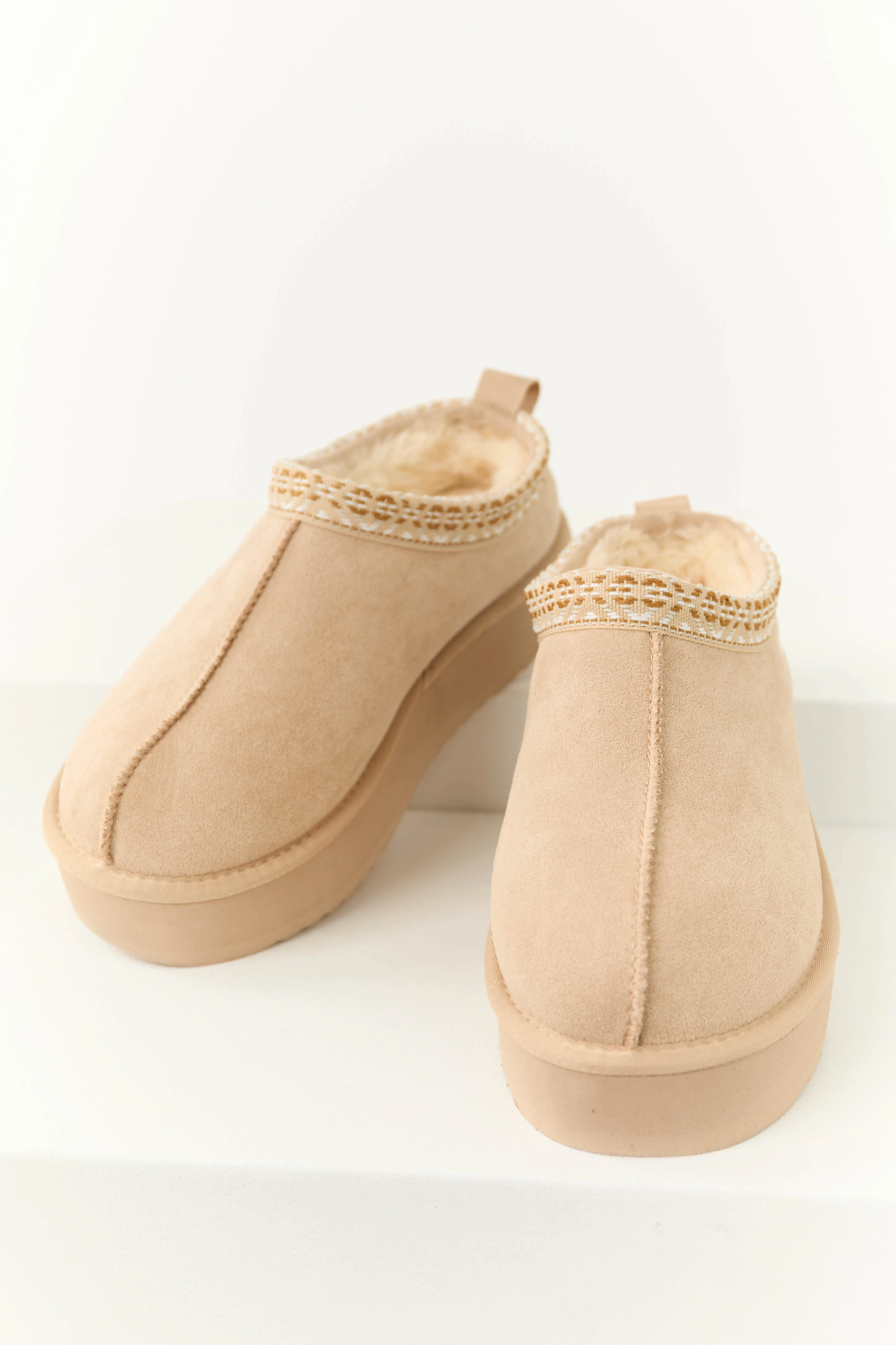 Almond Slip On Platform Fur Lined Booties