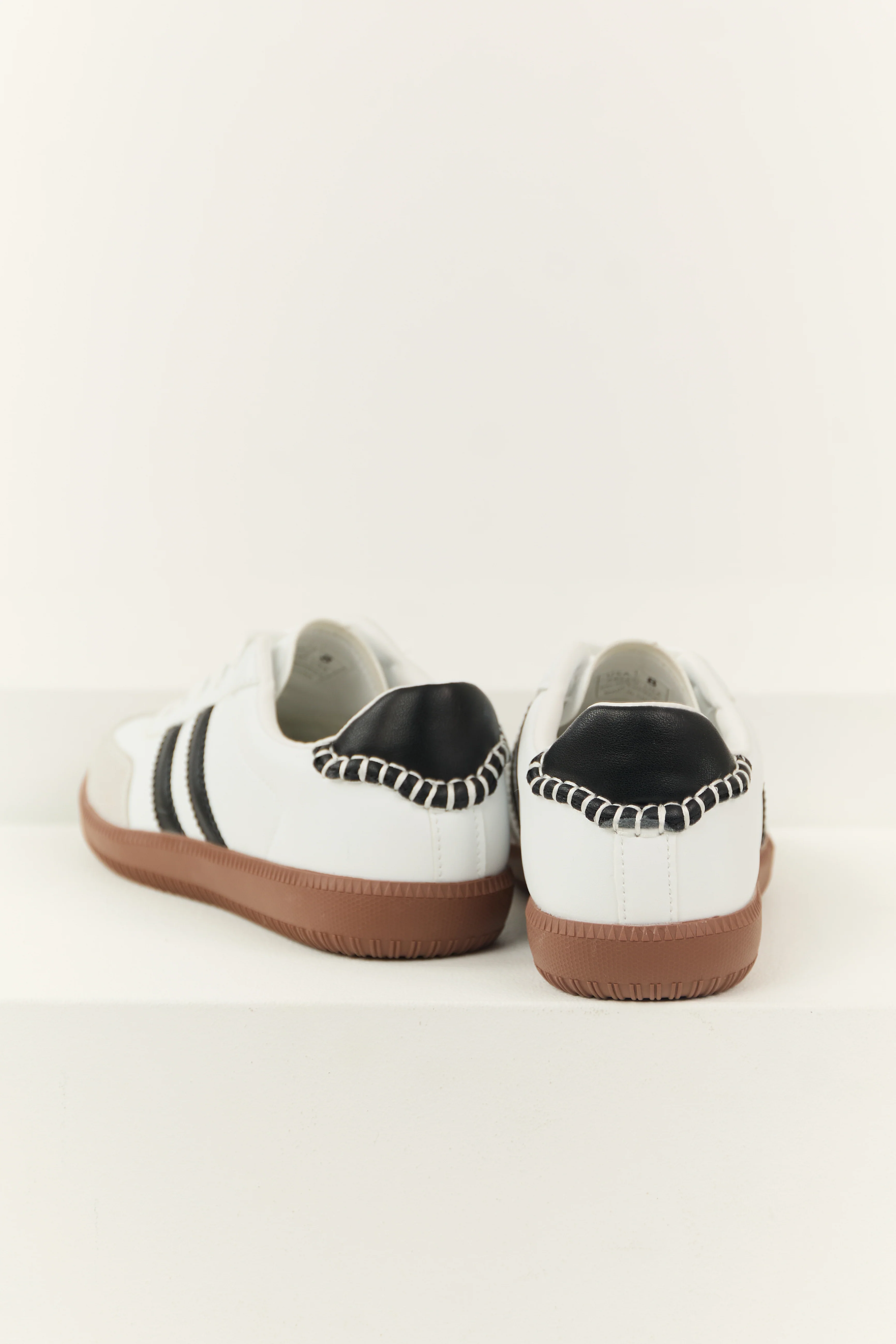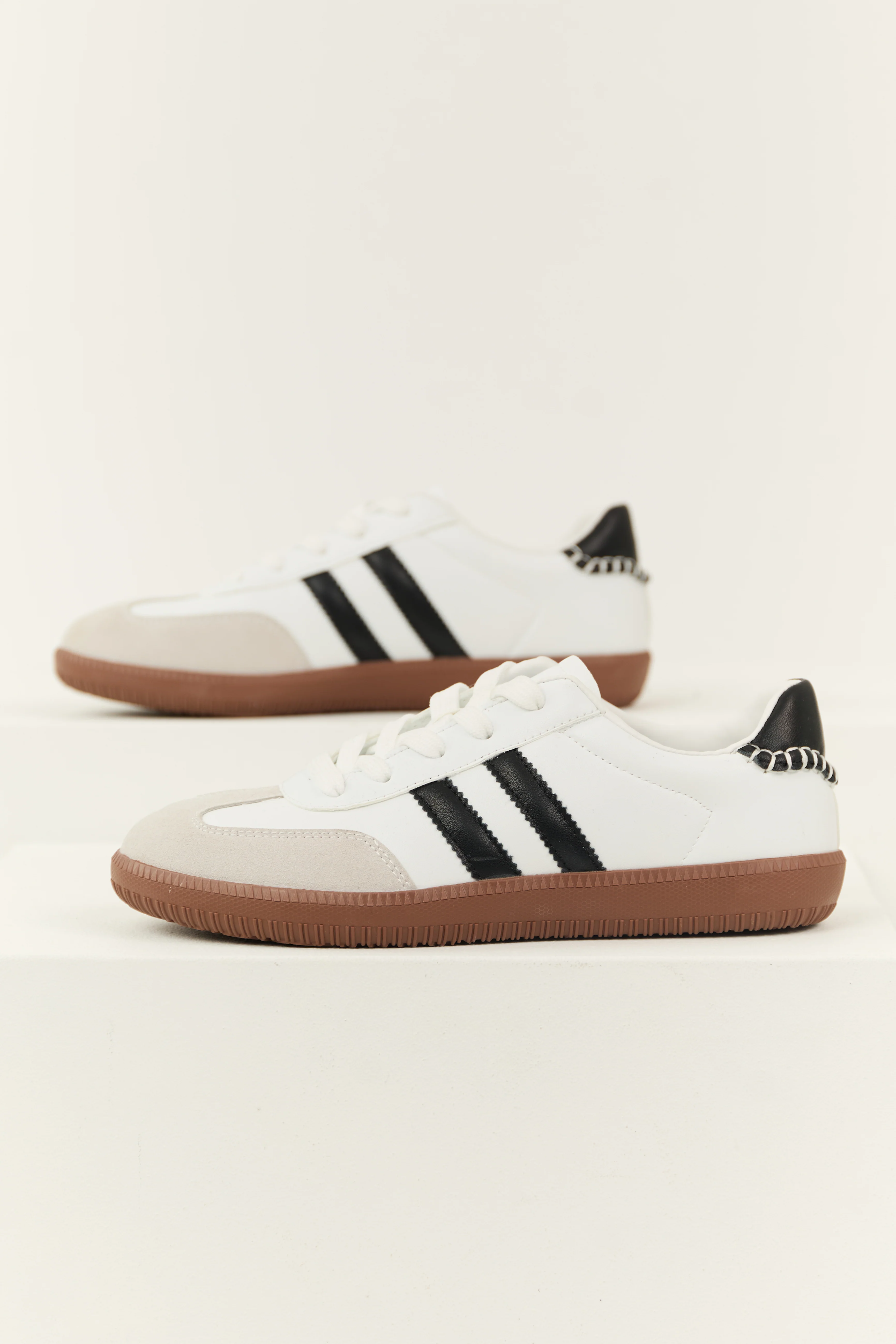 Off White Faux Leather Stripe Lace Up Sneakers
