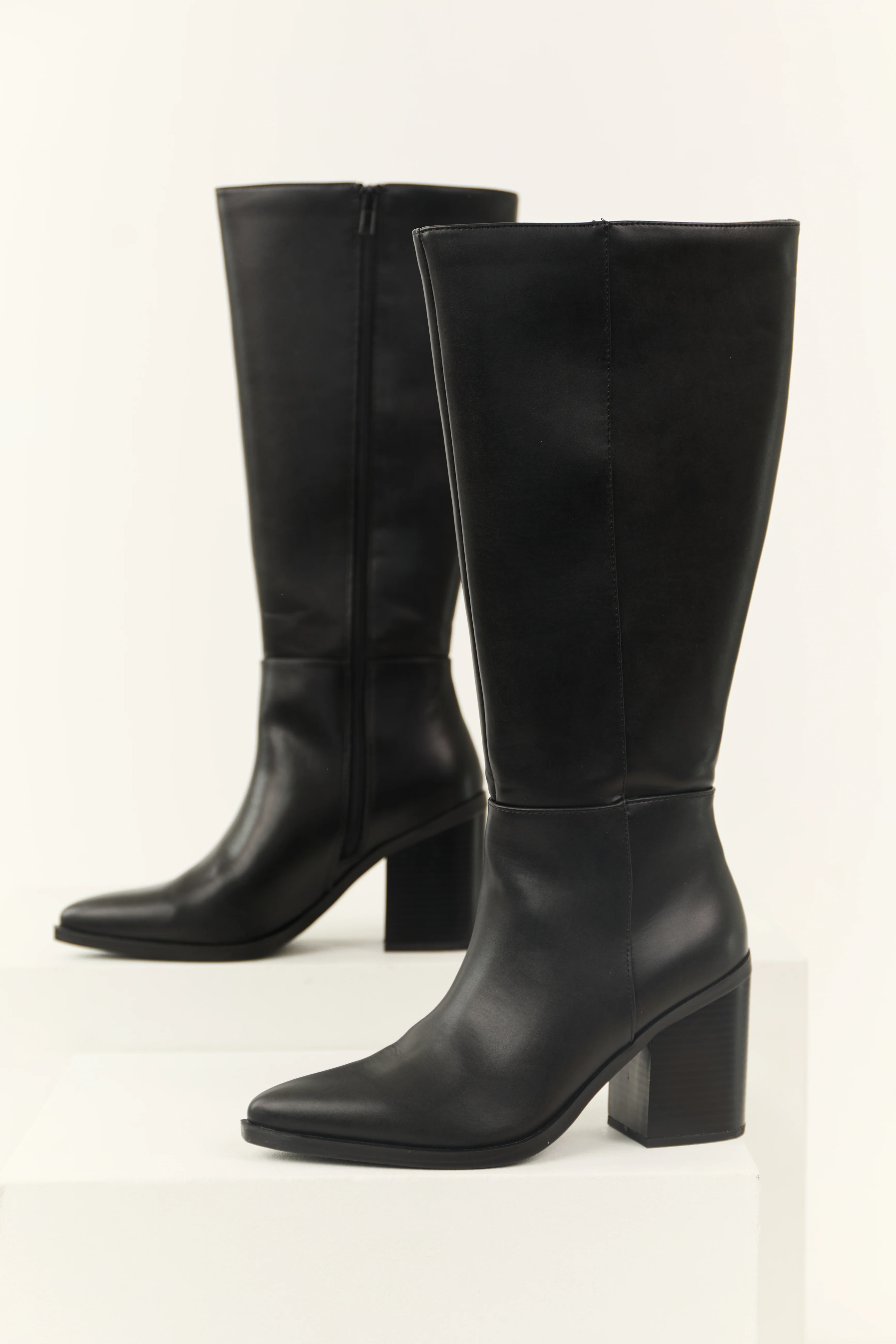 Black Faux Leather Pointed Toe Boots