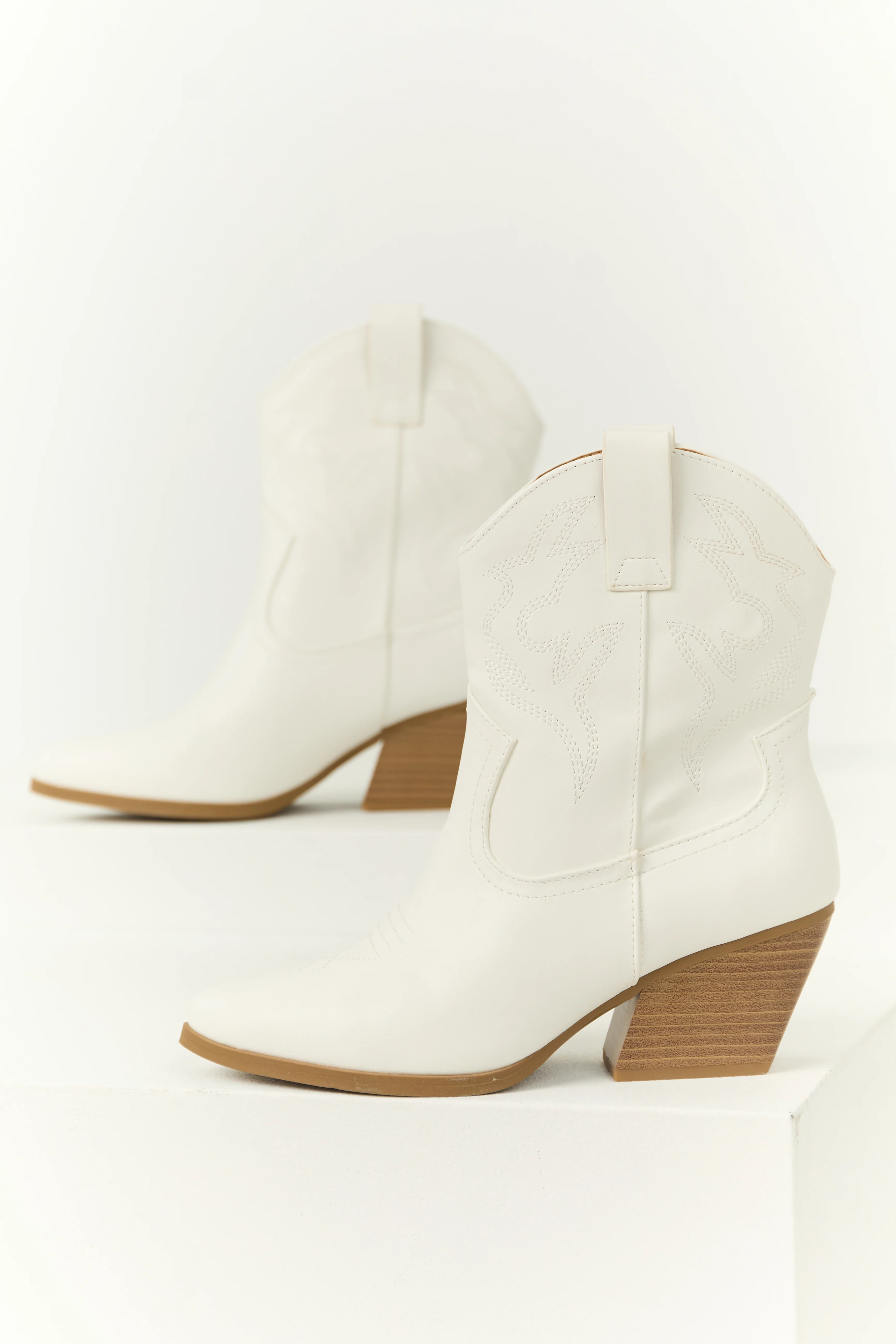 White Western Stitching Detail Ankle Booties